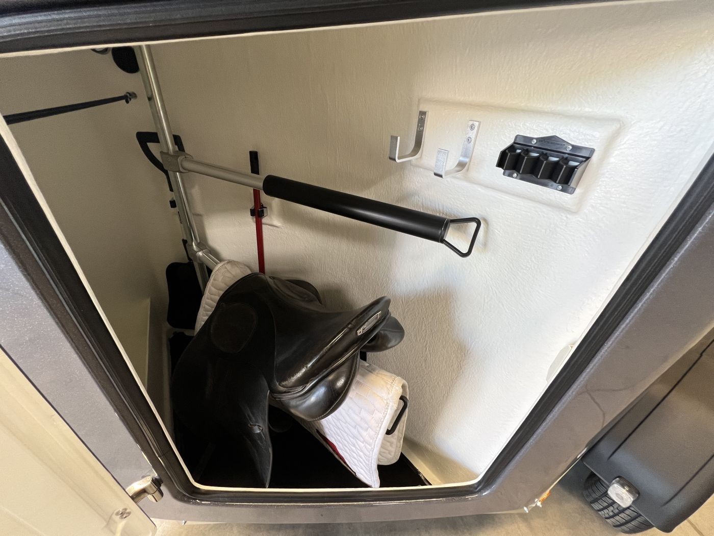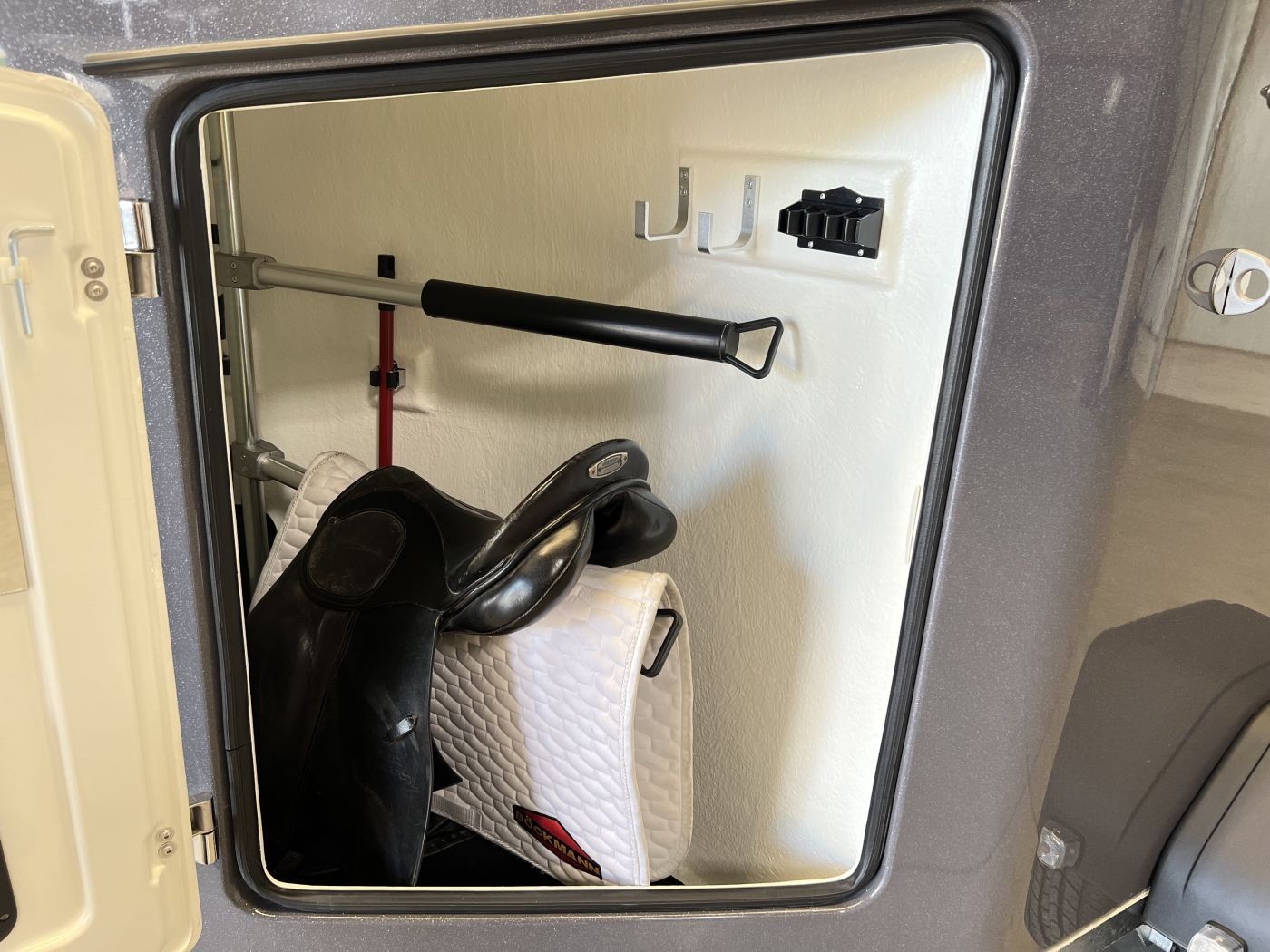 • Großzügige Sattelkammer mit zwei ausziehbaren Sattelhaltern