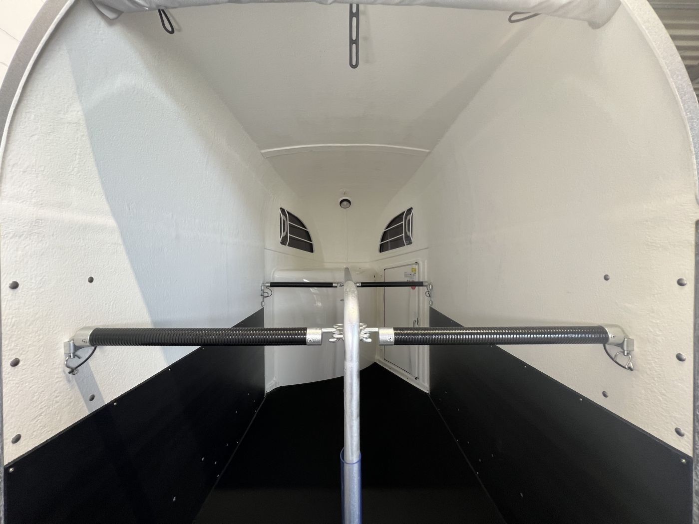 2 Pferdeanhänger mit Aluboden, Radstoßdämpfer, Trittschutz, Gummi auf Beladeklappe und Dachlüfter (Dachlüfter auf dem Foto nicht sichtbar!)