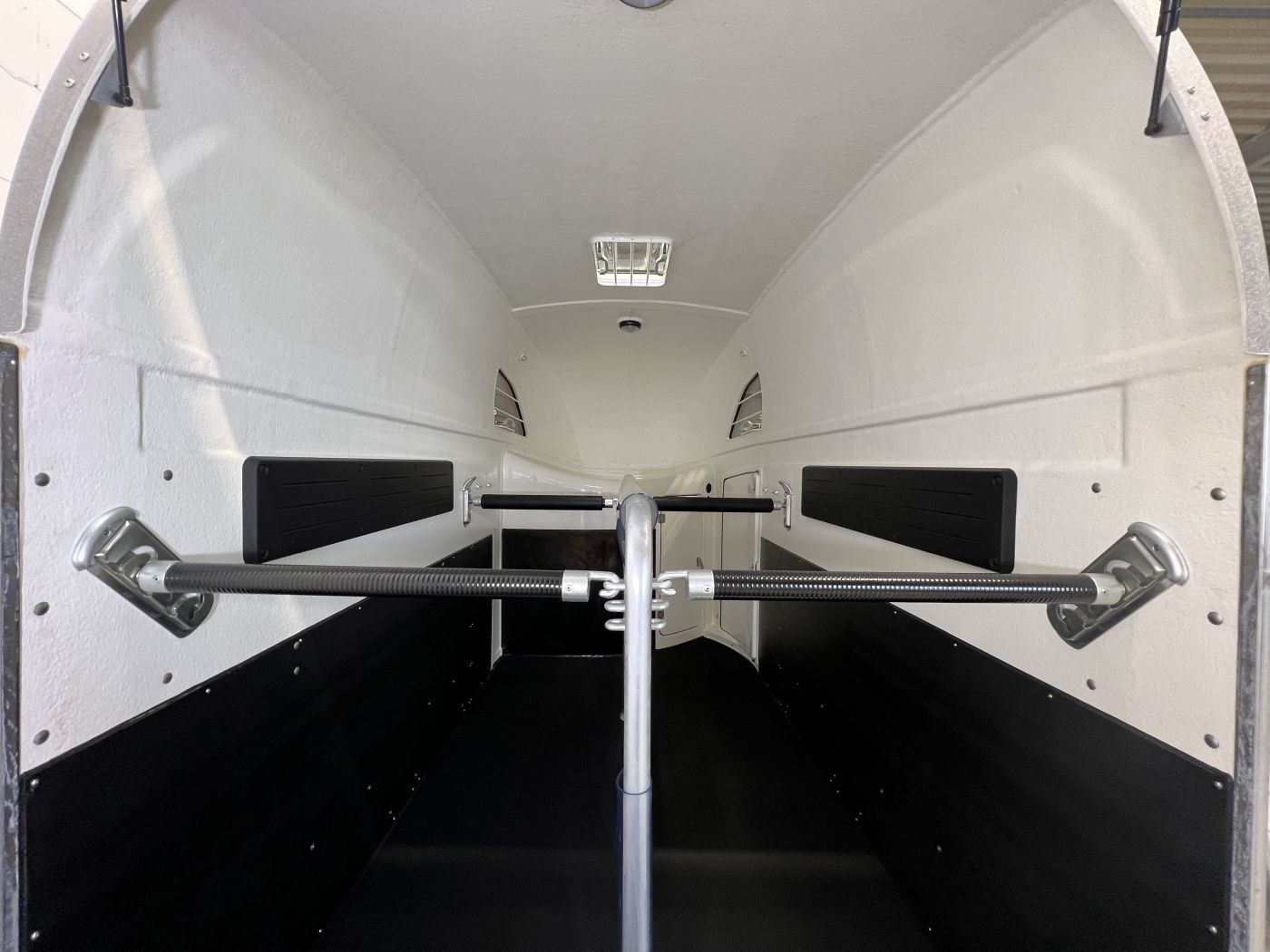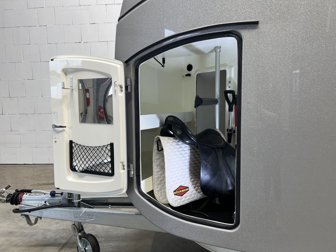 • Großzügige Sattelkammer mit zwei ausziehbaren Sattelhaltern (vertikal und horizontal verstellbar)