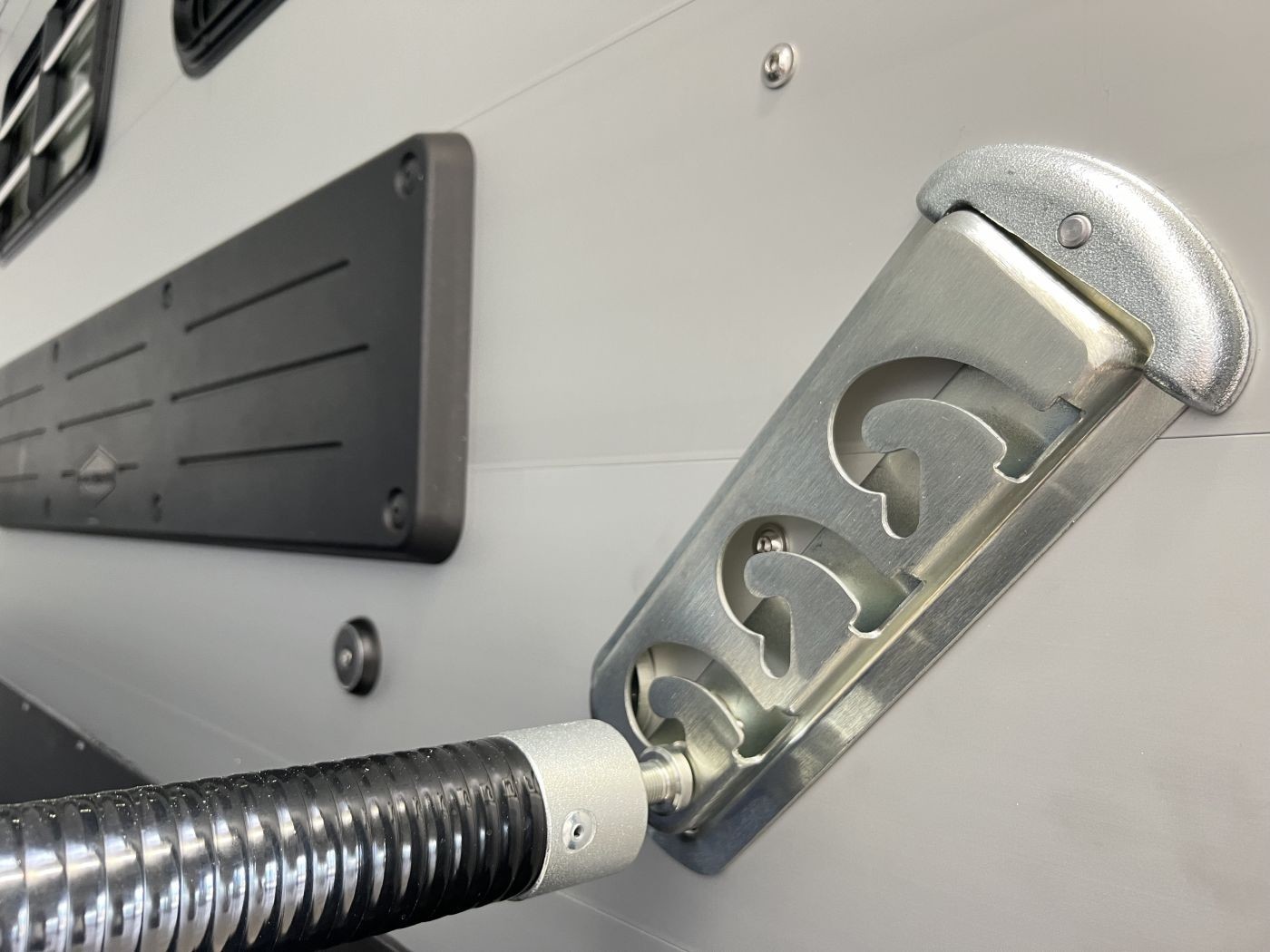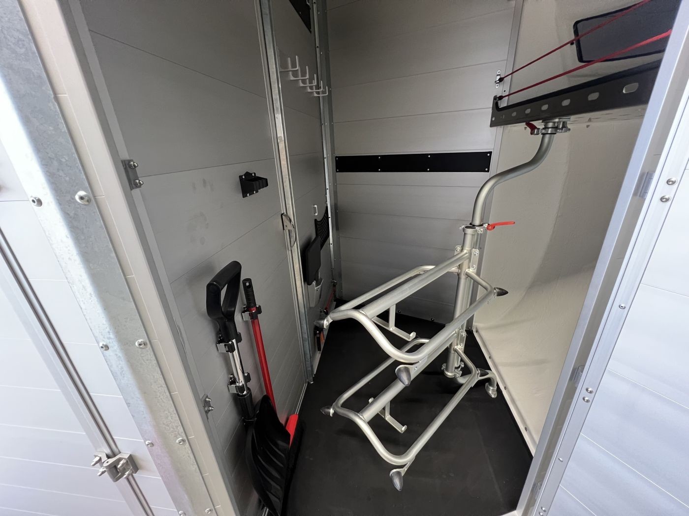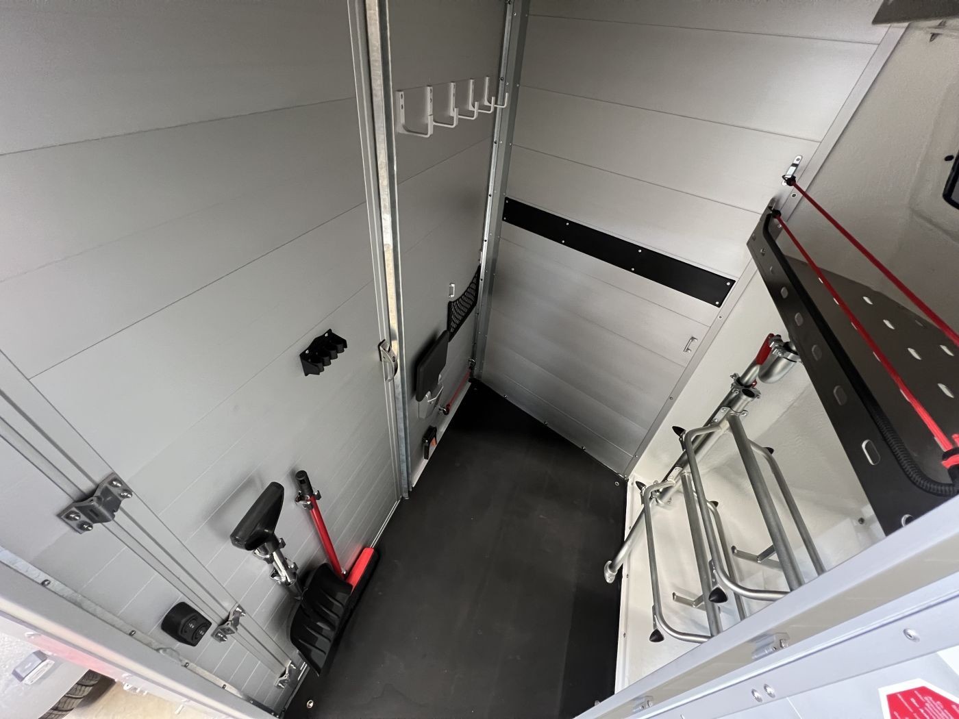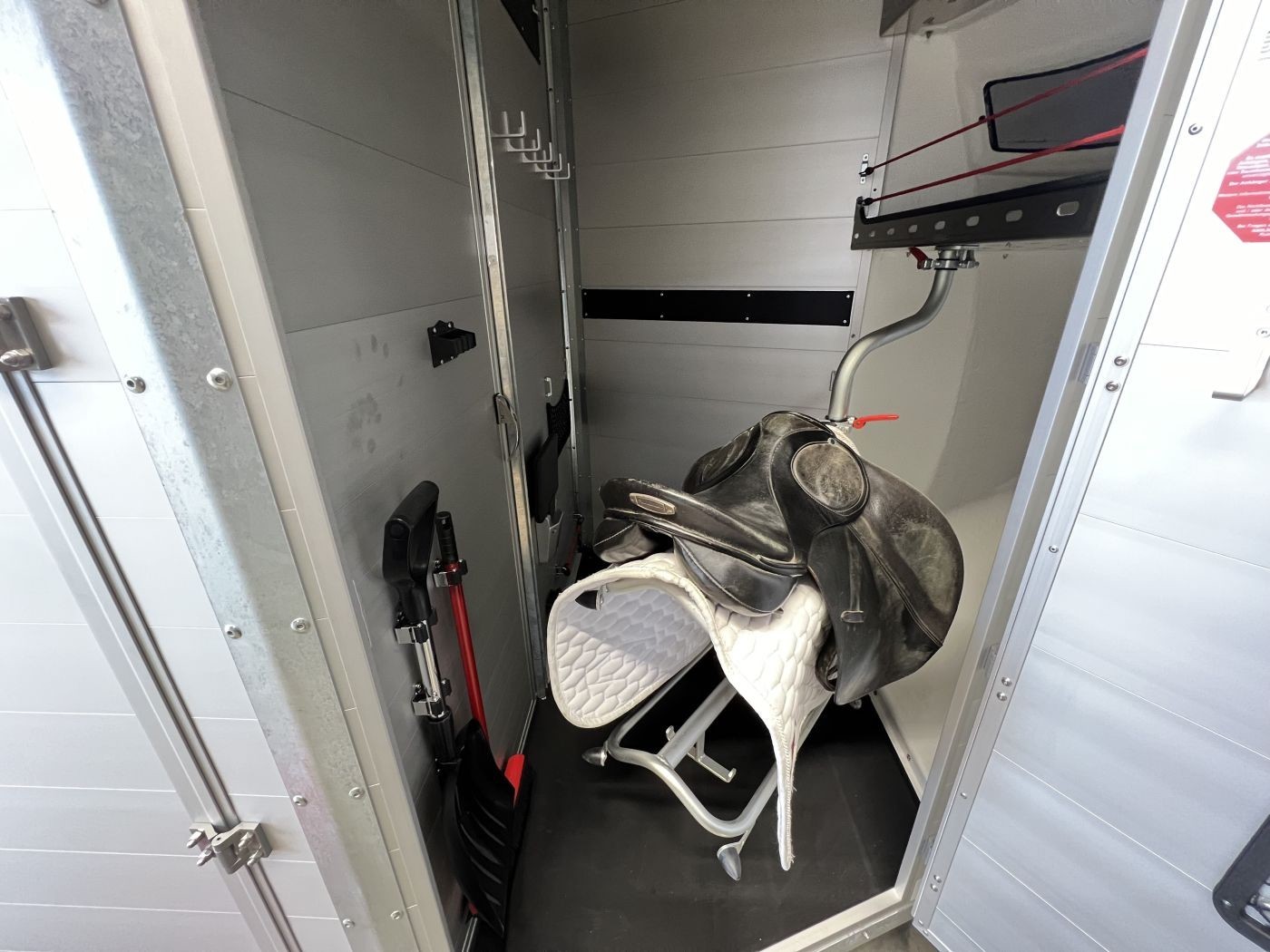 Ein besonderes Highlight der Modelle ist der neue Portax Lichtbogen, der das direkte Blendlicht auf ein Minimum reduziert. Dadurch werden Störfaktoren für Ihre Pferde deutlich verringert und alle Beteiligten gelangen entspannt ans Ziel. Doch auch im Innenraum hat sich einiges im Vergleich zum Vorgängermodell getan. Ein Exzenterspanner und ein Magnetfeststeller sind absolute Neuheiten, die im Pferderaum das Handling vereinfachen. So ermöglicht der Exzenterspanner den einfachen Ausbau der Mittelpfosten-Trennwand und ermöglicht so den komfortablen Transport von Stute mit Fohlen. Ein Magnetfeststeller ermöglicht das Feststellen der Trennwand-Flügel auf beiden Seiten und gewährleistet so viel Platz und Sicherheit beim Verladen.