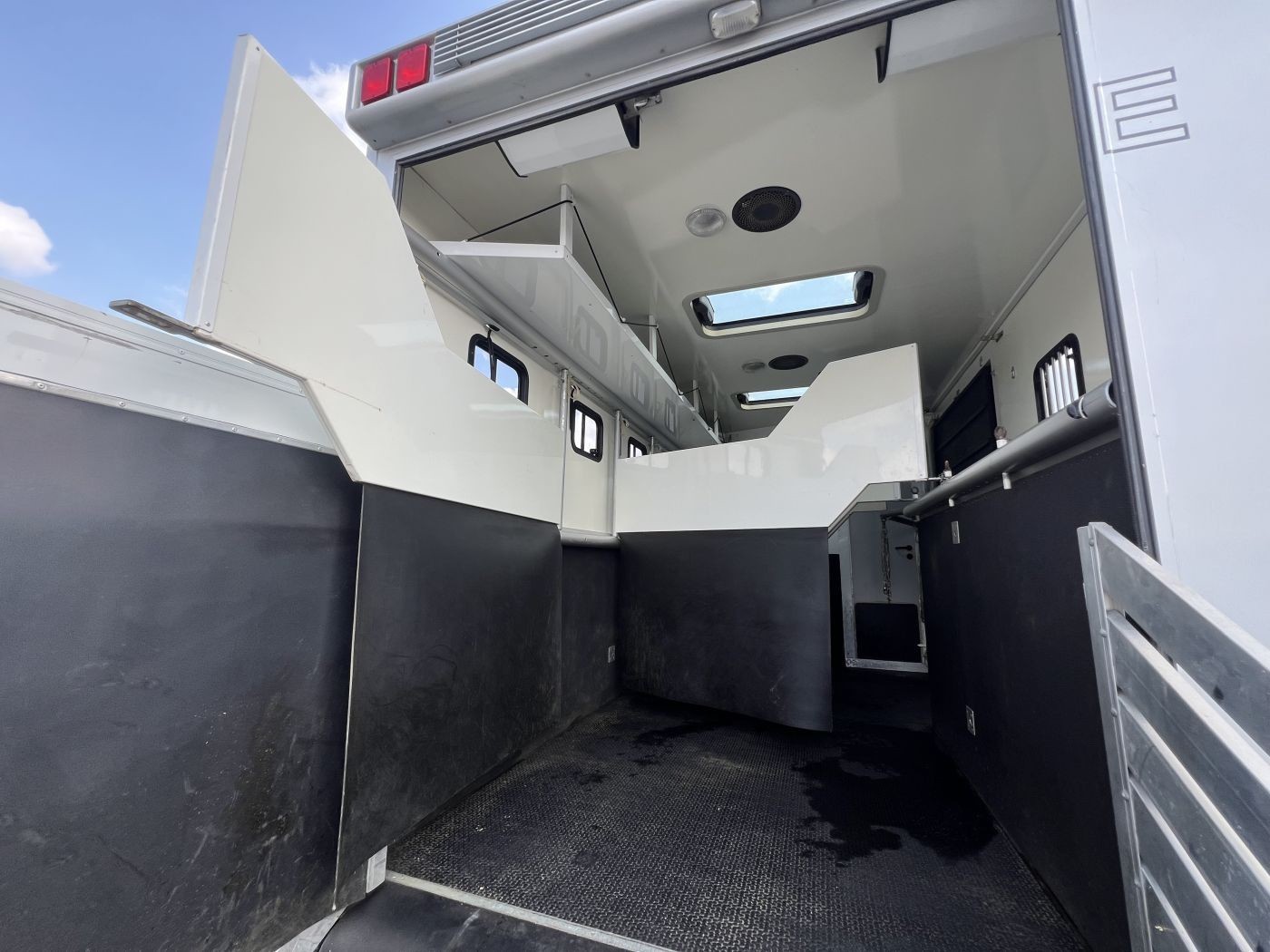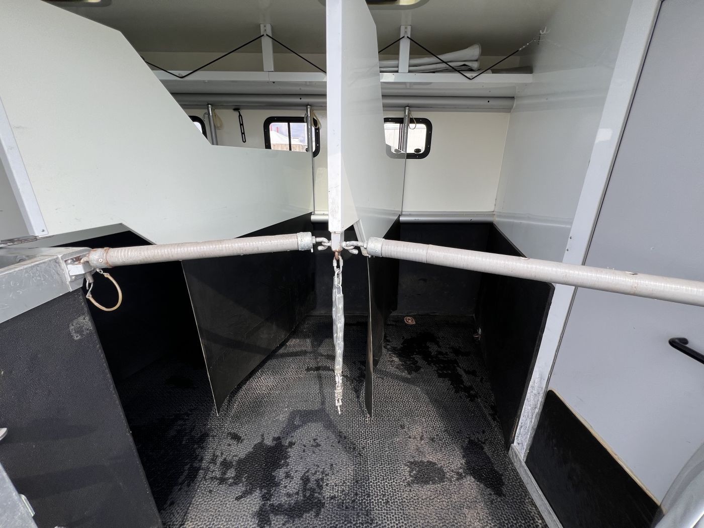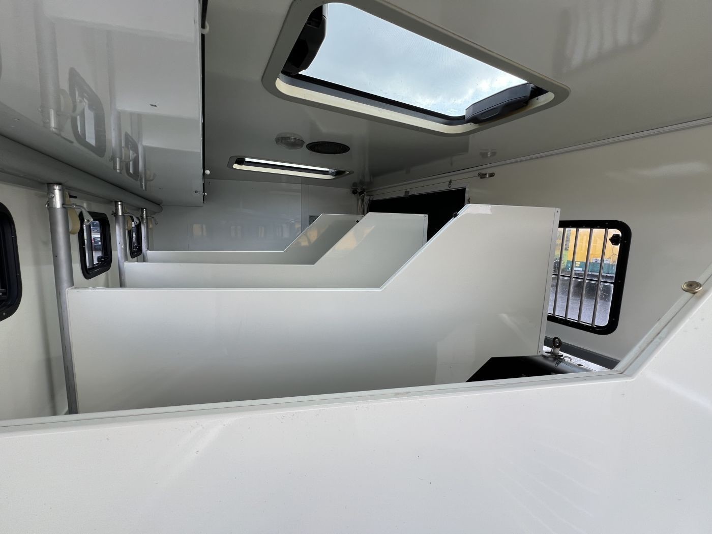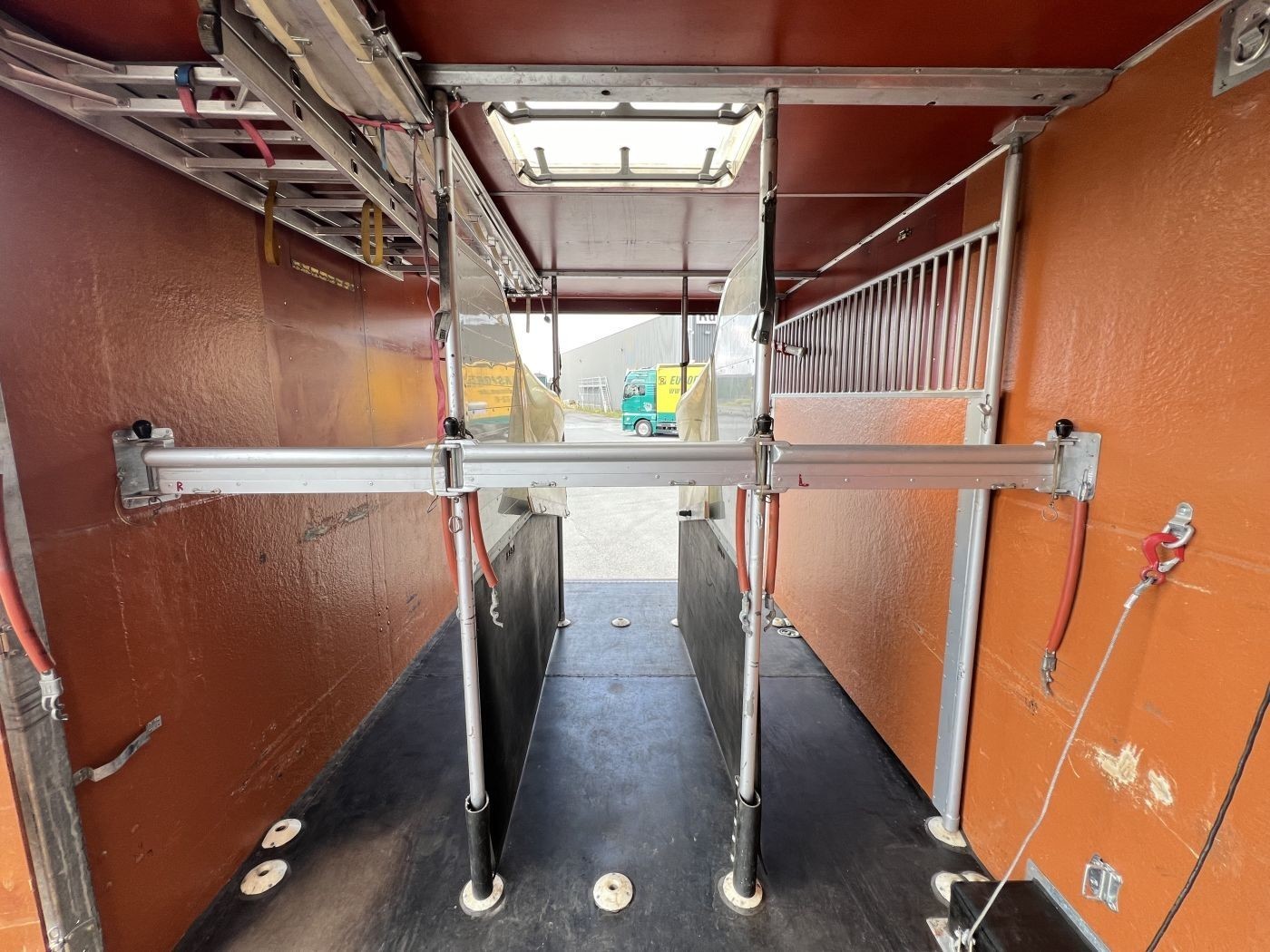 Der Pferderaum des Atego ist mit verschiebbaren Trennwänden ausgestattet, so dass 4 oder 5 Pferde Platz haben. Ein Durchgang zum