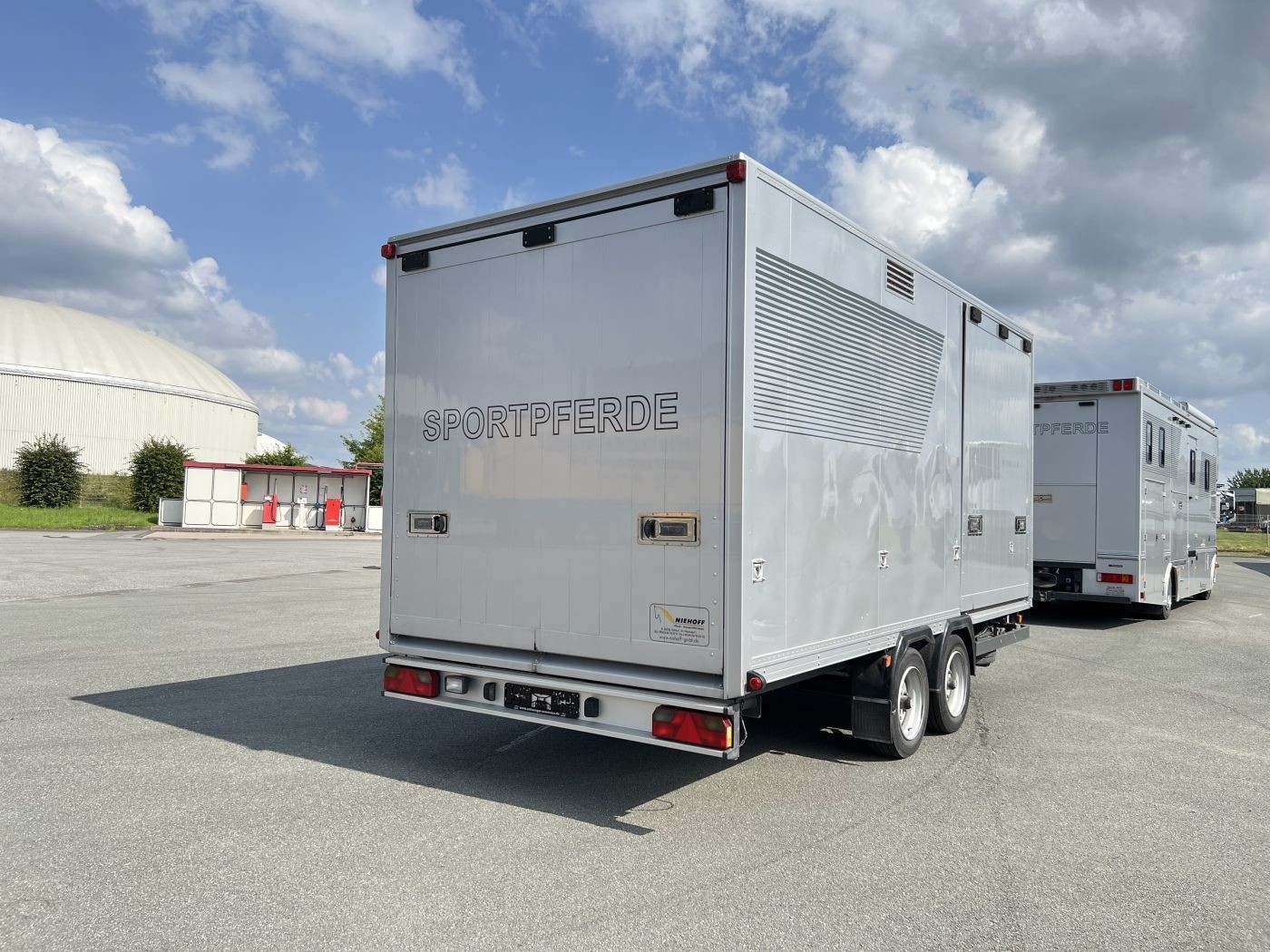 LKW-Anhänger für 3 Pferde und Kutsche – Niehoff Aufbau ( nicht im Preis enthalten kann aber dazu gekauft werden )