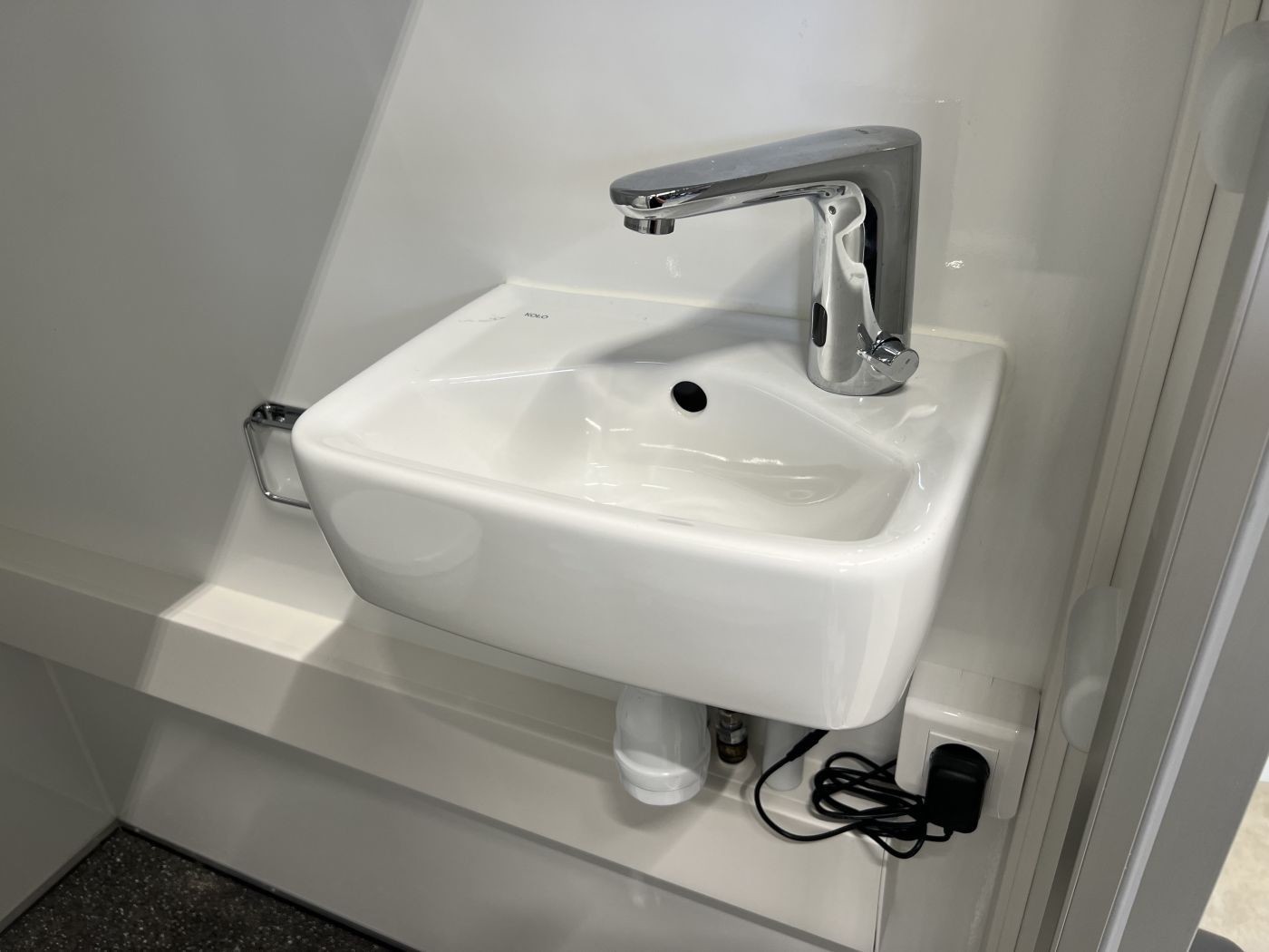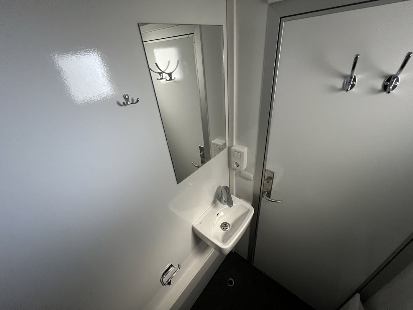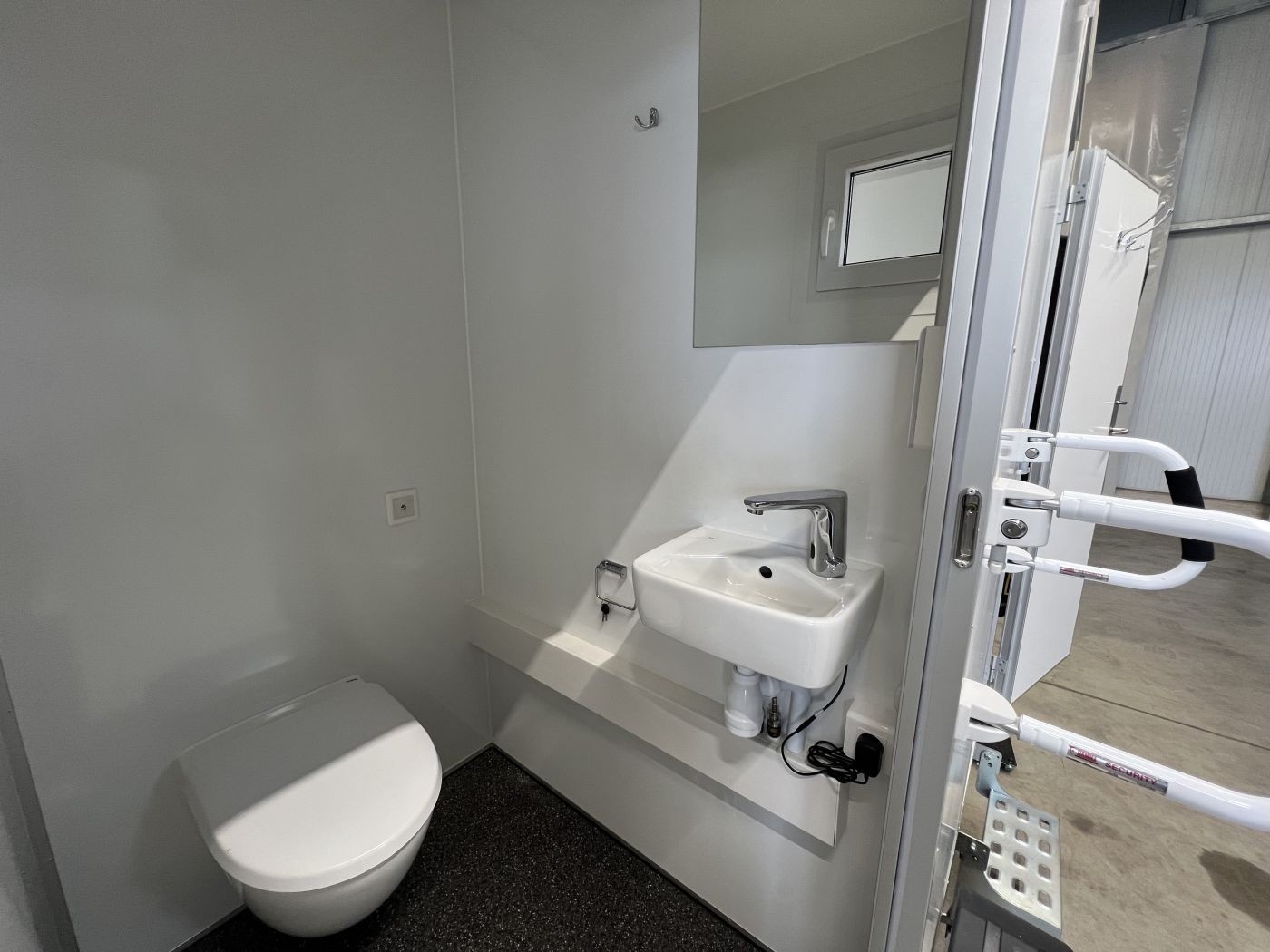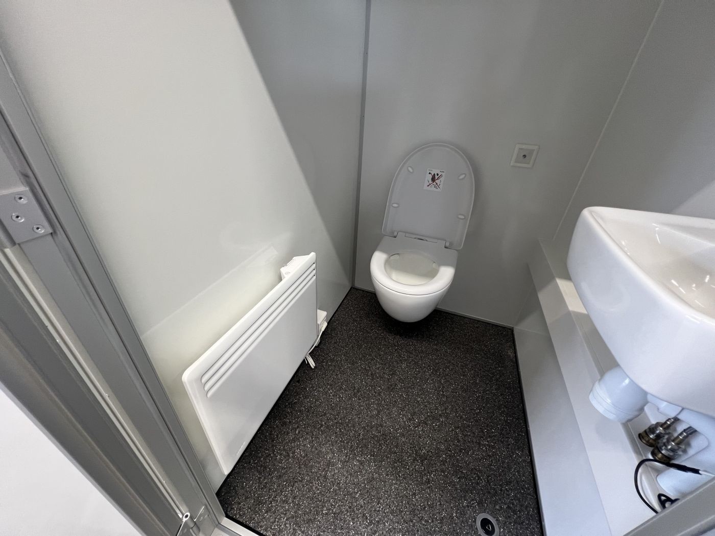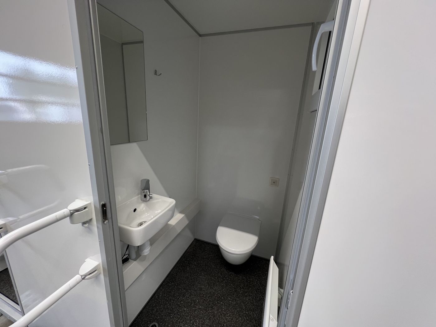 1 WC mit wasserspülender, wandaufgehängter Toilette