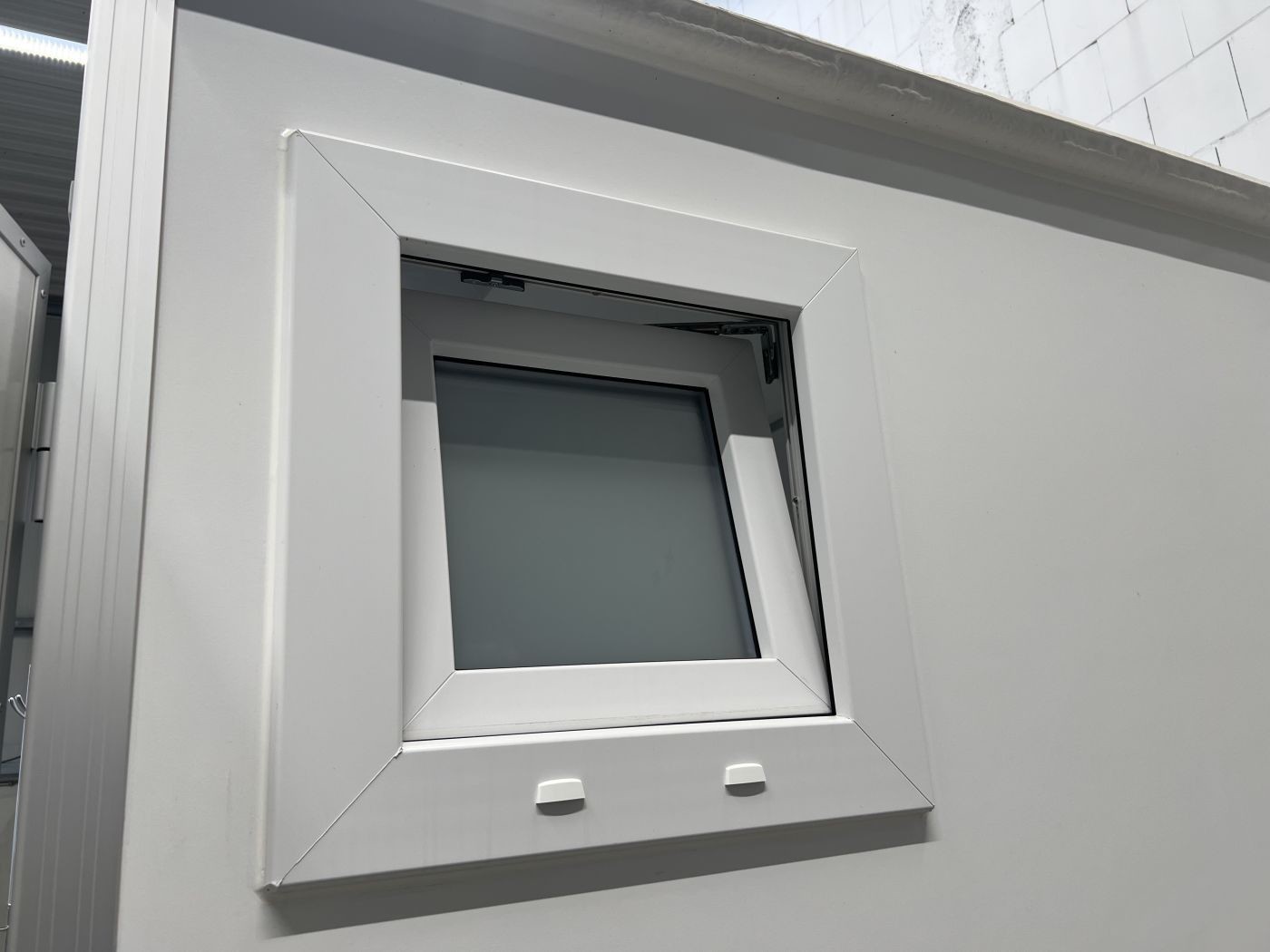 Aufklappbares Fenster mit mattiertem Glas