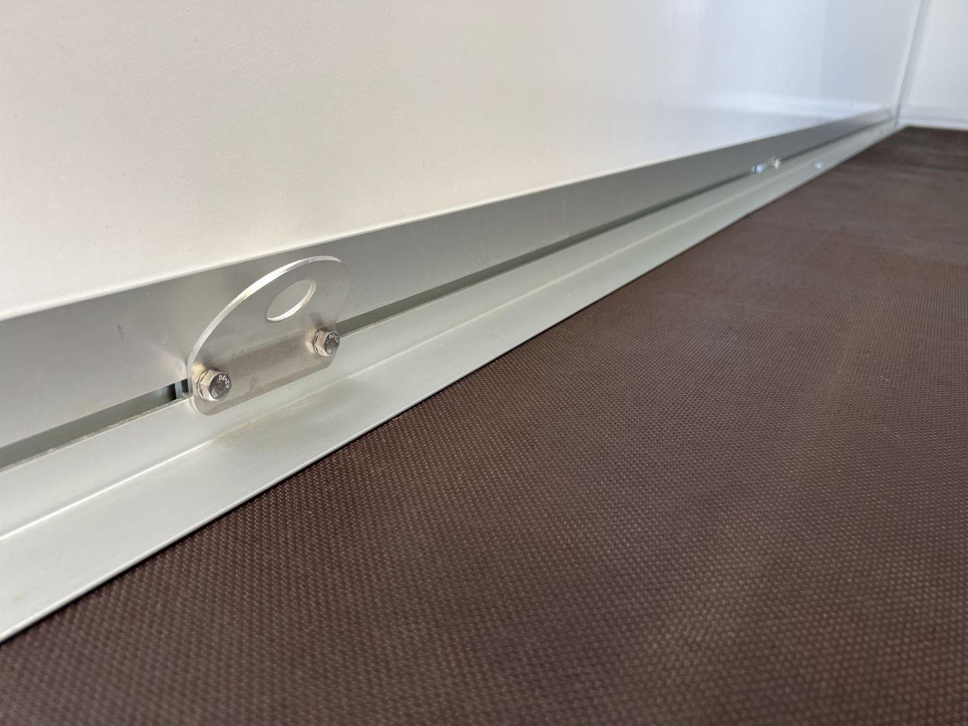 • 6 verschiebbare V2A-Befestigungspunkte im Boden-Wand-Profil rechts/links je 3 Stück