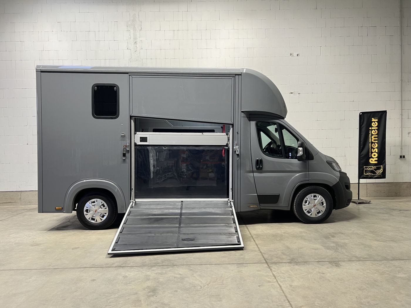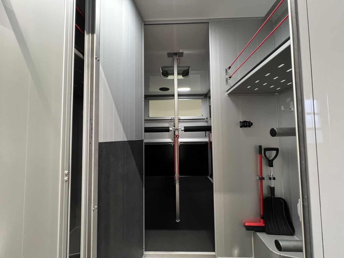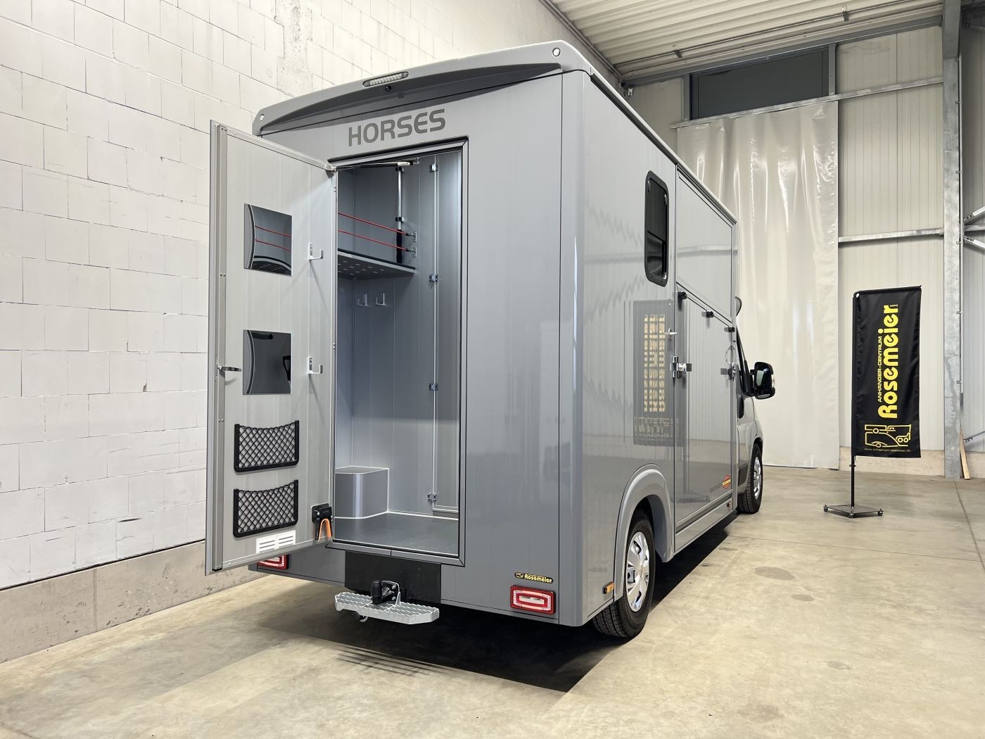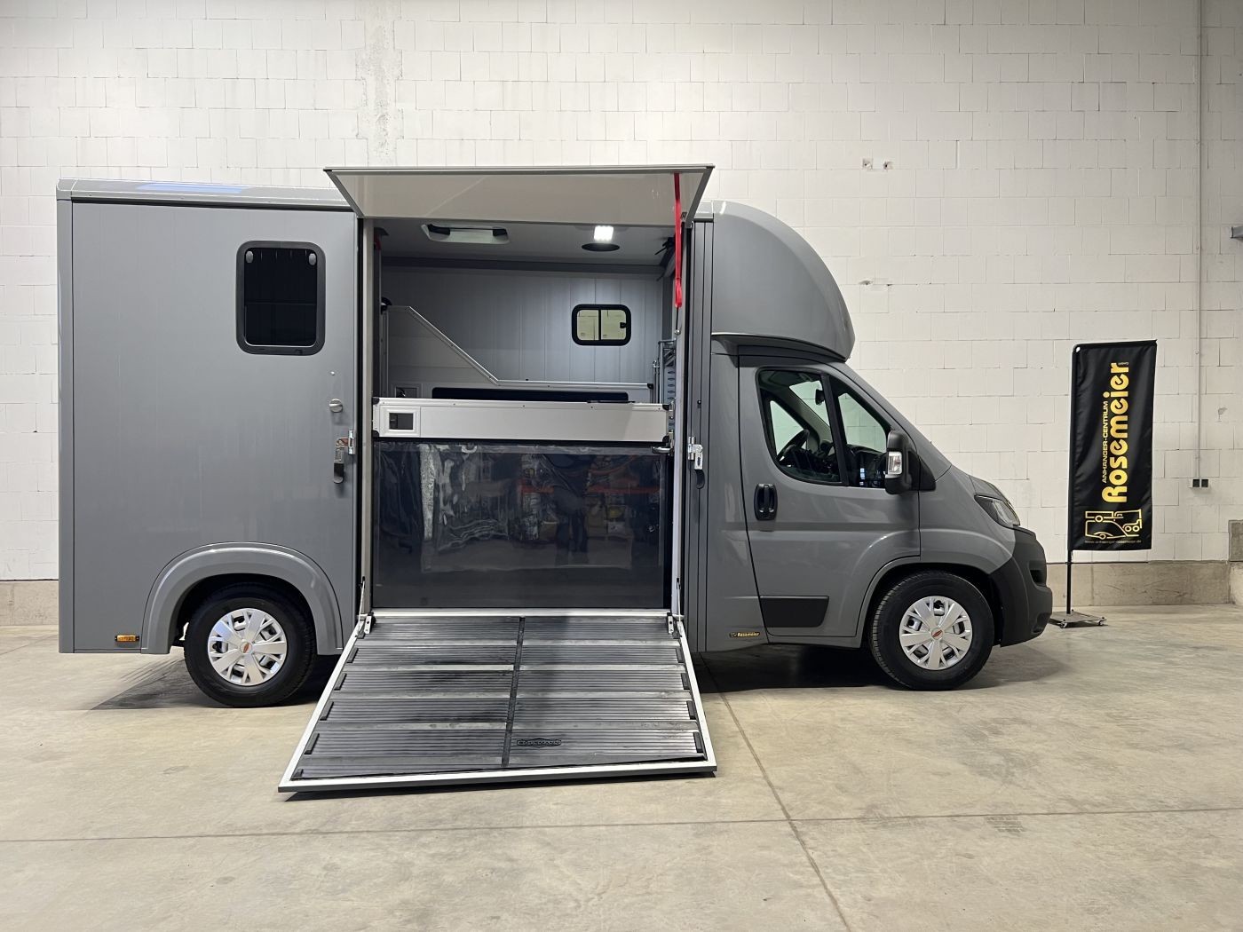 Sattelraum ausgestattet. Die Verladung des Pferdes gestaltet sich dank einer schwenk und optional verschiebbaren Trennwand einfach.