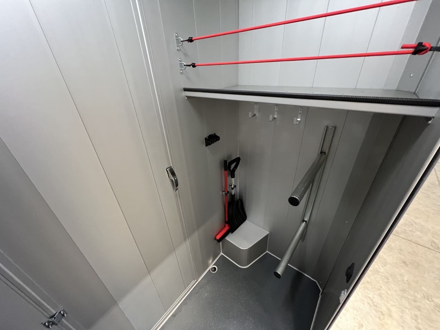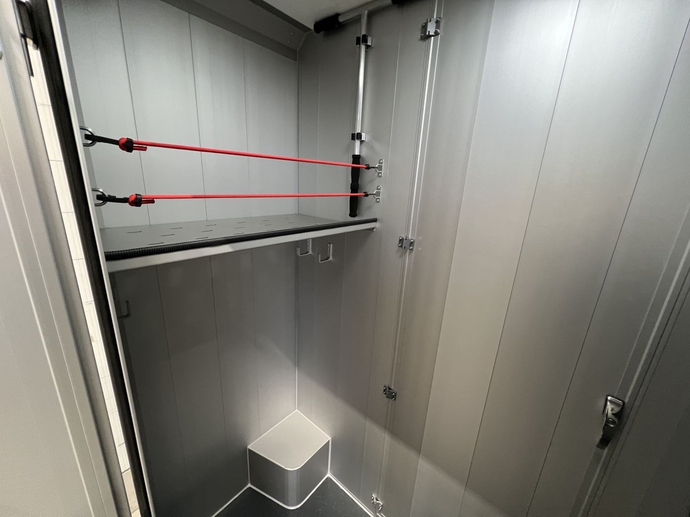 Der Durchgang vom Sattelraum zum Pferderaum kann mit einer optional verschließbaren Tür verschlossen werden.