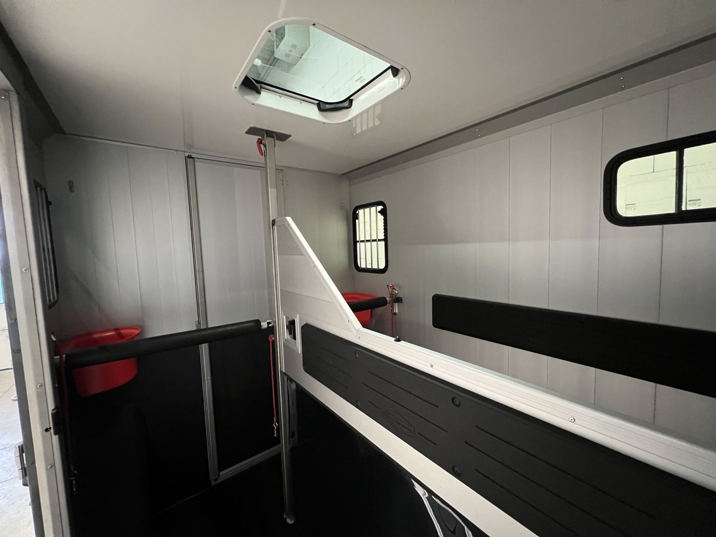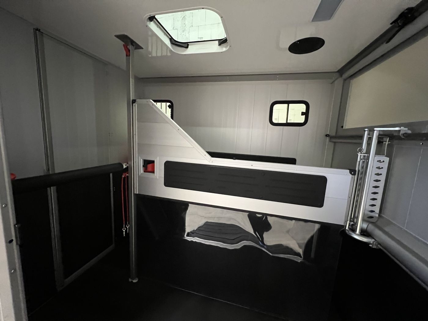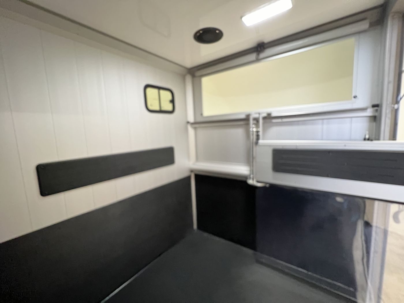 Der Pferderaum des Compact Basic ist mit einer festen Trennwand und einem Durchgang zum