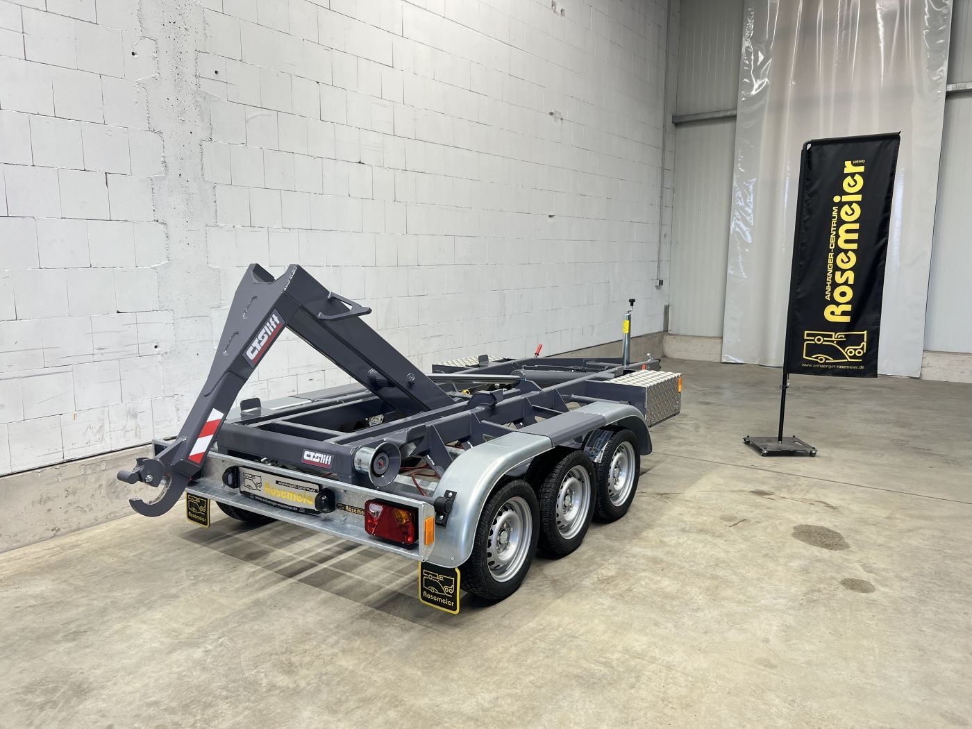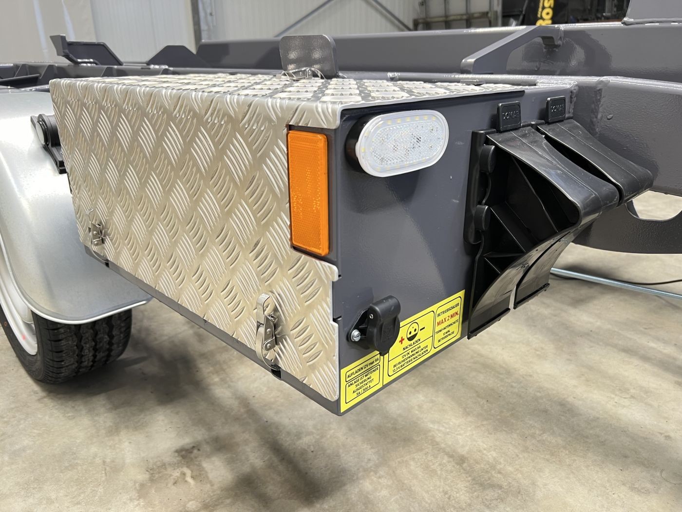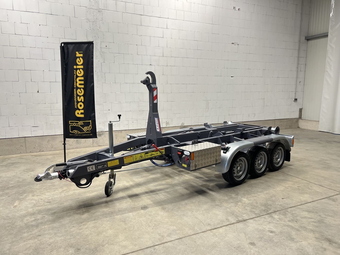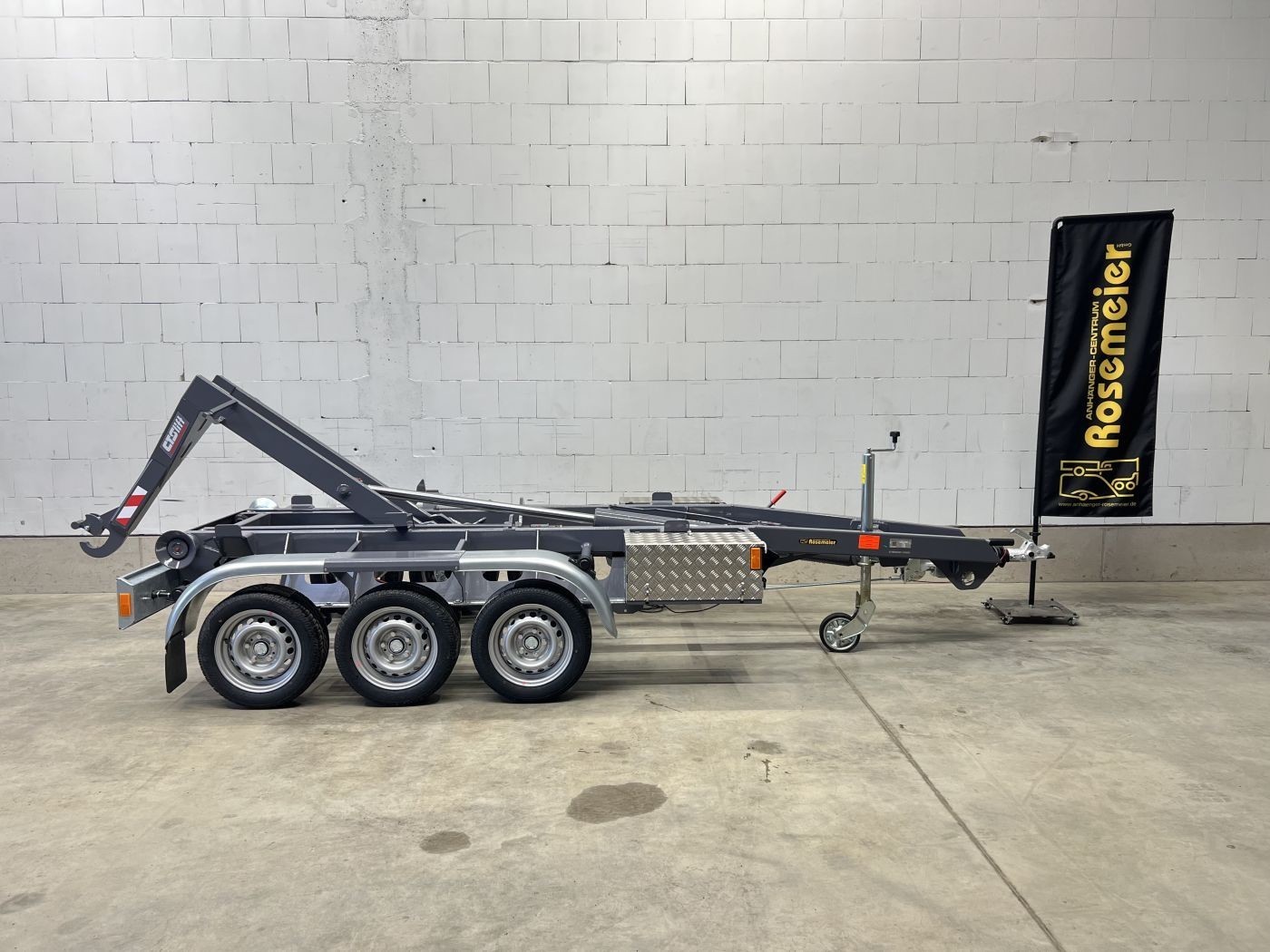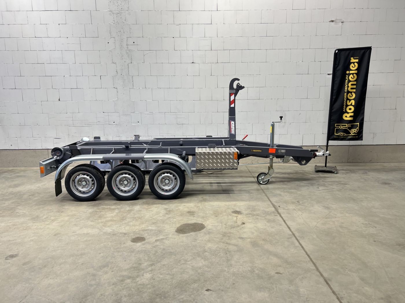 während Sie mit dem eigentlichen Anhänger/Hakengerät eine andere Mulde transportieren können.
