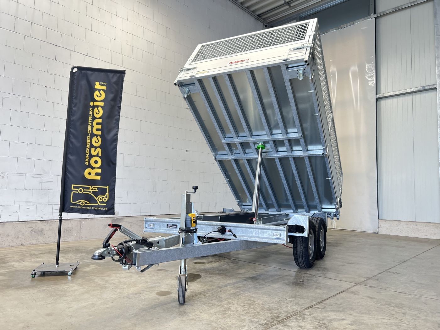 Dreiseitenkipper mit robustem Stahlboden, E-Pumpe inkl. eigener leistungsstarker Batterie und dazugehörigem Ladegerät