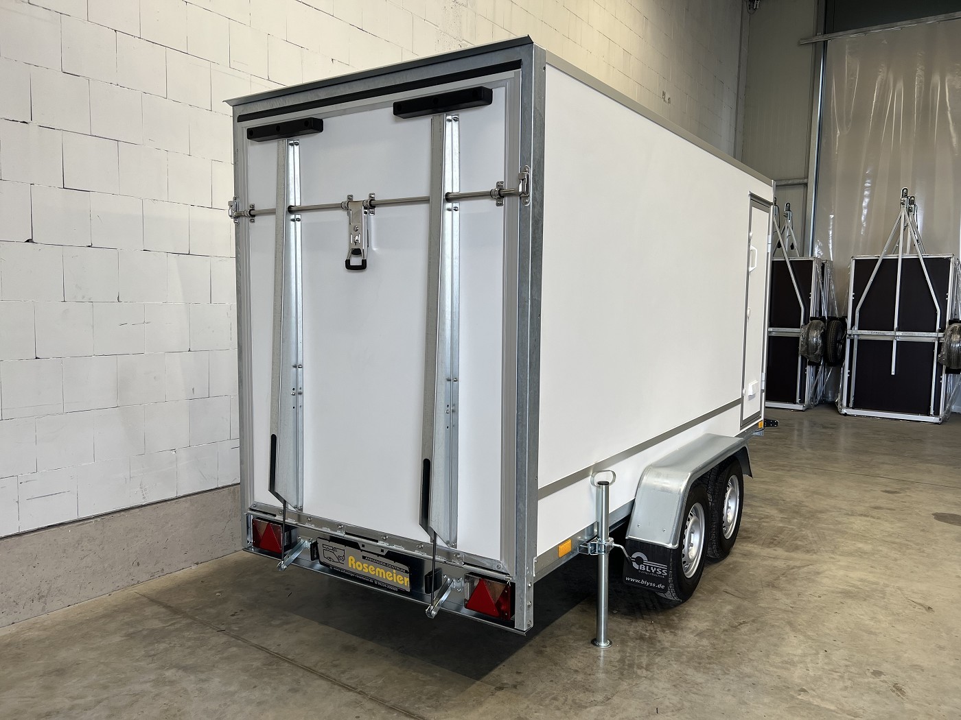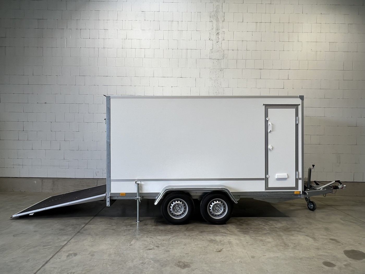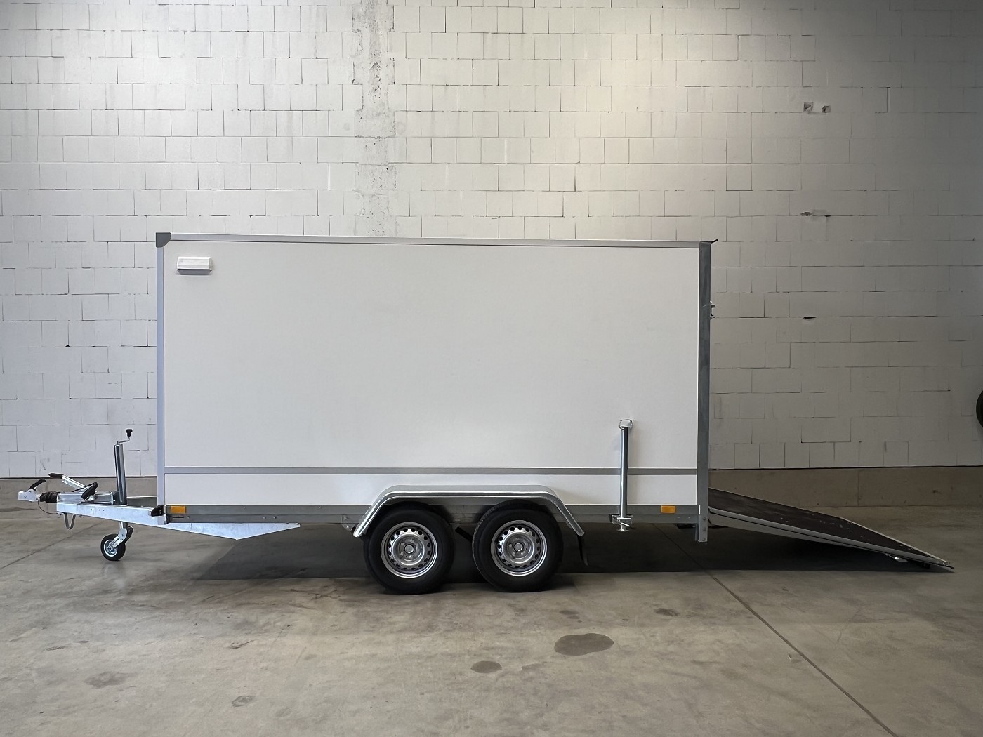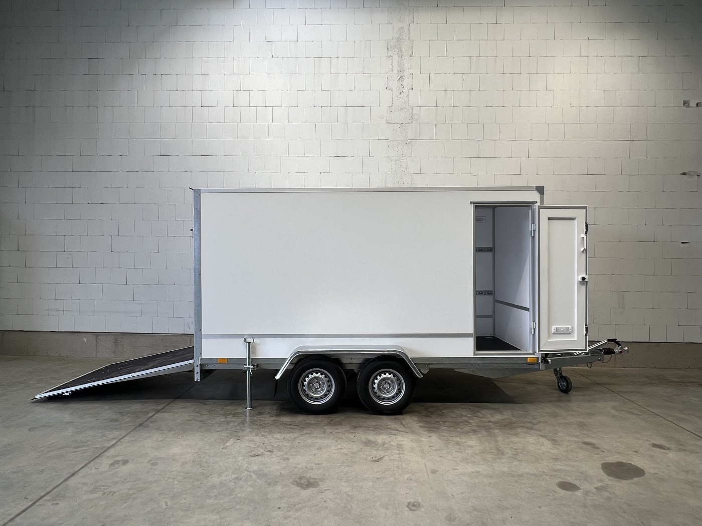 Kofferanhänger als 2-Achser mit Rampe und Seitentür