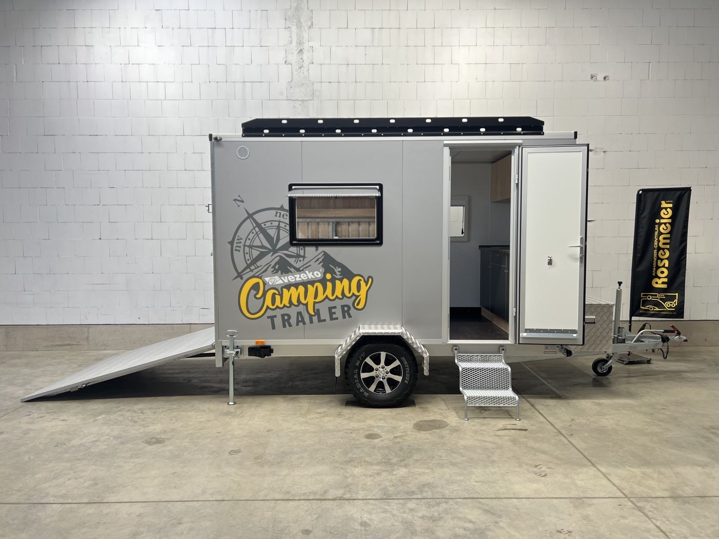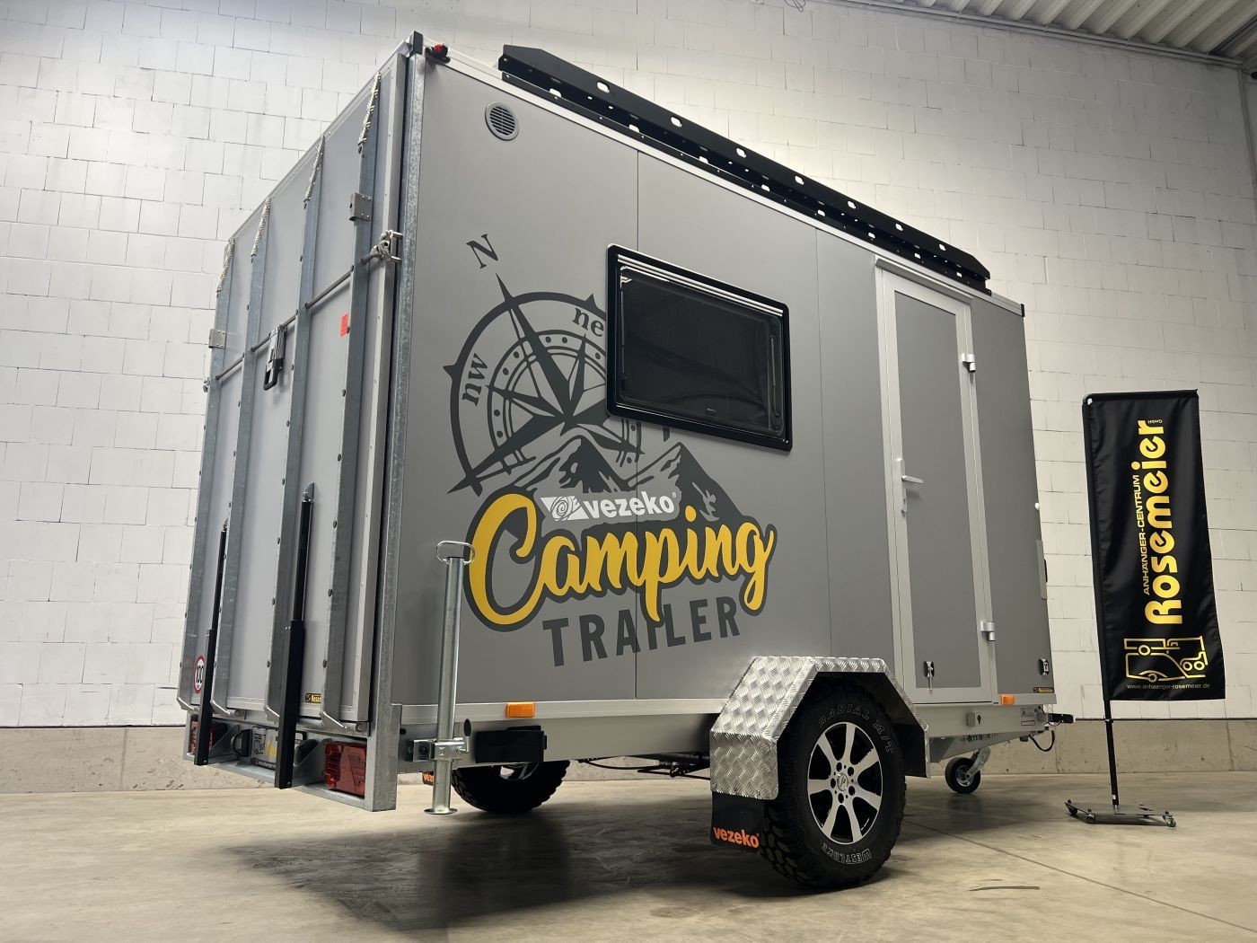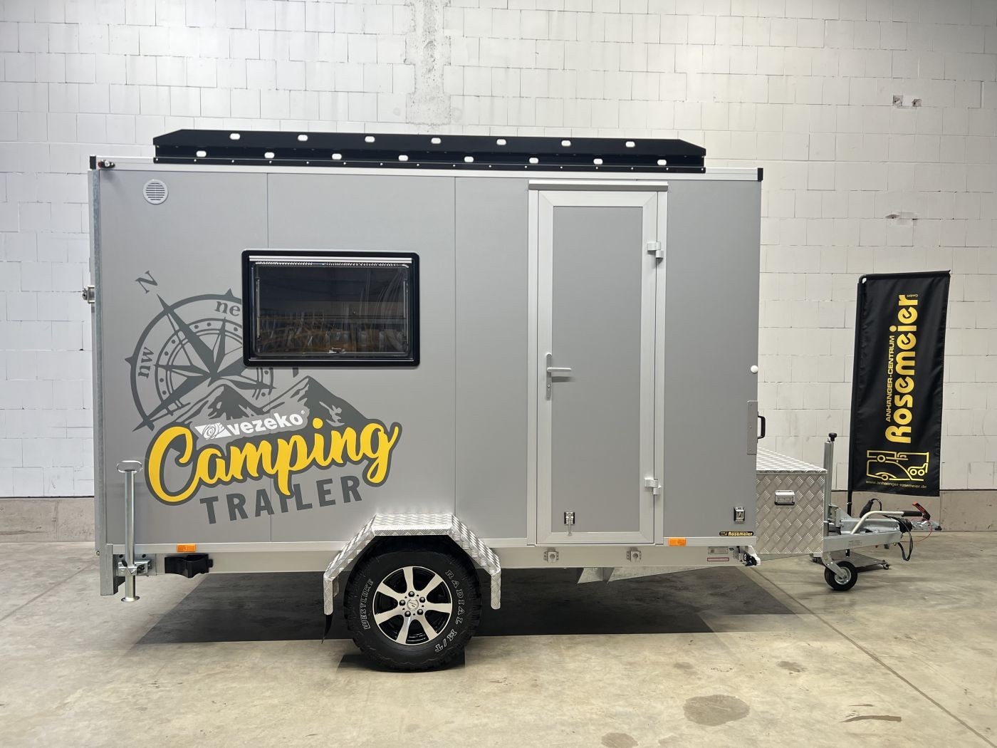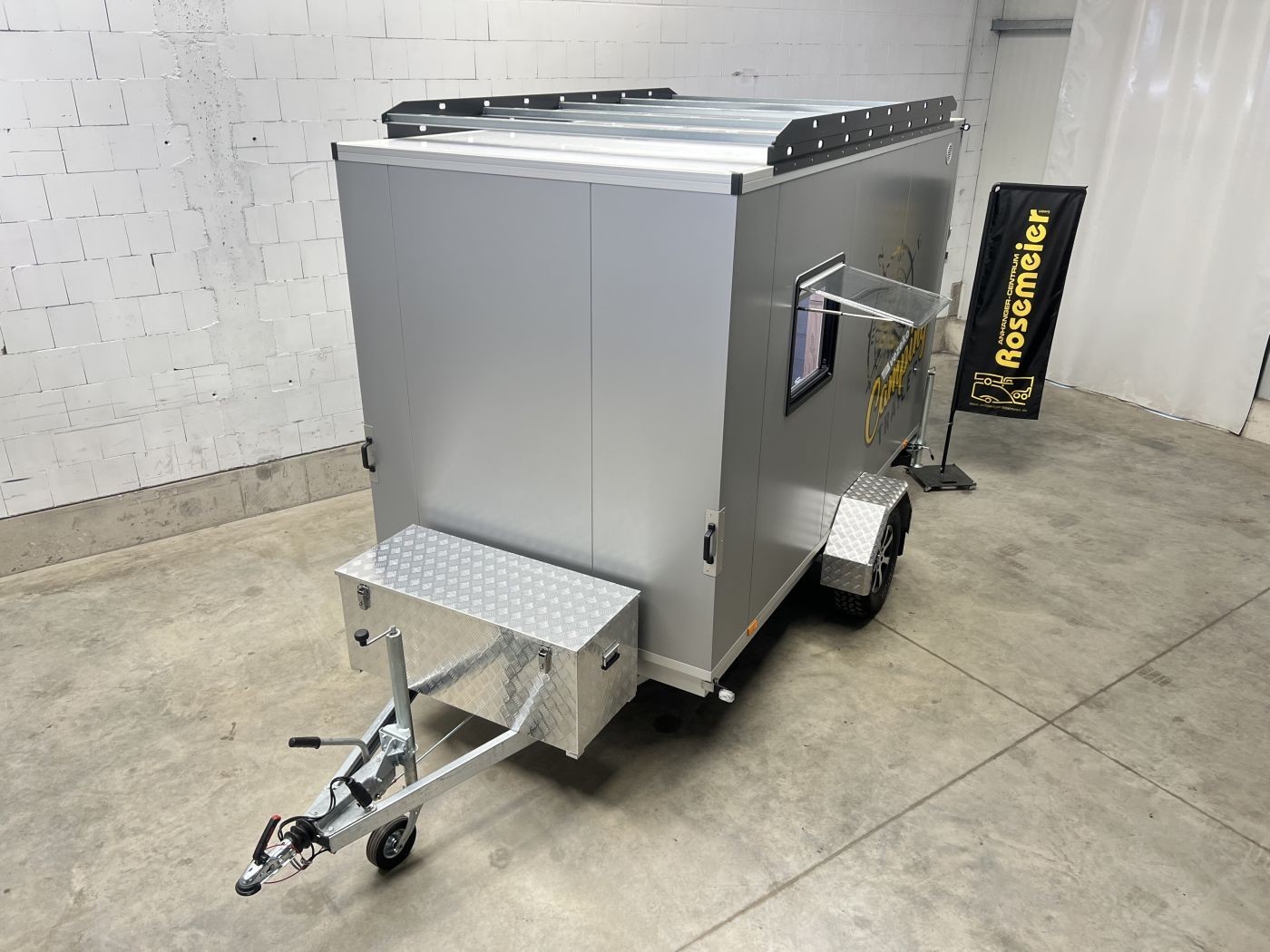 Campinganhänger mit Innenausstattung, Offroadreifen und Dachgepäckträger