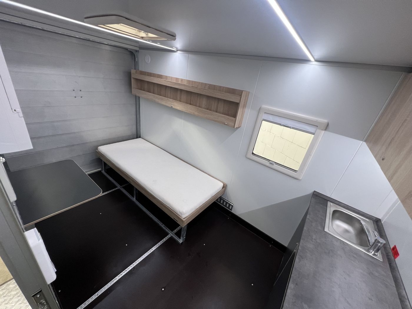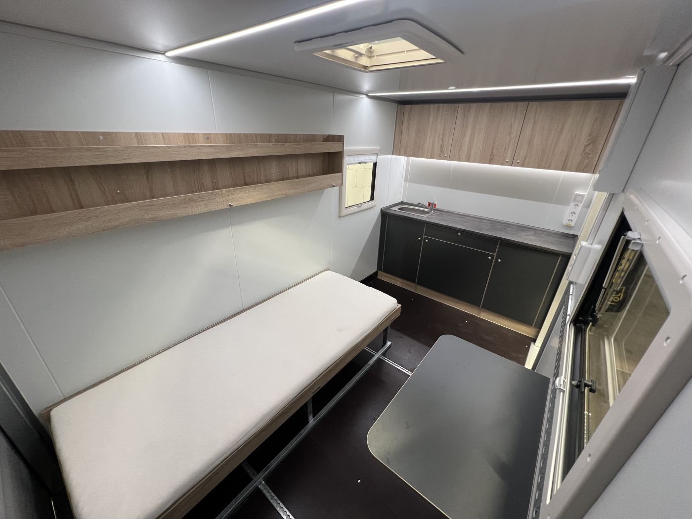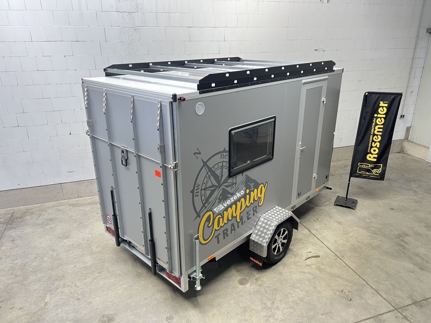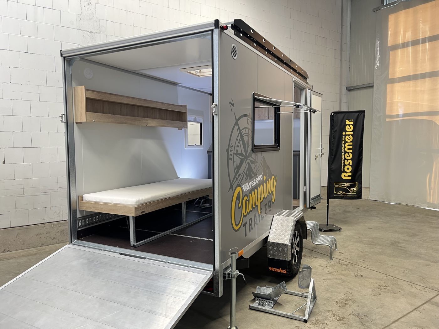 Campinganhänger mit Innenausstattung, Offroadreifen und Dachgepäckträger