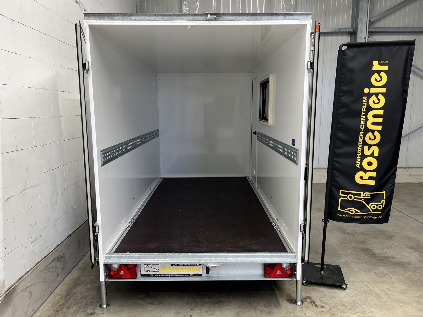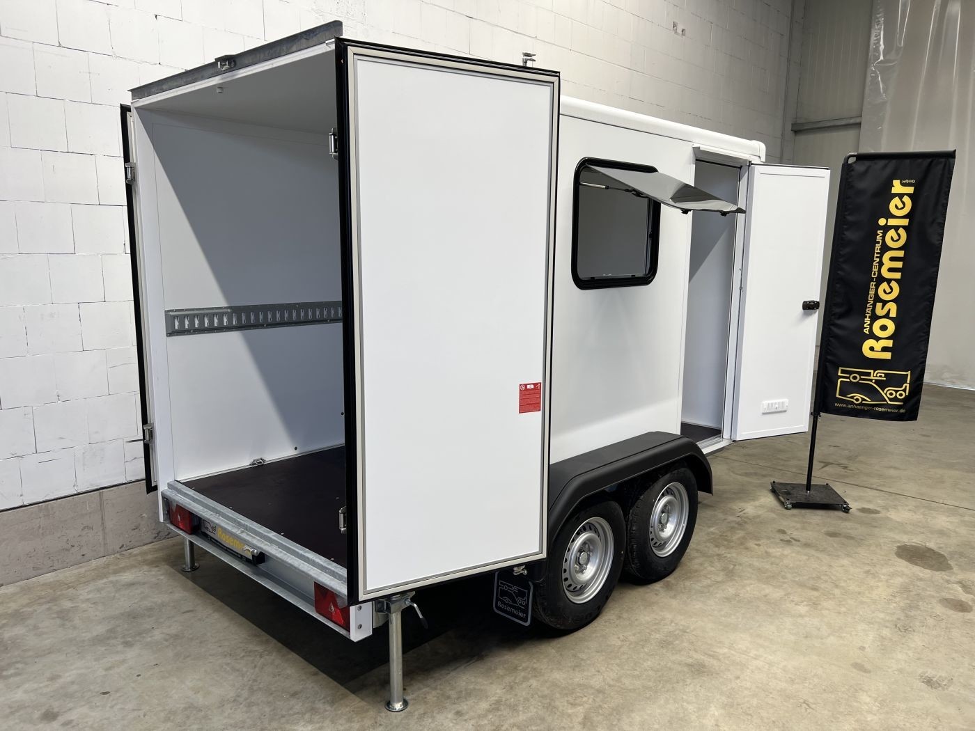 Sandwich – Kofferanhänger Tandem mit Doppelflügeltür, Seitentür und Seitenfenster