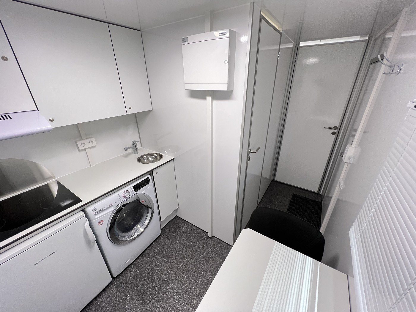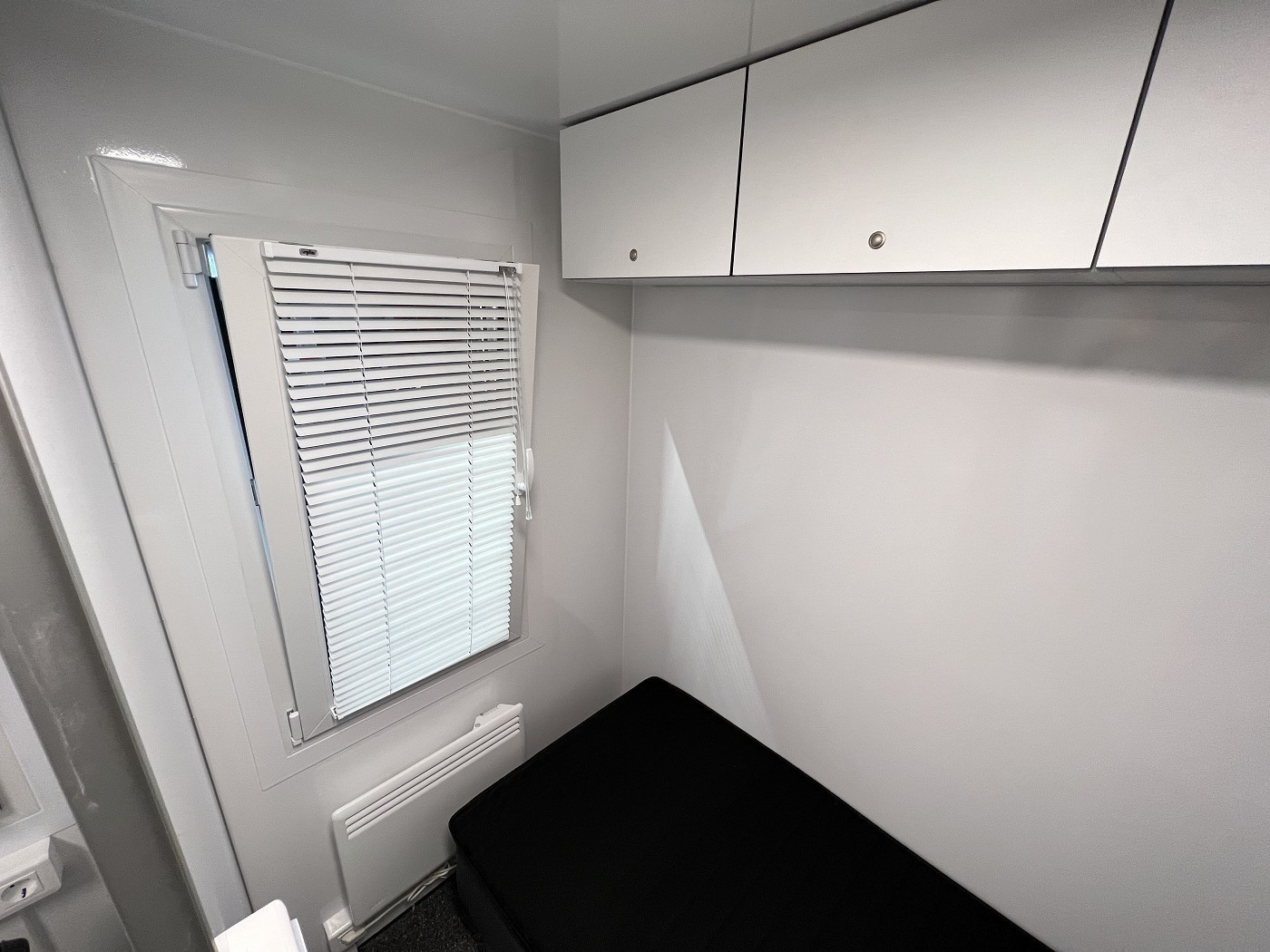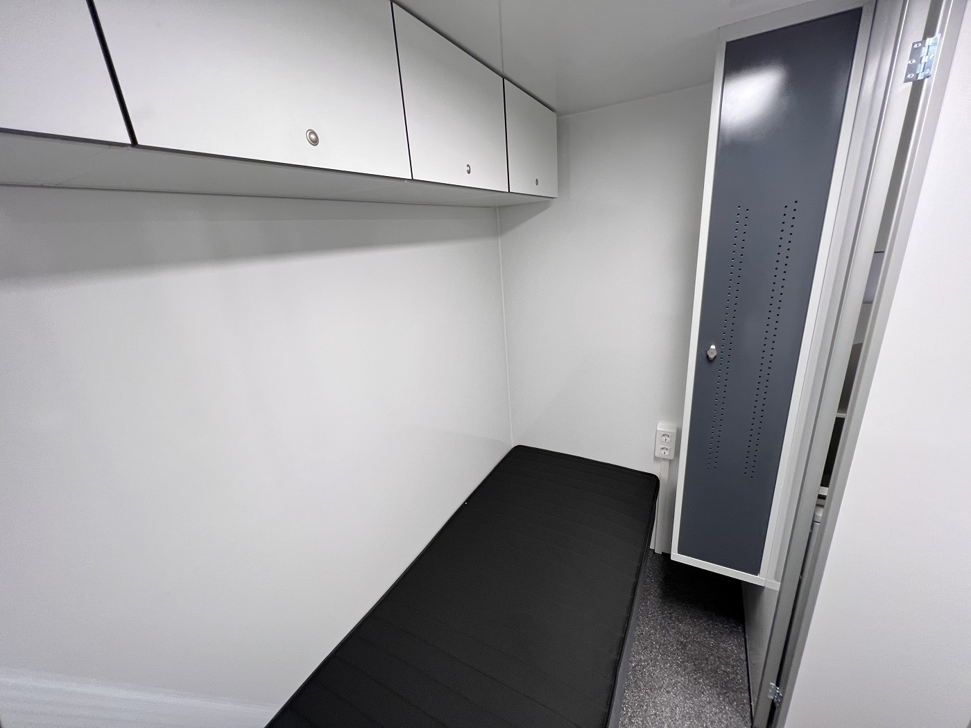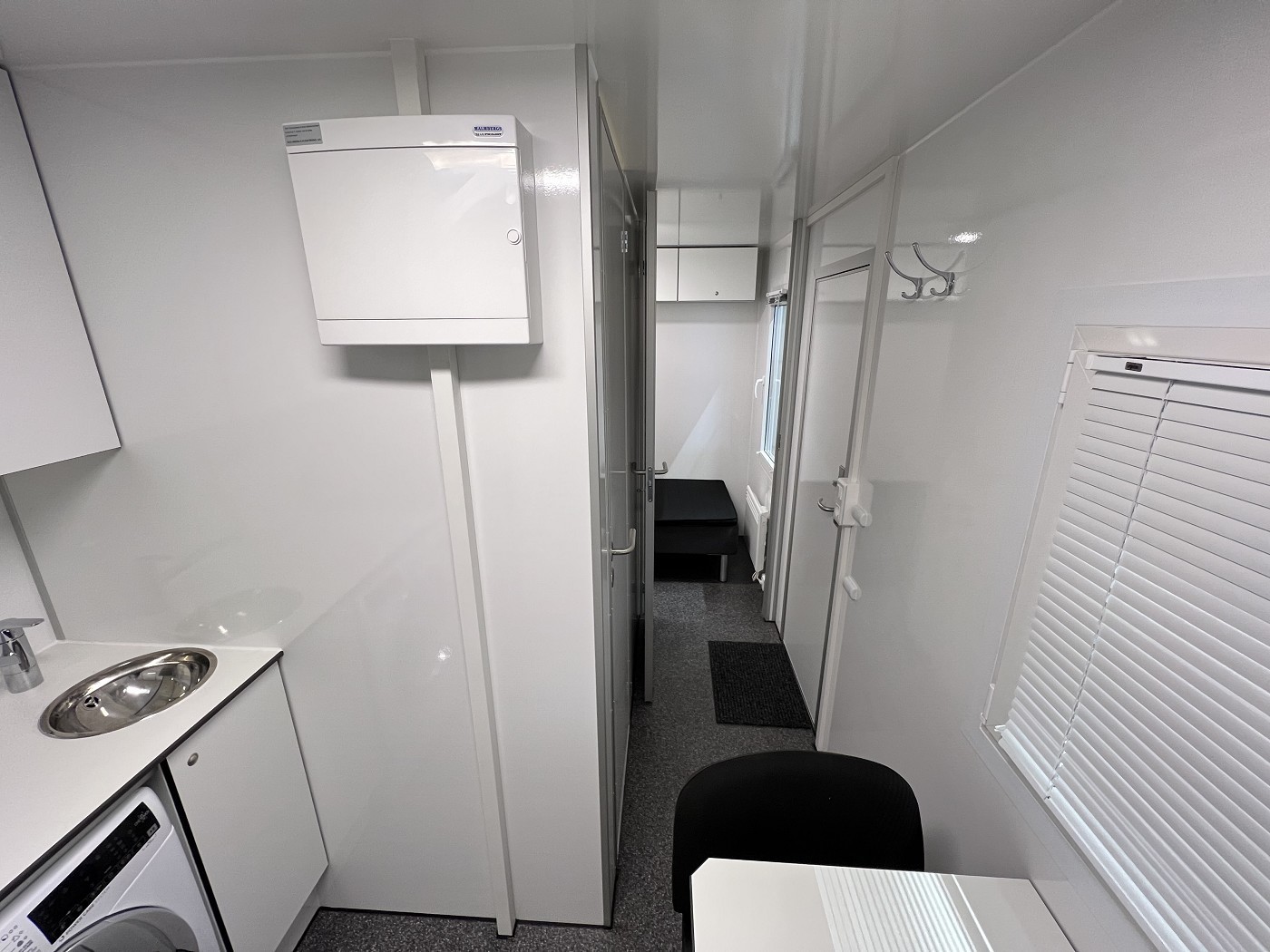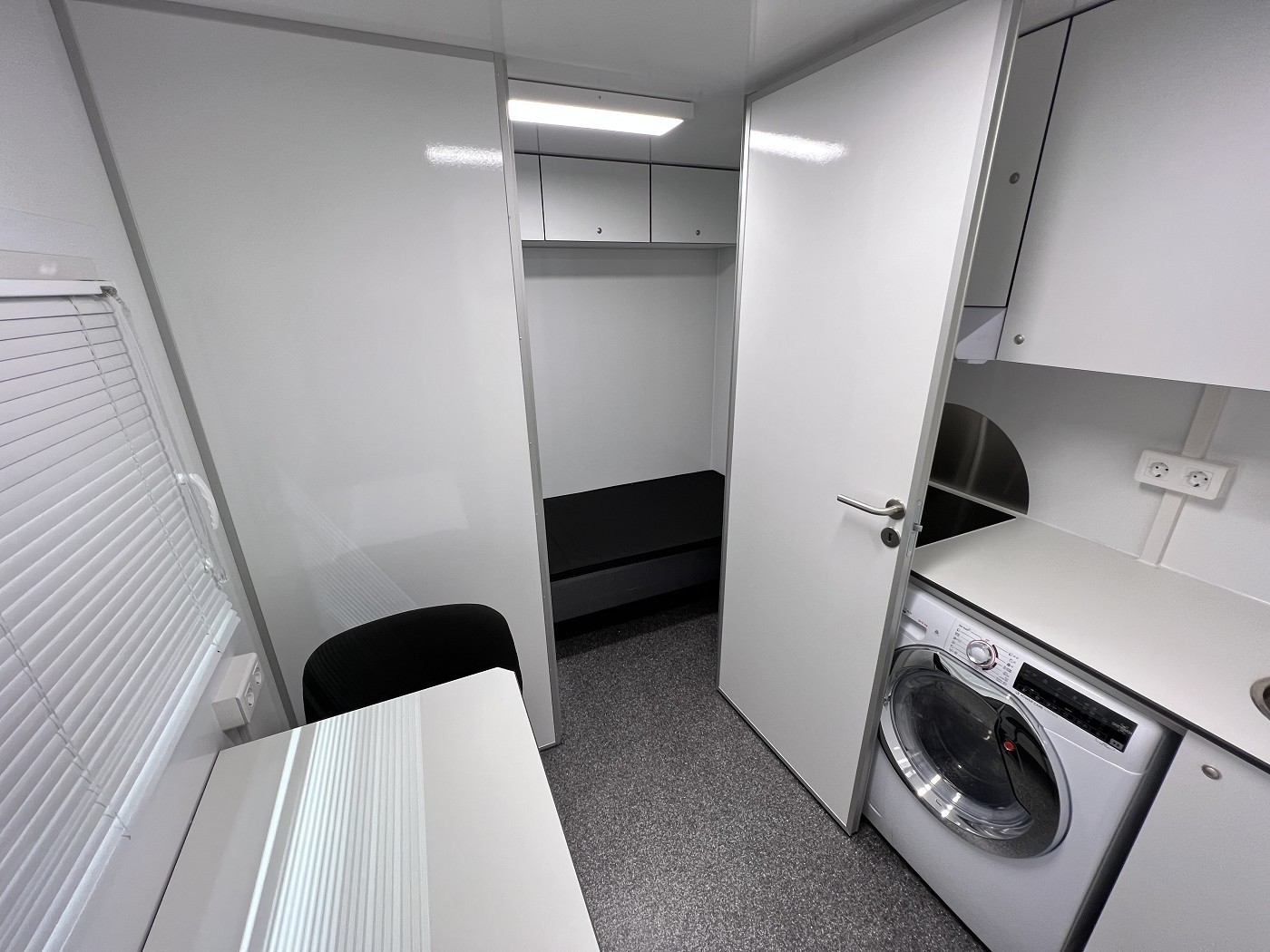 Mannschaftswagen mit kompletter Wohnausstattung – 2 Schlafzimmer mit je 1 Schlafplatz, Wohnbereich mit Küchenzeile sowie Badezimmer mit Dusche, WC und Waschbecken
