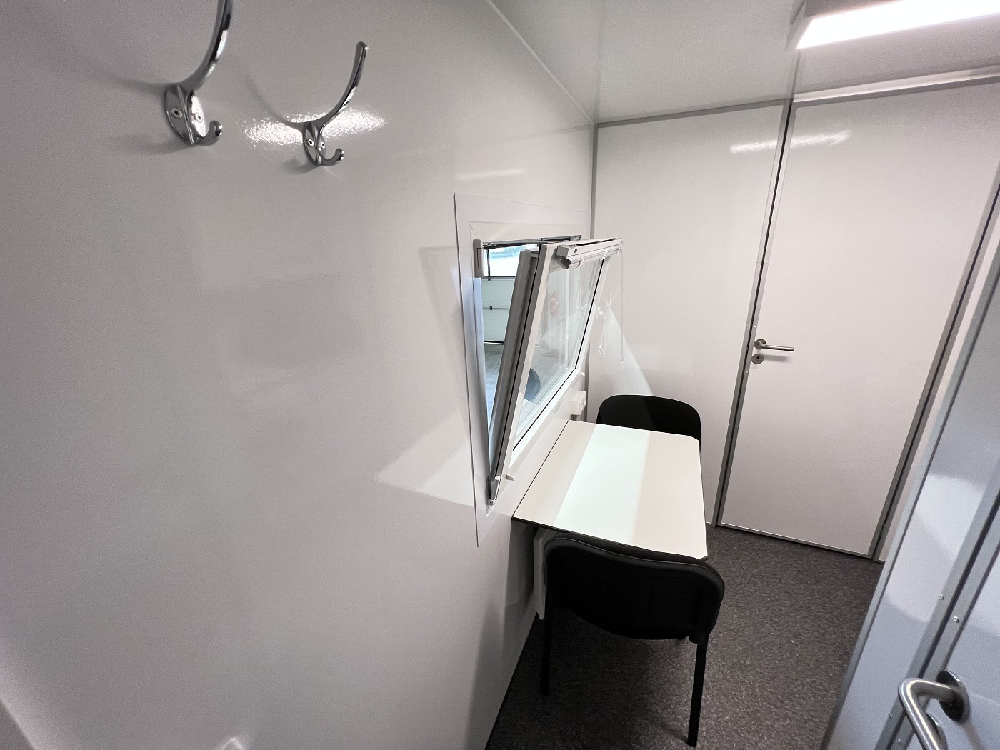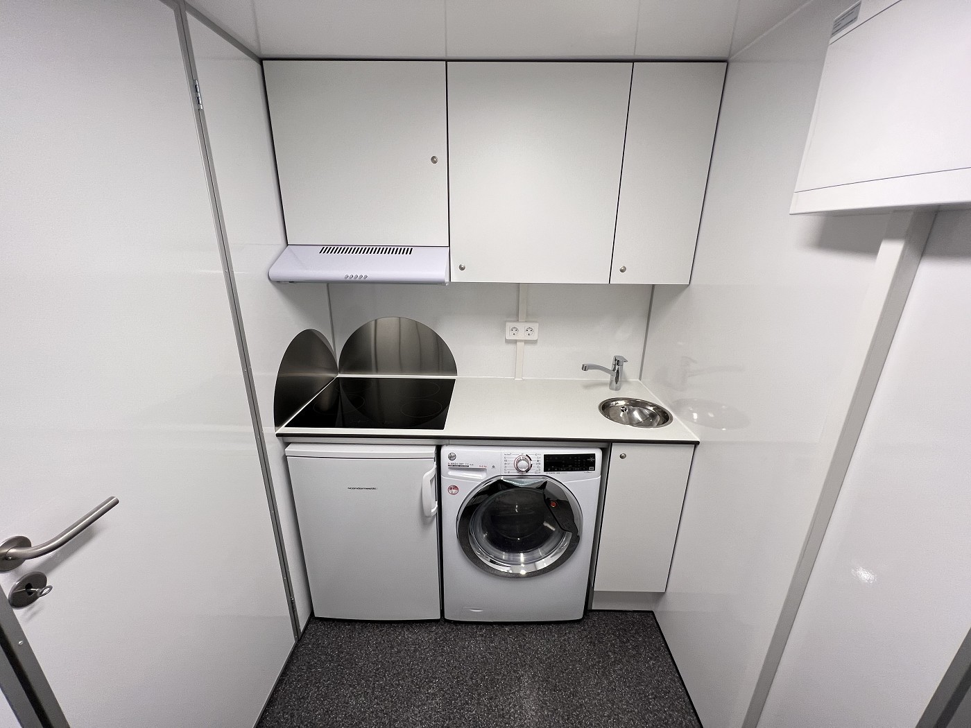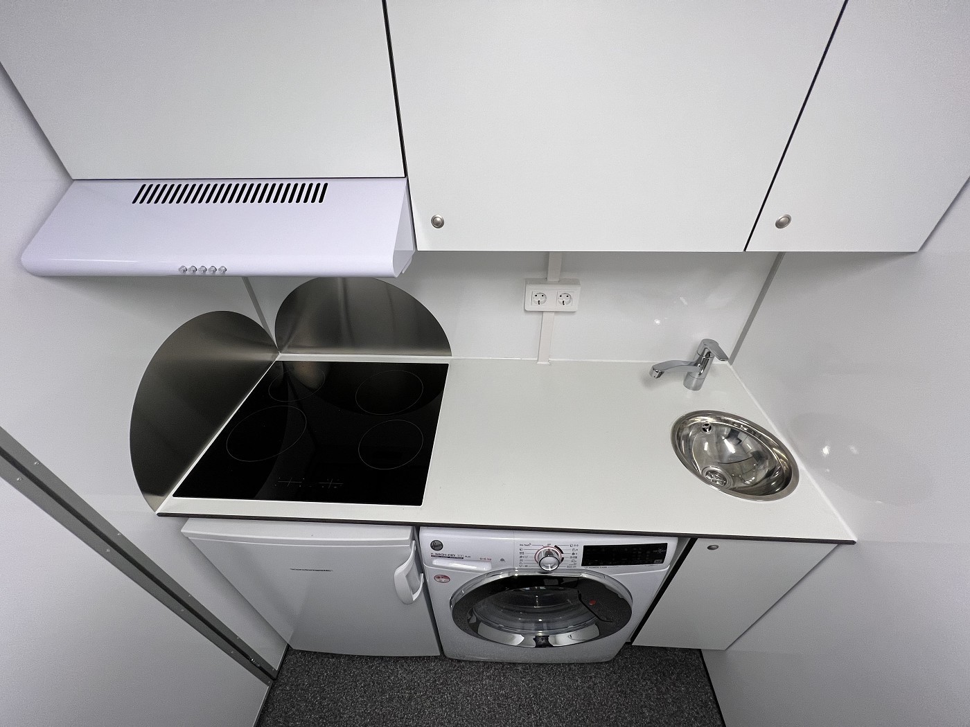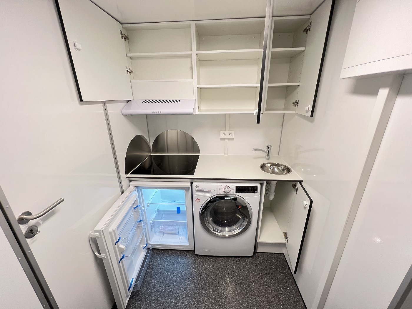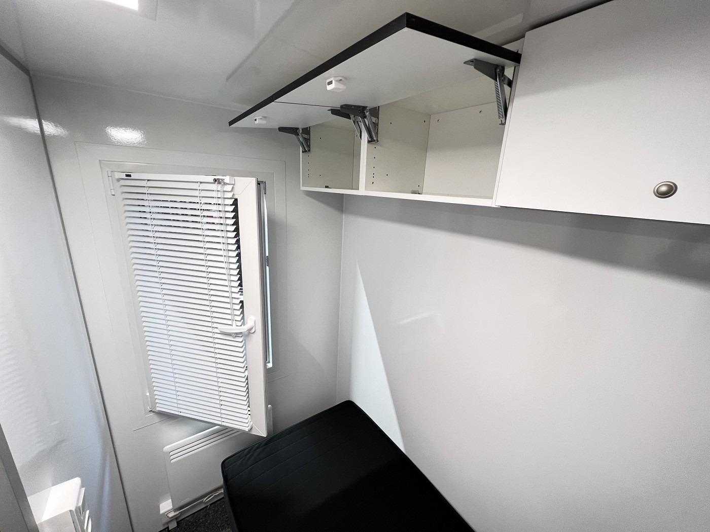 Mannschaftswagen mit kompletter Wohnausstattung – 2 Schlafzimmer mit je 1 Schlafplatz, Wohnbereich mit Küchenzeile sowie Badezimmer mit Dusche, WC und Waschbecken