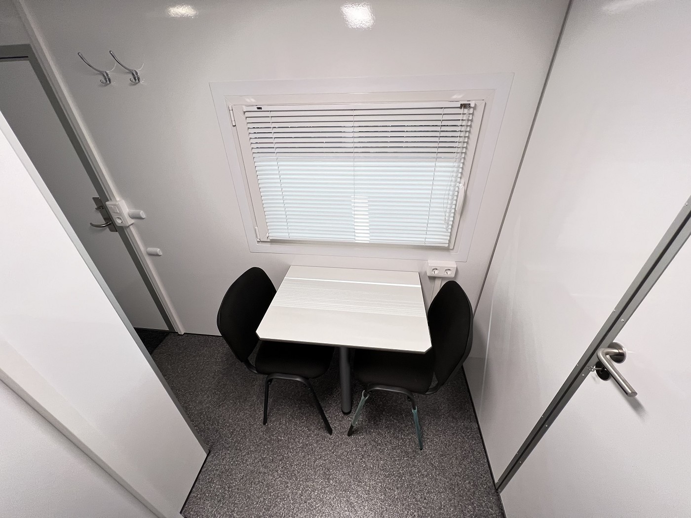 Fenster inkl. Sonnenschutzrollo direkt am Tisch