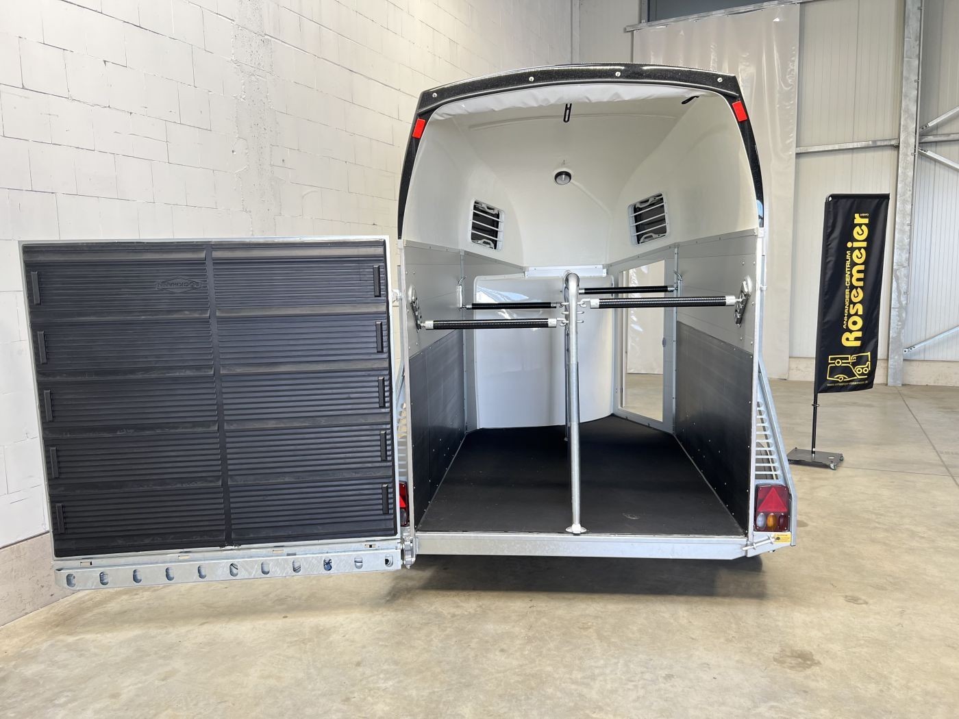 Pferdeanhänger Aluboden, Sattelkammer, Türklappenkombination, Trittschutz, Trittleisten auf der Beladeklappe, Radstoßdämpfer für die 100 km/h-Abnahme