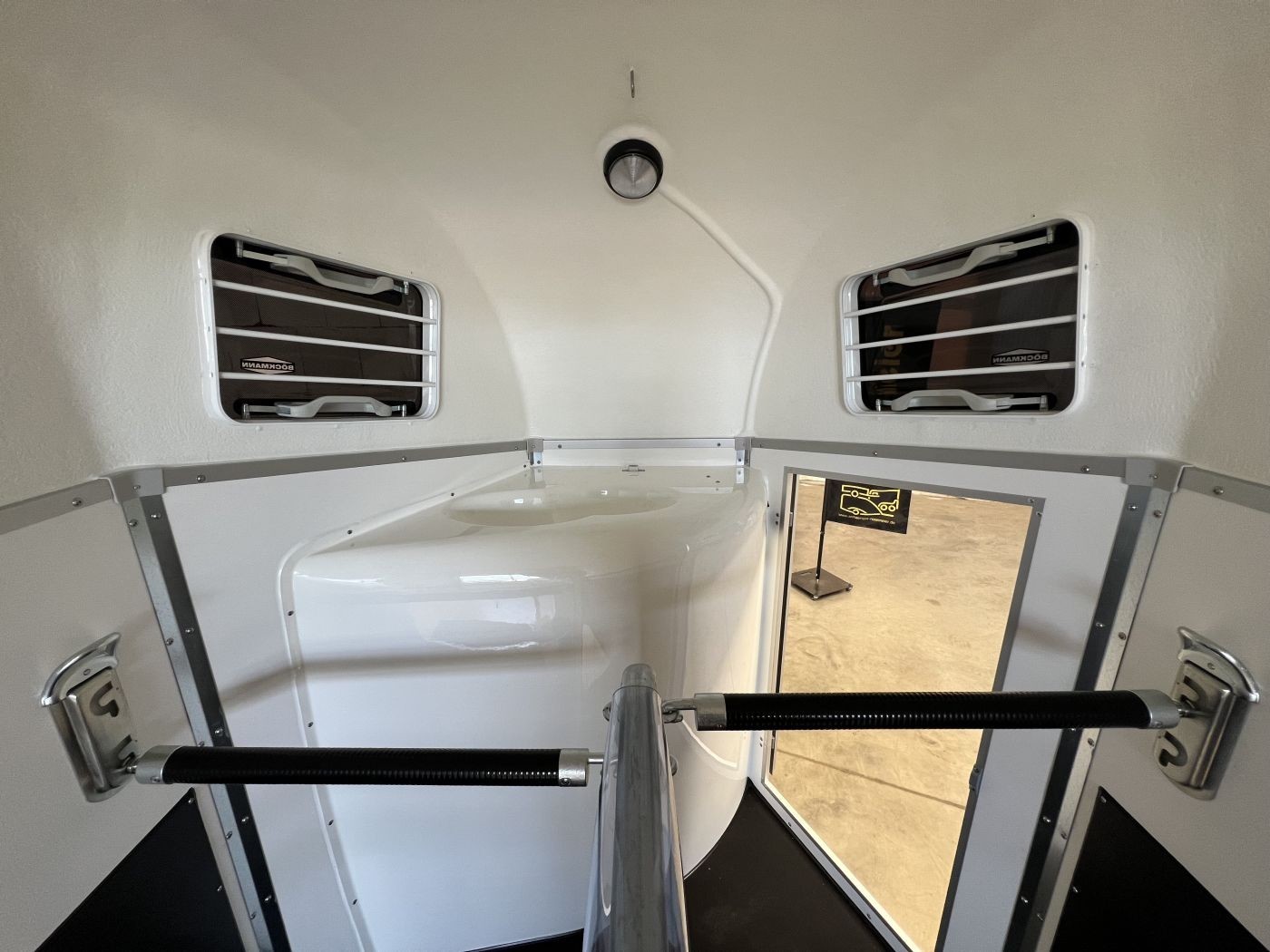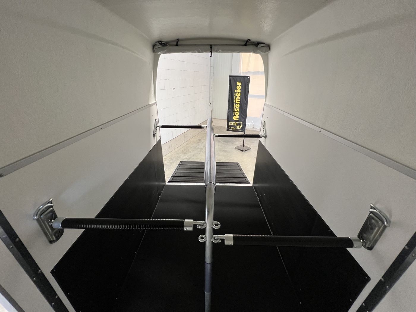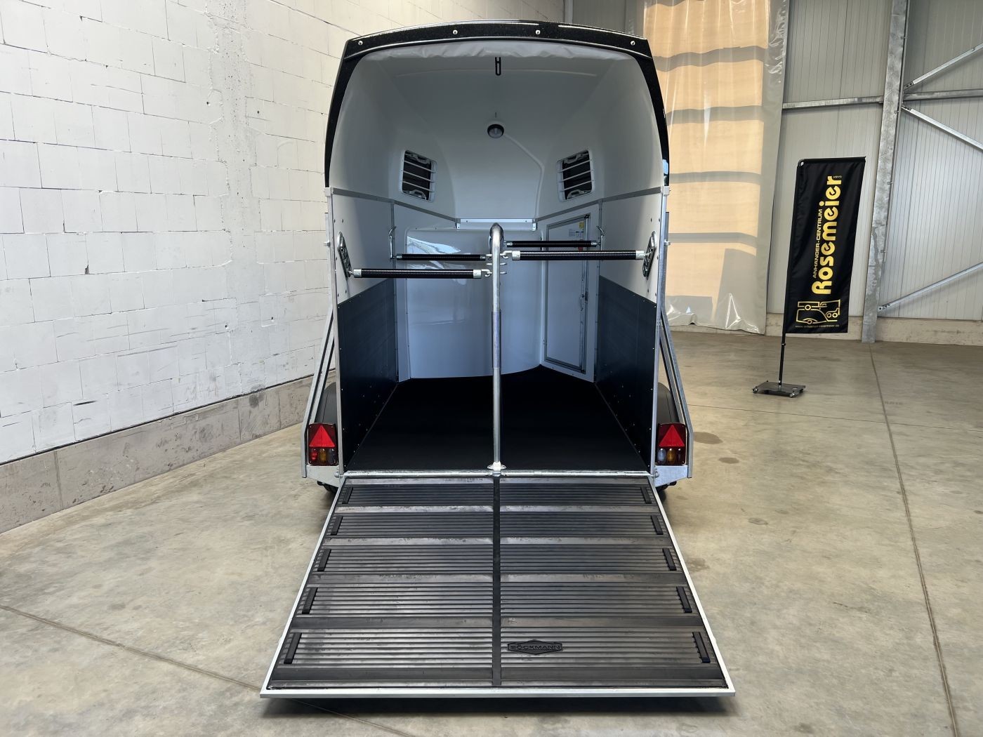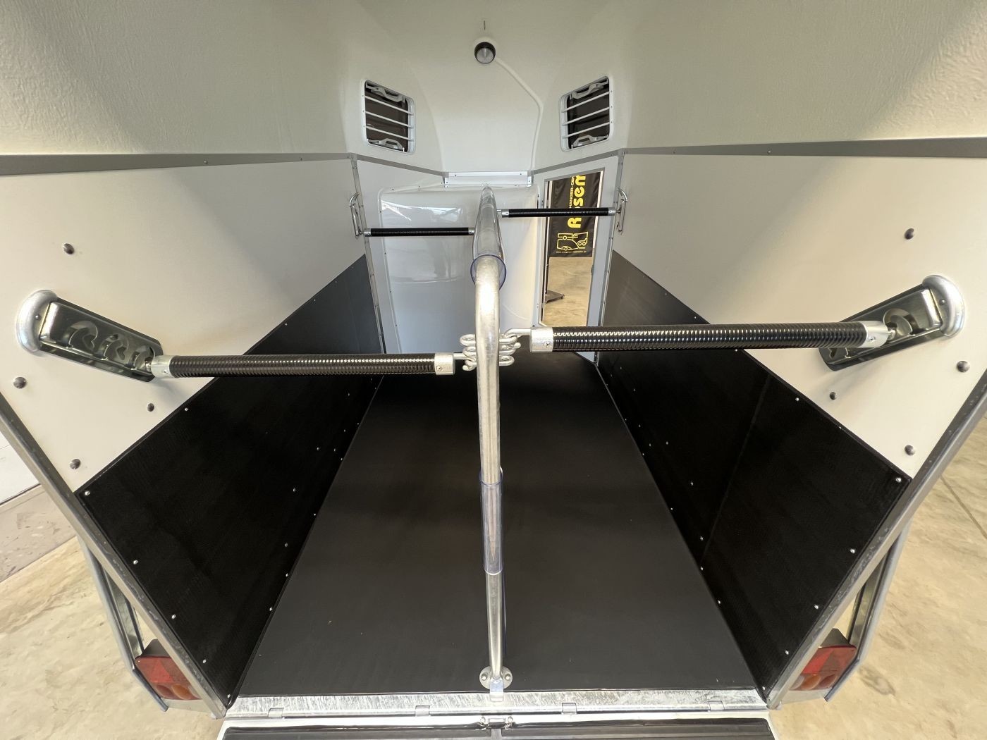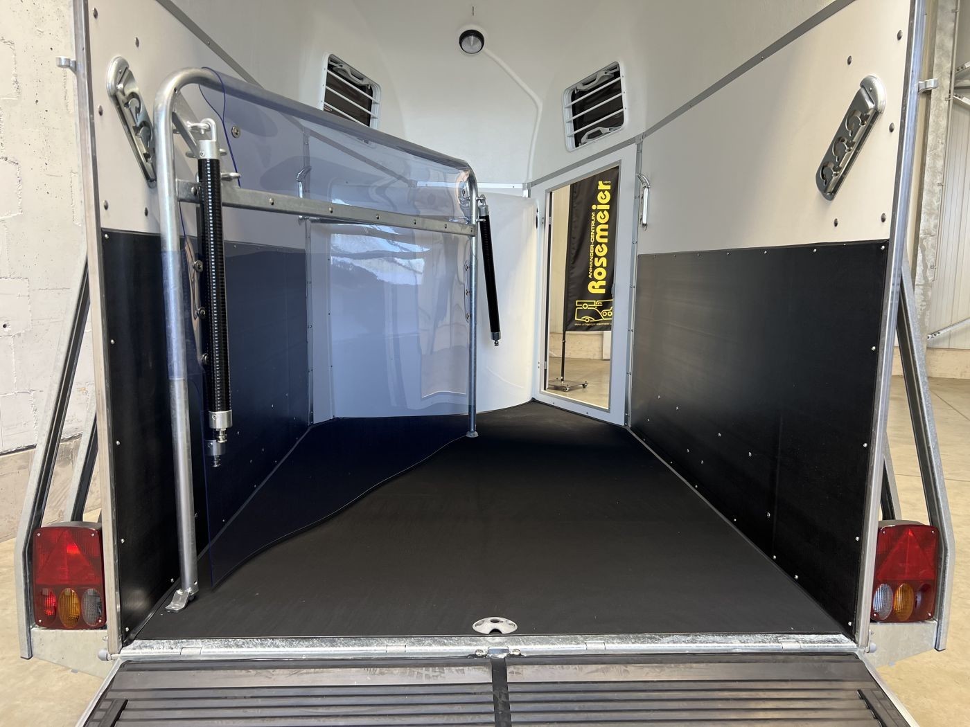Heckklappengummi mit integrierten Trittleisten und Seitenstops gewährleisten einen sicheren Ein- und Ausstieg Ihrer Pferde