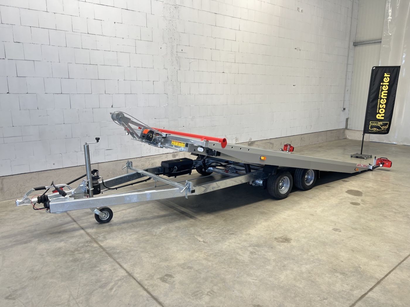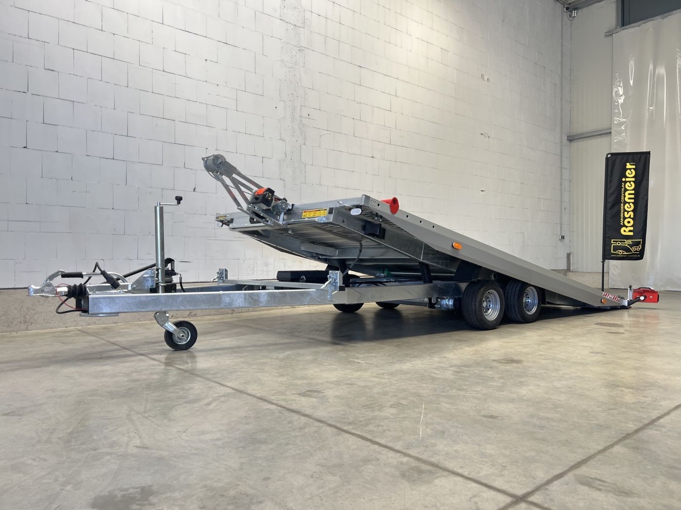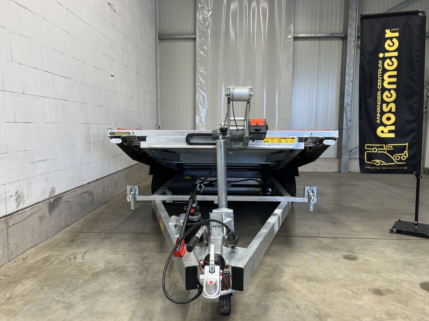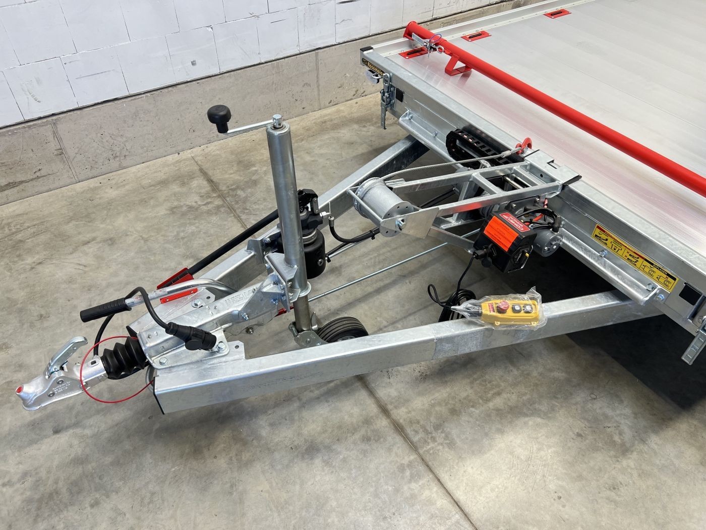 Kippbarer Autotransporter mit geschlossenem Aluboden und E-Seilwinde