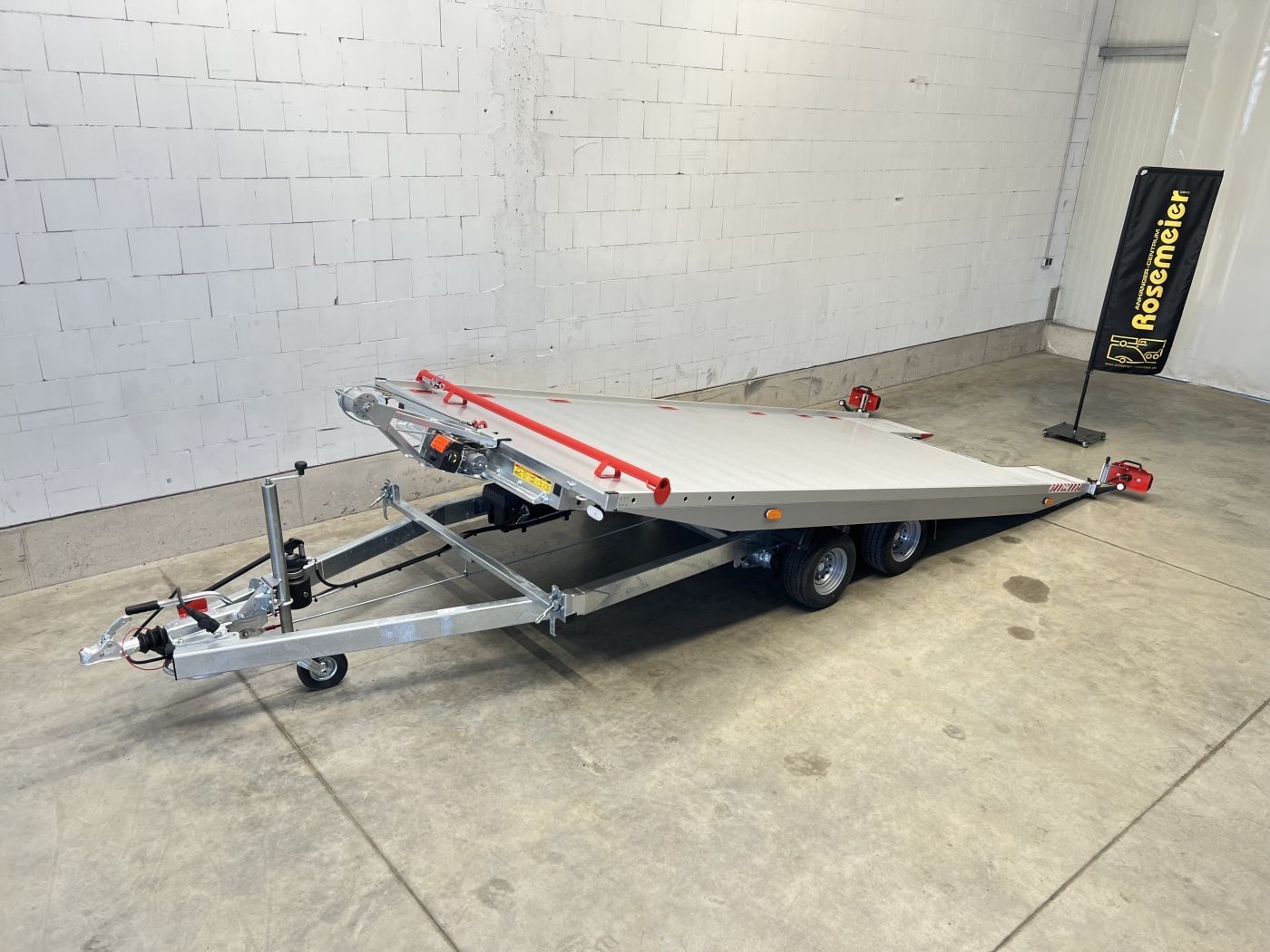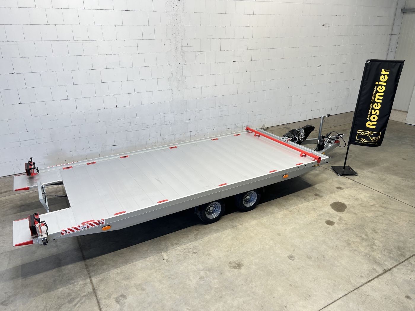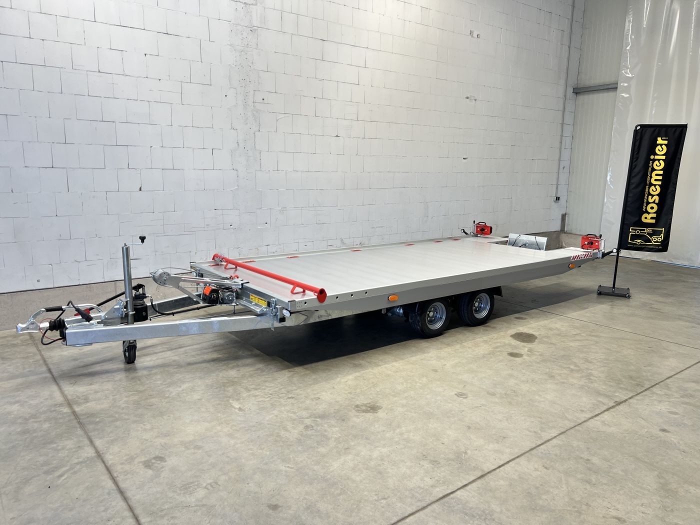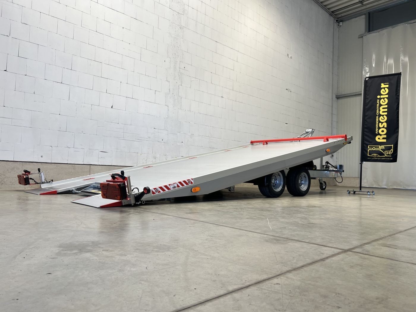 Kippbarer Autotransporter mit geschlossenem Aluboden und E-Seilwinde