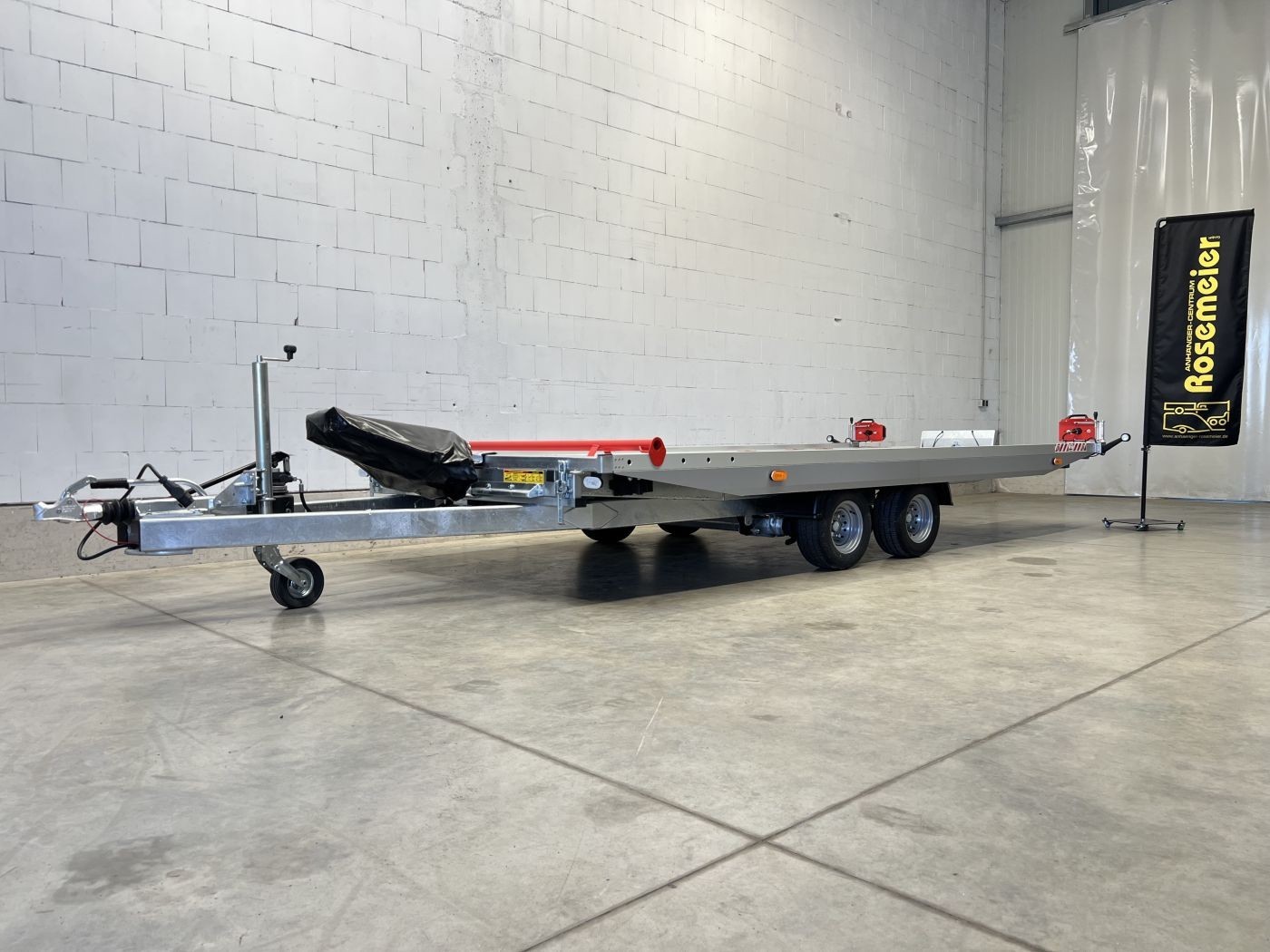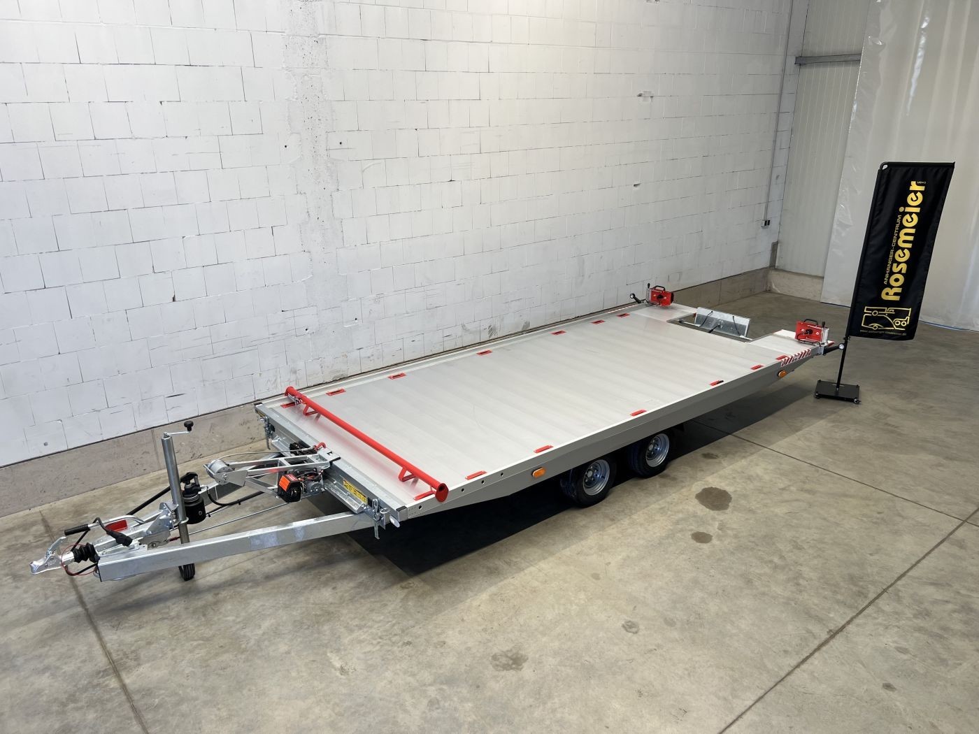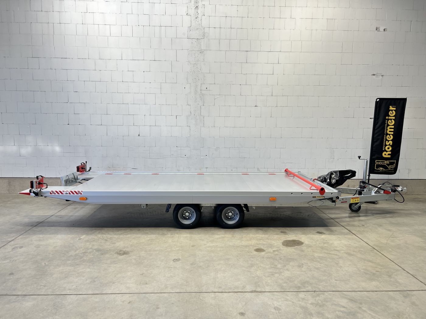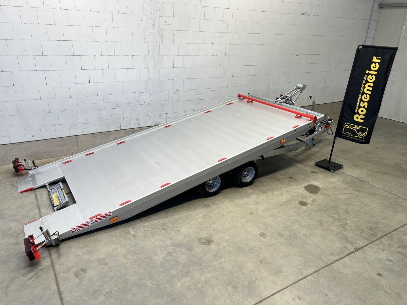 Kippbarer Autotransporter mit geschlossenem Aluboden und E-Seilwinde