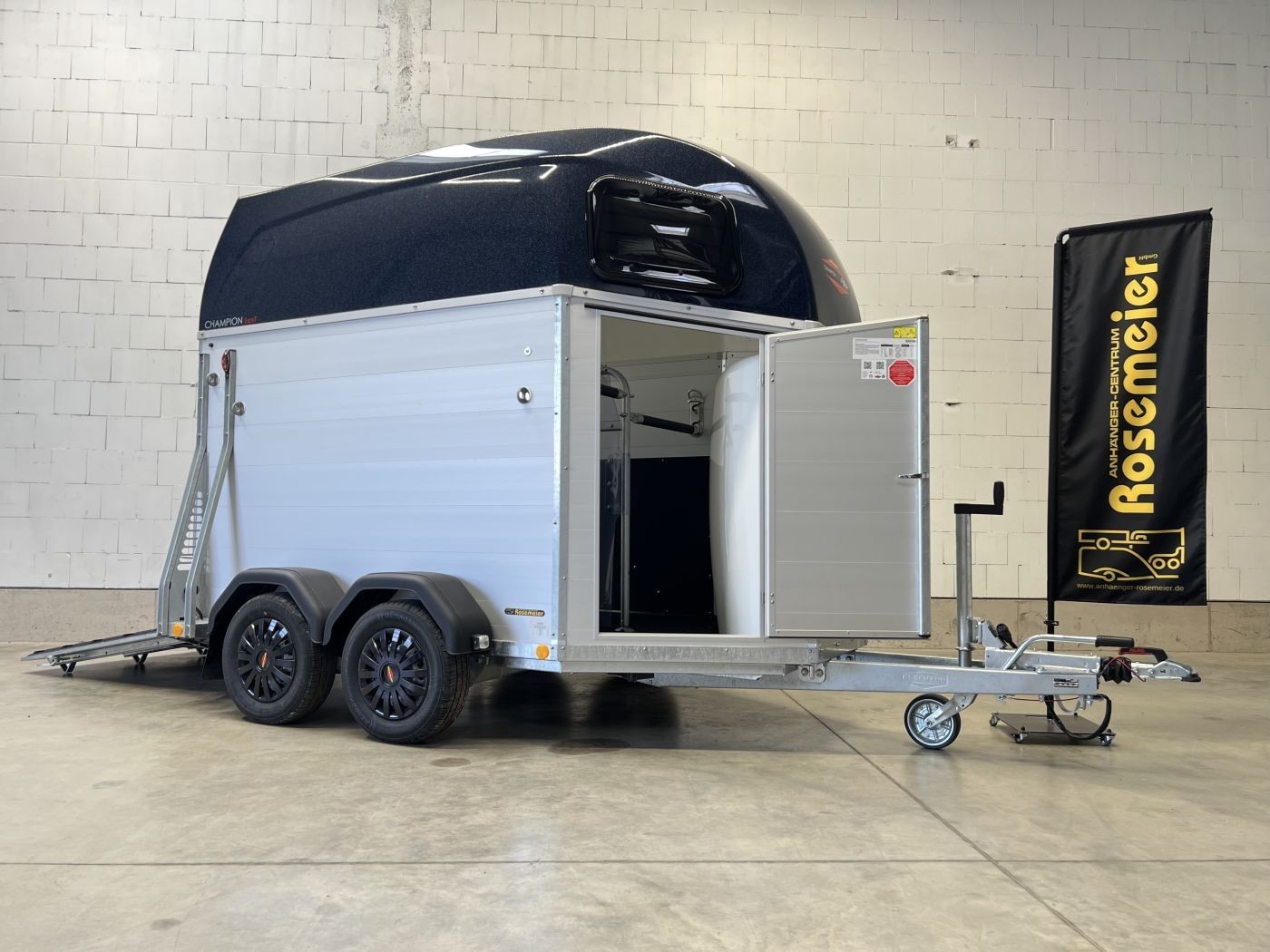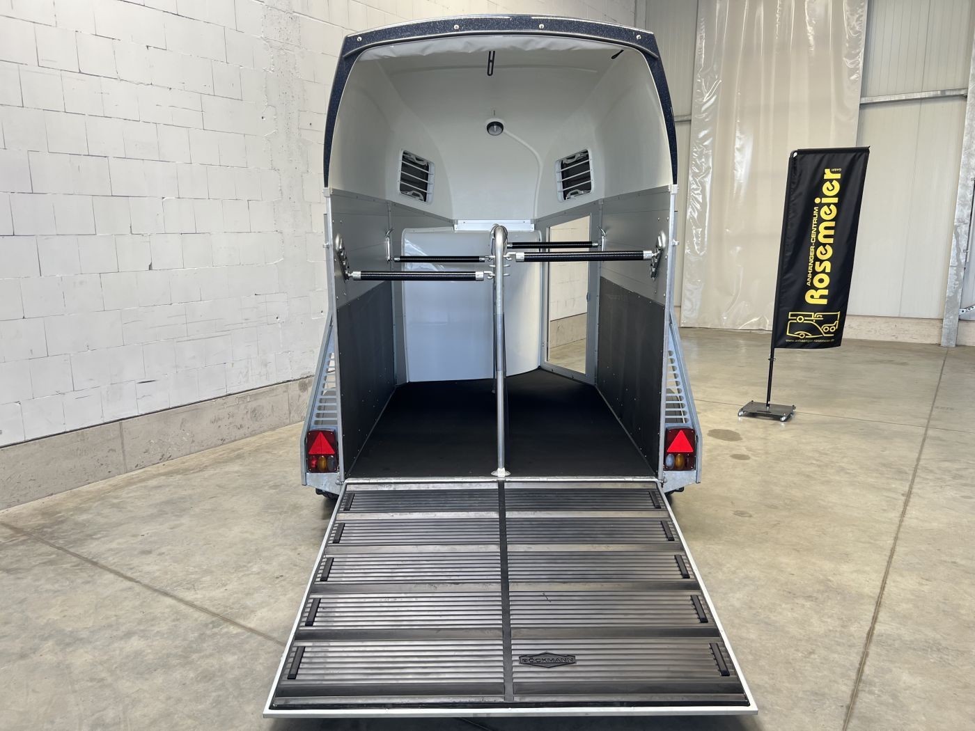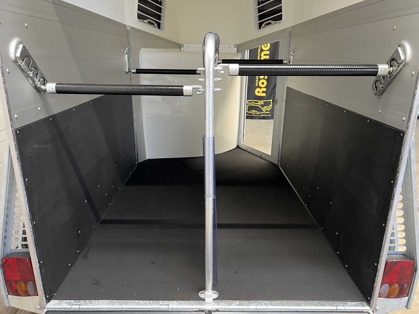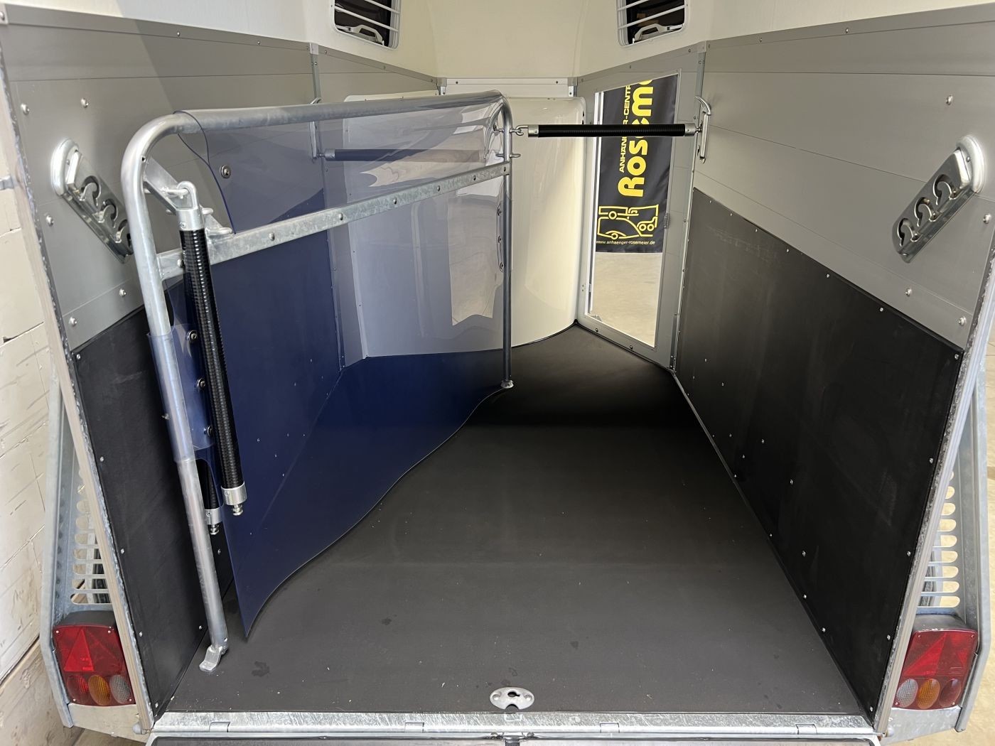Pferdeanhänger Aluboden, Sattelkammer, Trittschutz, Trittleisten auf der Beladeklappe, Radstoßdämpfer für die 100 km/h-Abnahme