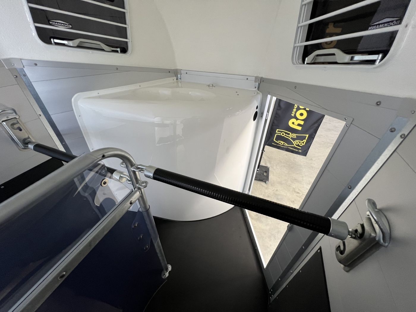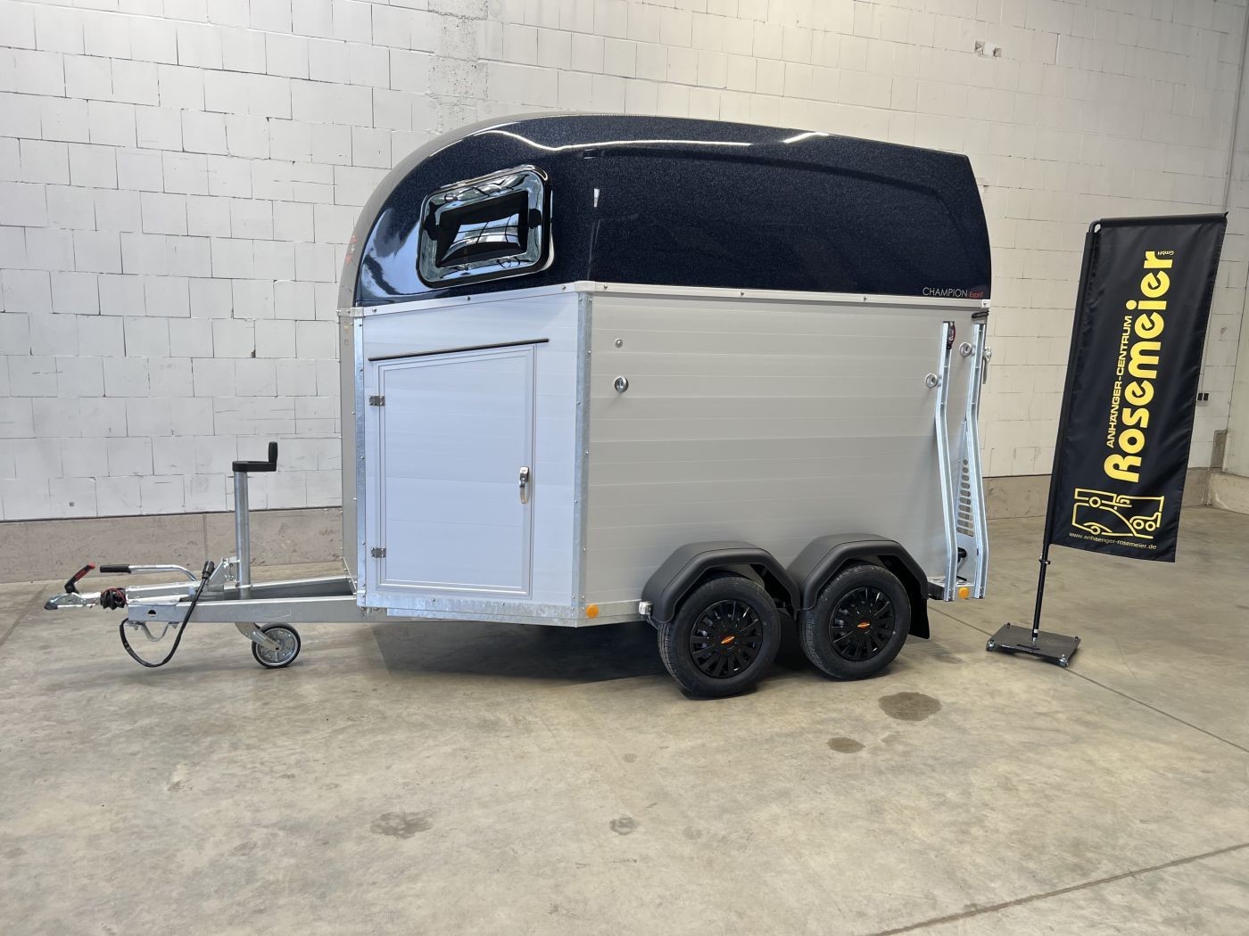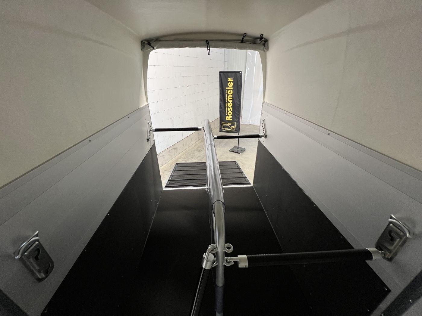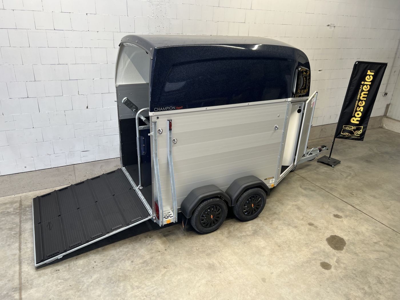Pferdeanhänger Aluboden, Sattelkammer, Trittschutz, Trittleisten auf der Beladeklappe, Radstoßdämpfer für die 100 km/h-Abnahme