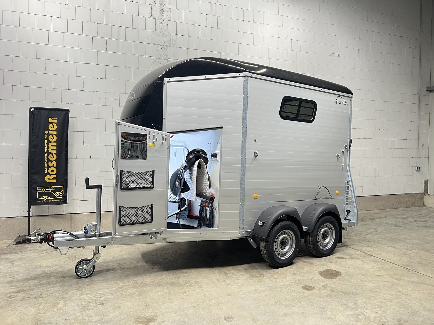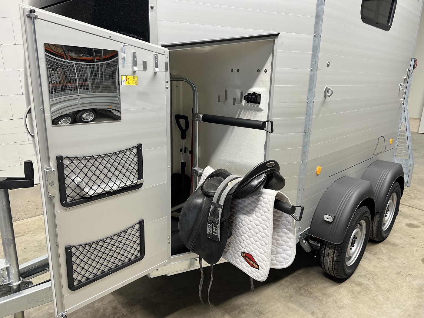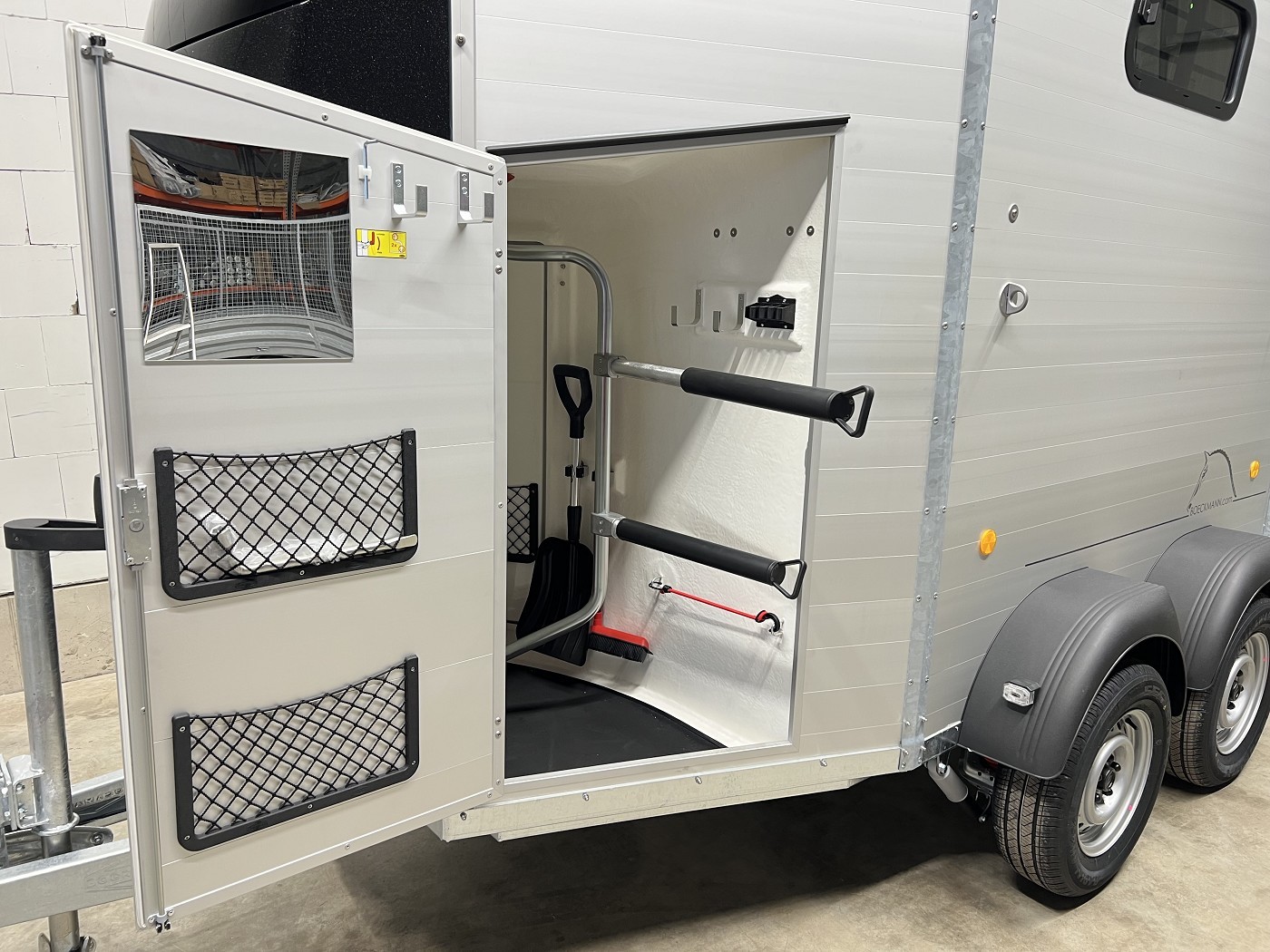 Die neuen Portax SKA und L SKA verfügen über eine Sattelkammer, die von innen und außen zugänglich ist, bieten zusätzlichen Platz vor den Pferden und einen einfachen Zugang zum Pferderaum durch die mannshohe Einstiegstür.