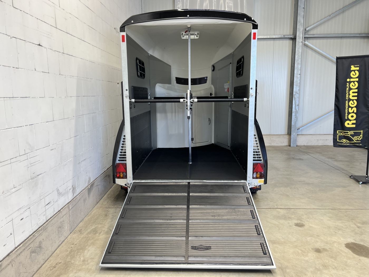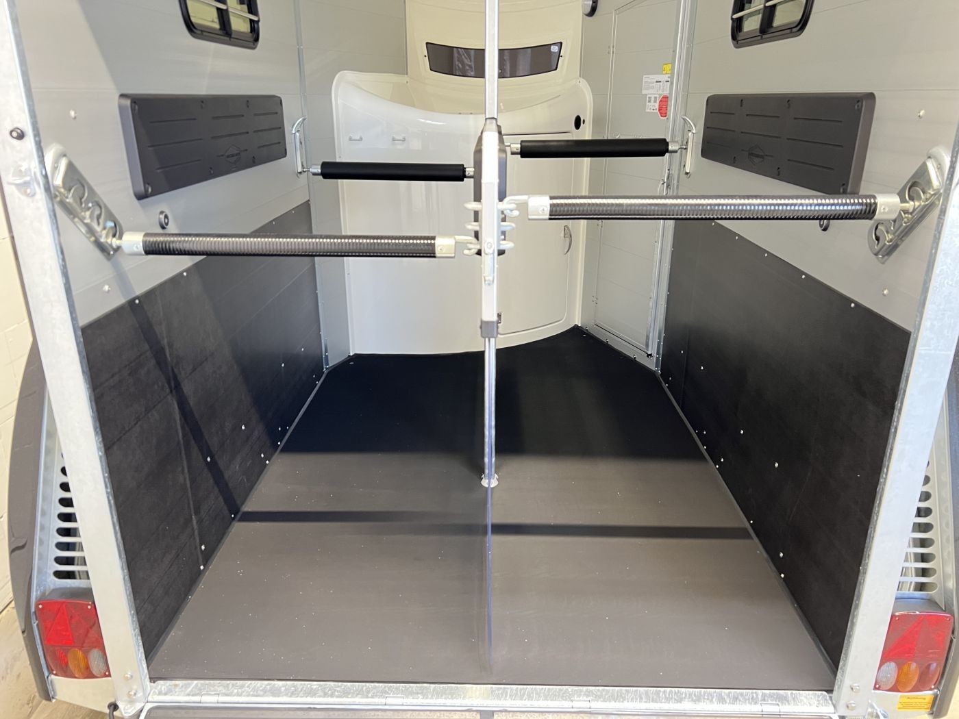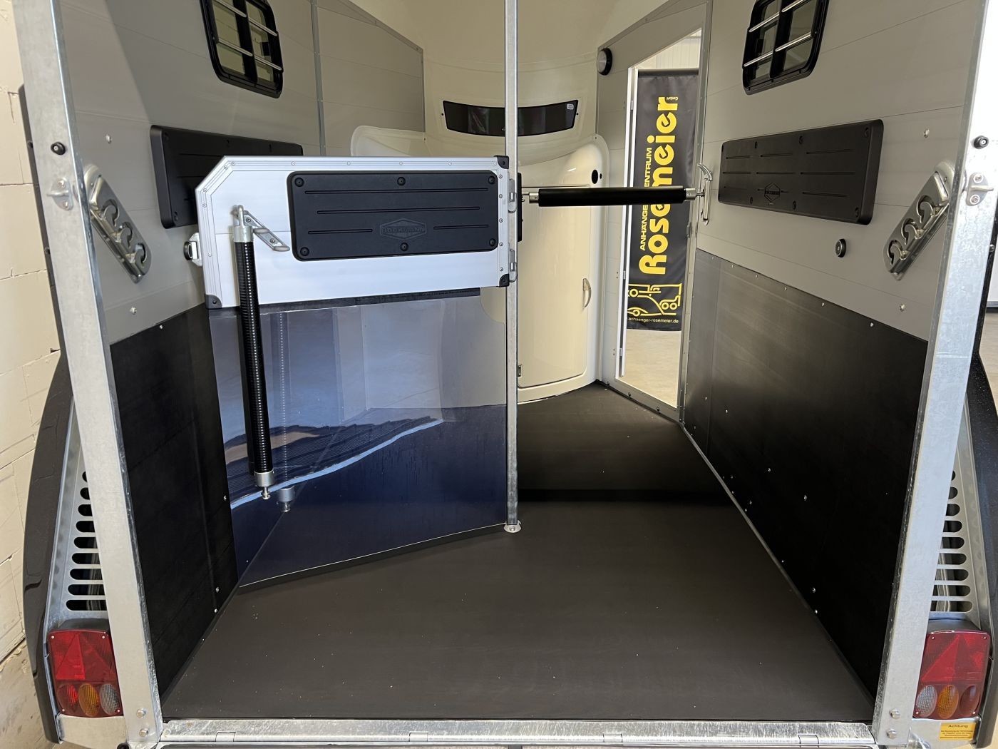 Ein besonderes Highlight der Modelle ist der neue Portax Lichtbogen, der das direkte Blendlicht auf ein Minimum reduziert. Dadurch werden Störfaktoren für Ihre Pferde deutlich verringert und alle Beteiligten gelangen entspannt ans Ziel. Doch auch im Innenraum hat sich einiges im Vergleich zum Vorgängermodell getan. Ein Exzenterspanner und ein Magnetfeststeller sind absolute Neuheiten, die im Pferderaum das Handling vereinfachen. So ermöglicht der Exzenterspanner den einfachen Ausbau der Mittelpfosten-Trennwand und ermöglicht so den komfortablen Transport von Stute mit Fohlen. Ein Magnetfeststeller ermöglicht das Feststellen der Trennwand-Flügel auf beiden Seiten und gewährleistet so viel Platz und Sicherheit beim Verladen.