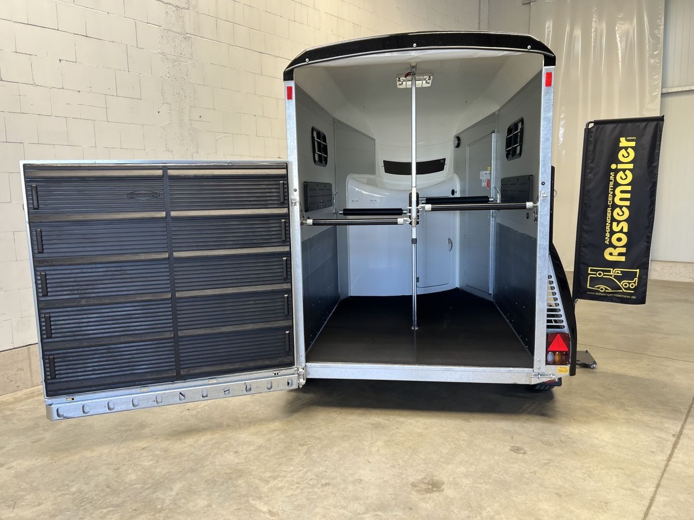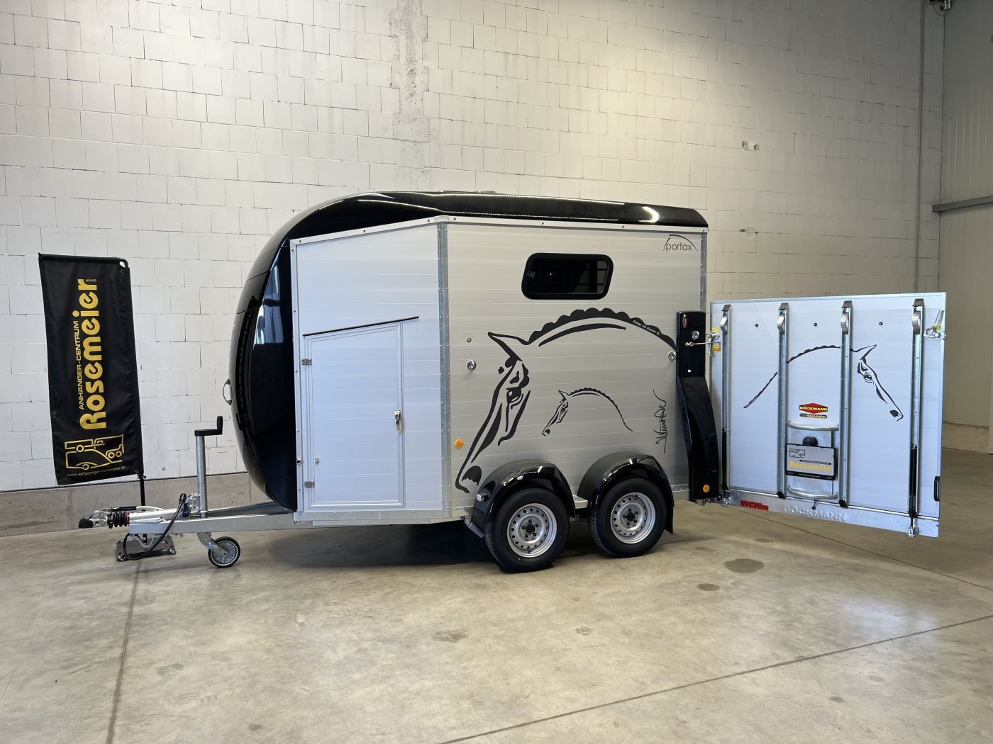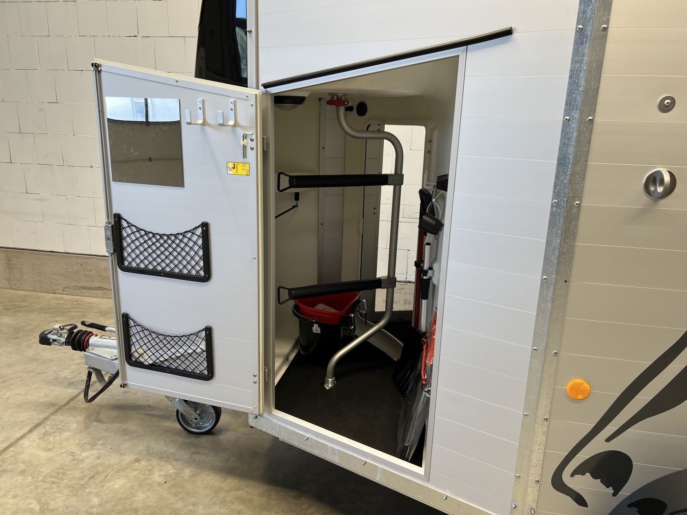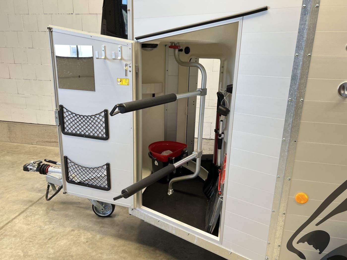 Die neuen Portax SKA und L SKA verfügen über eine Sattelkammer, die von innen und außen zugänglich ist, bieten zusätzlichen Platz vor den Pferden und einen einfachen Zugang zum Pferderaum durch die mannshohe Einstiegstür.