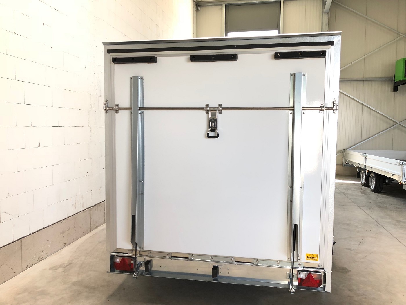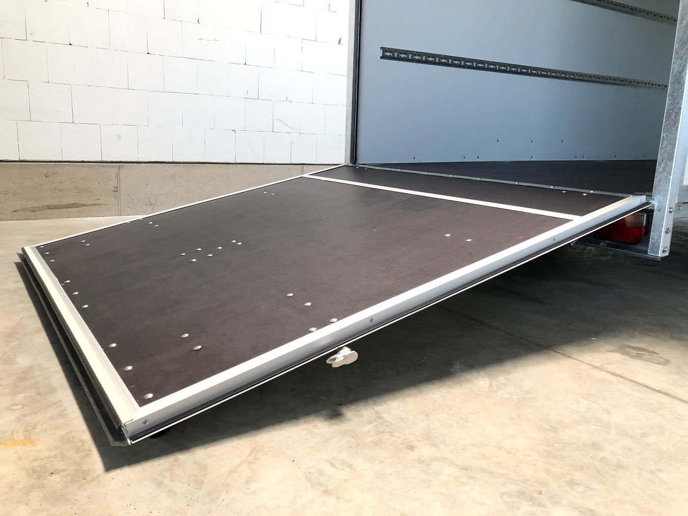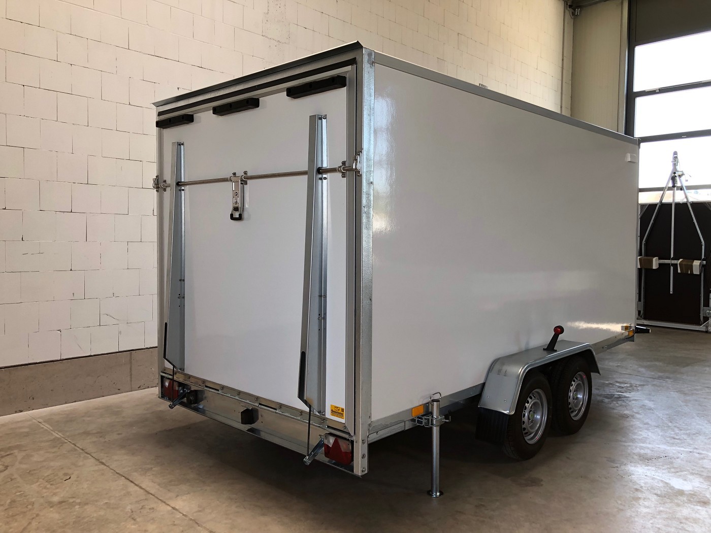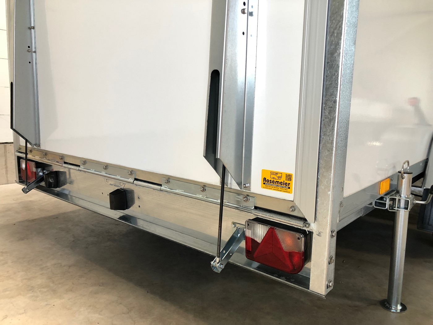 Kofferanhänger mit Auffahrrampe, Stützen und Kombischienen beidseitig