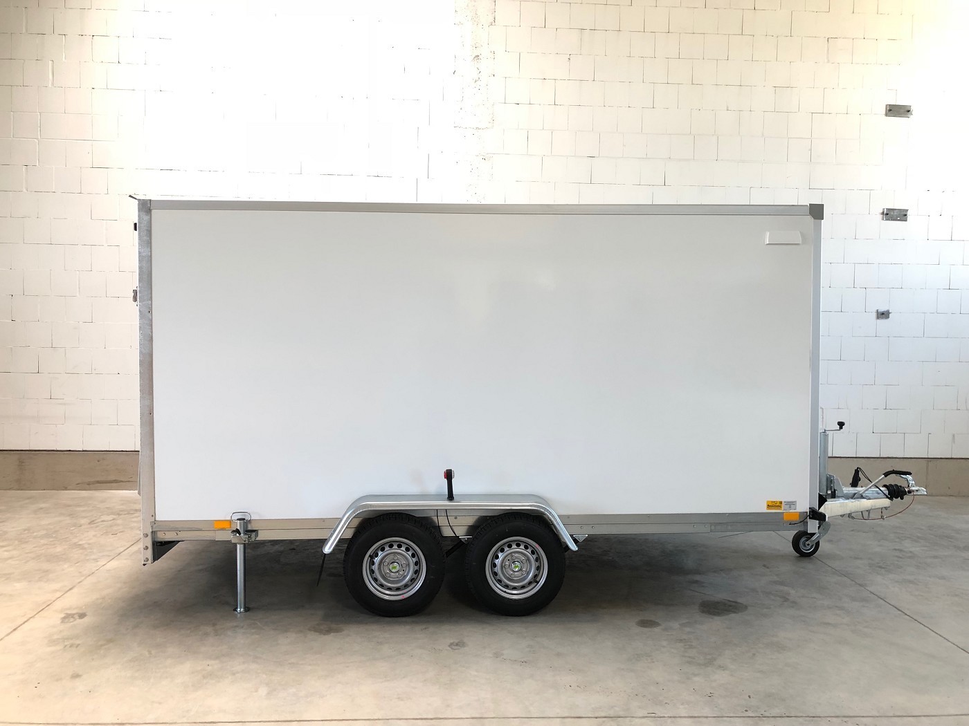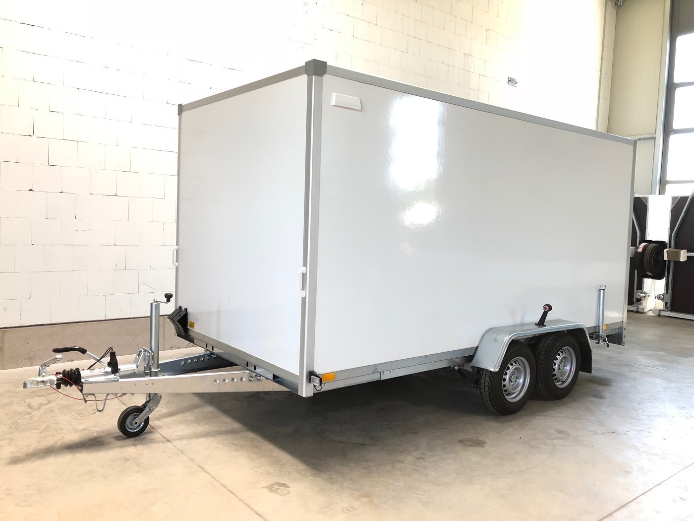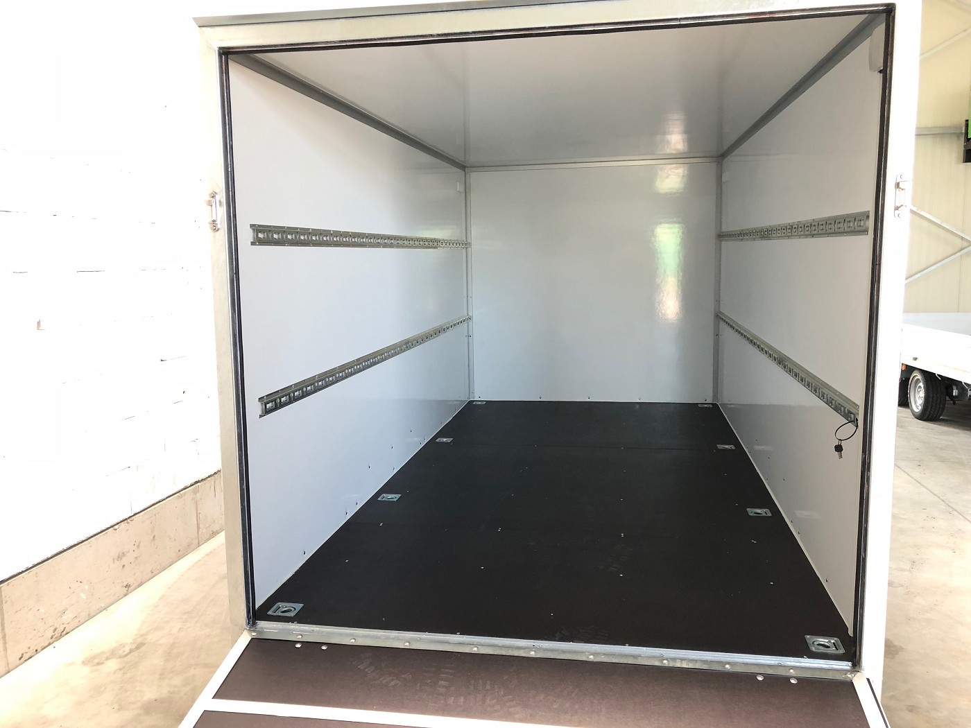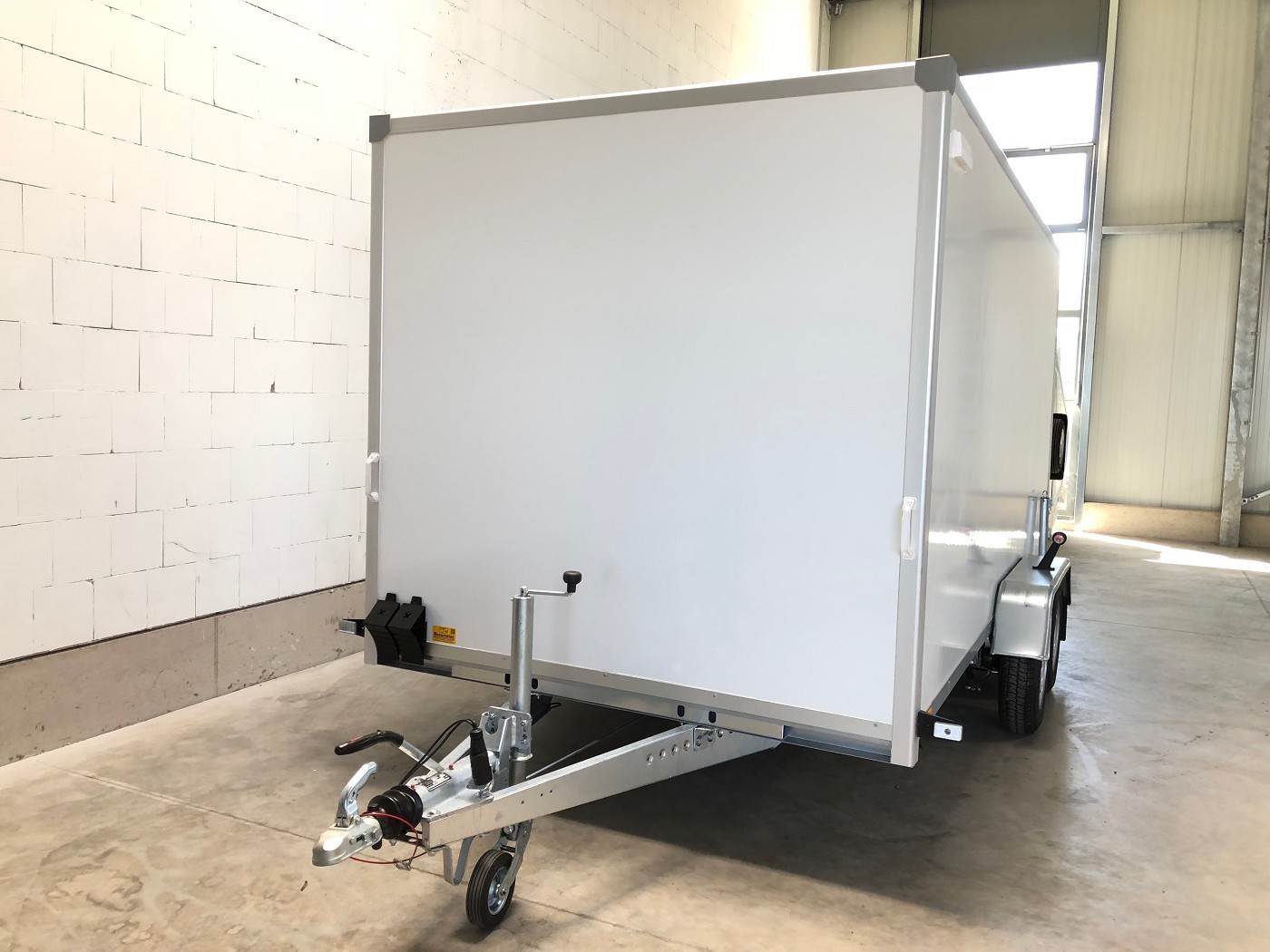 Kofferanhänger mit Auffahrrampe, Stützen und Kombischienen beidseitig
