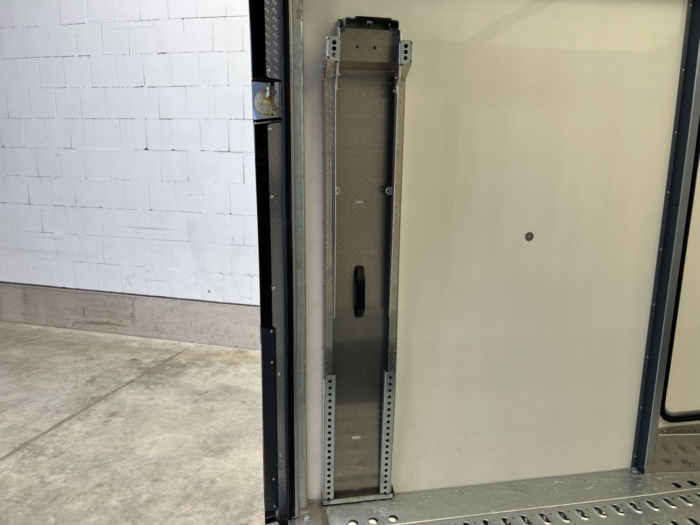 Zusatzladerampen für einen flachen Auffahrwinkel, Aufbewahrungsmöglichkeit innen im Heckbereich während der Fahrt
