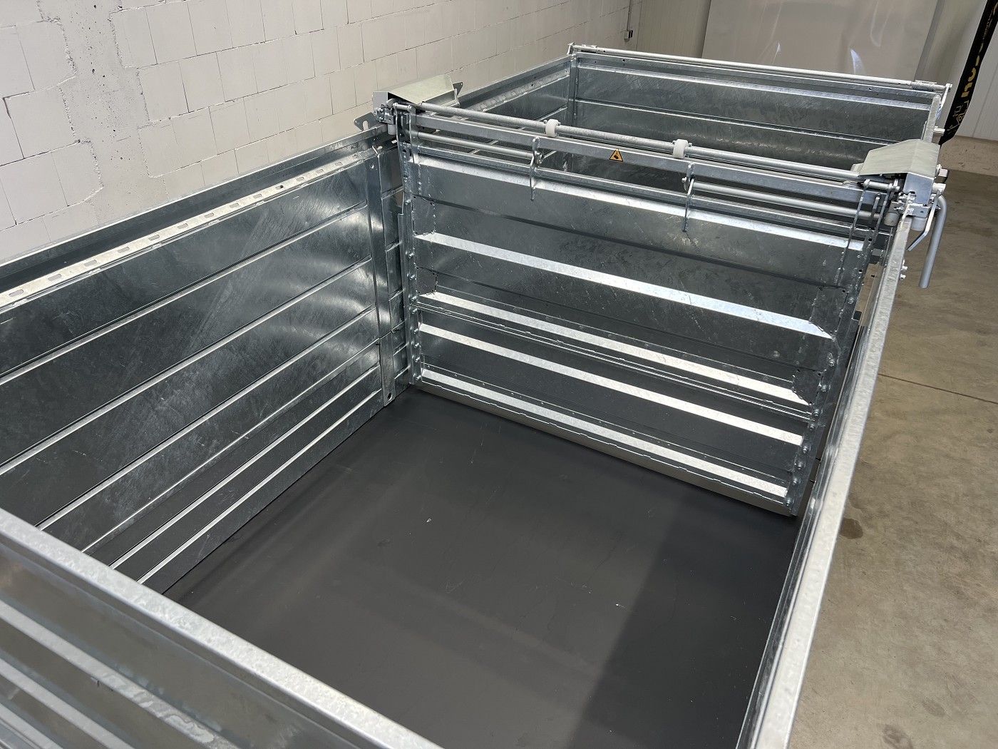 sehr vielseitig einsetzbar für z.B. für Holz, Späne, Hackschnitzel, Rückschnitte, Erde, Kies usw. ermöglicht ein kontrolliertes Entladen ohne Kraftanstrengung auch dort, wo ein Abkippen nicht möglich ist (z.B. im Carport)