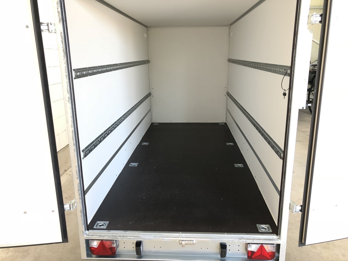 Kofferanhänger als 1-Achser mit Doppelflügeltür hinten