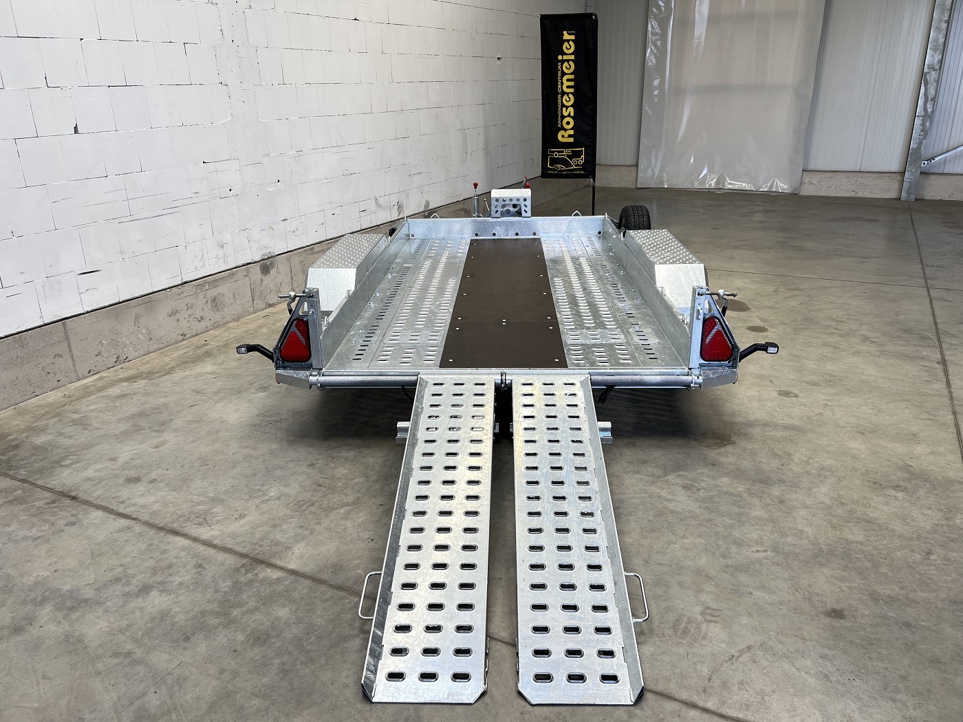 • geschlossene einteilige Auffahrrampe hinten mit integrierter Schiene und Federunterstützung