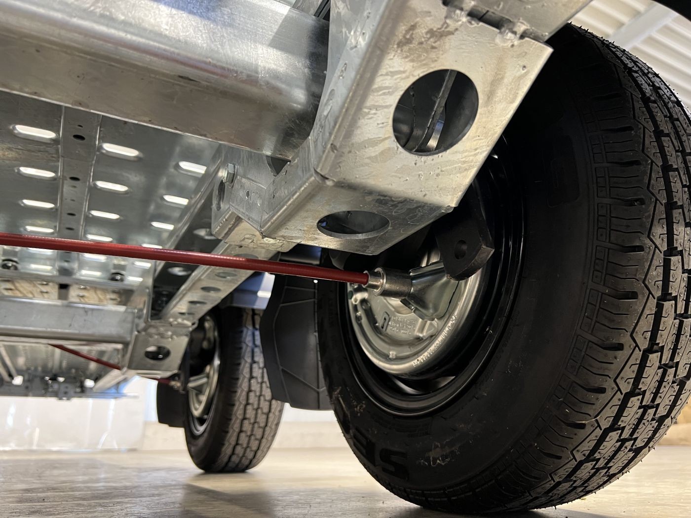 • Durch diese Verzurrpunkte bietet sich die Möglichkeit Radspanngurte mit einer Gurtführung längs über den Reifen zu nutzen