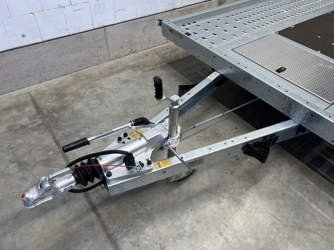 • Fußpedal entriegelt gleichzeitig die Auffahrschienen und die Heckstützen und sorgt so für eine leichte und zeitsparende Handhabung