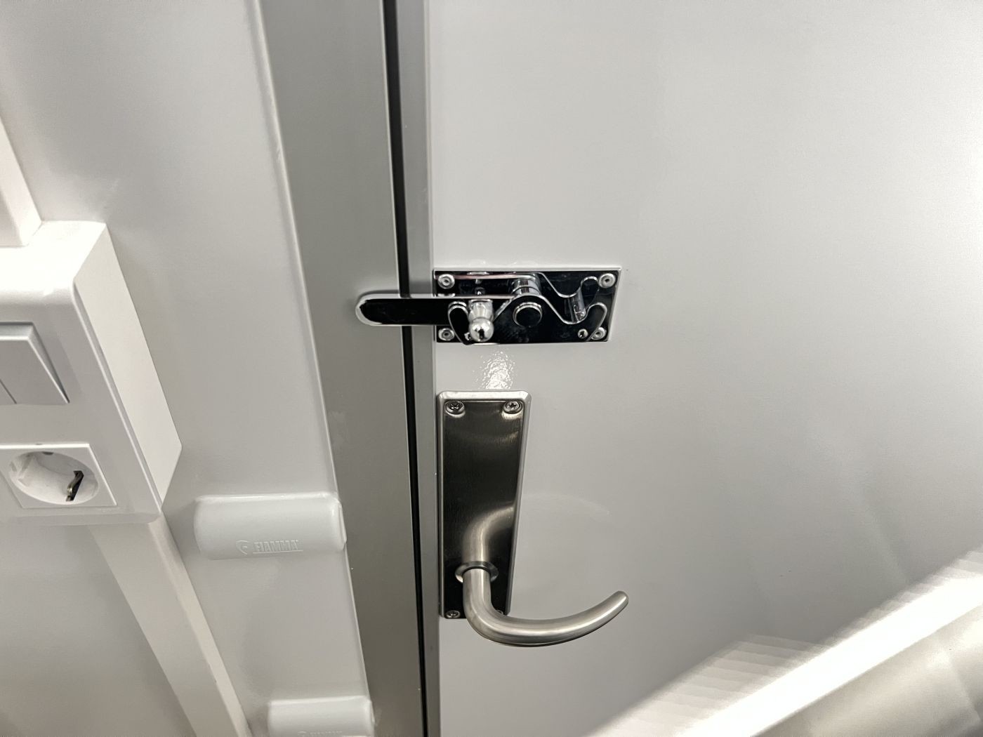 Ausklappbarer Einstiegsgriff neben der Eingangstür zum sicheren Ein- und Aussteigen
