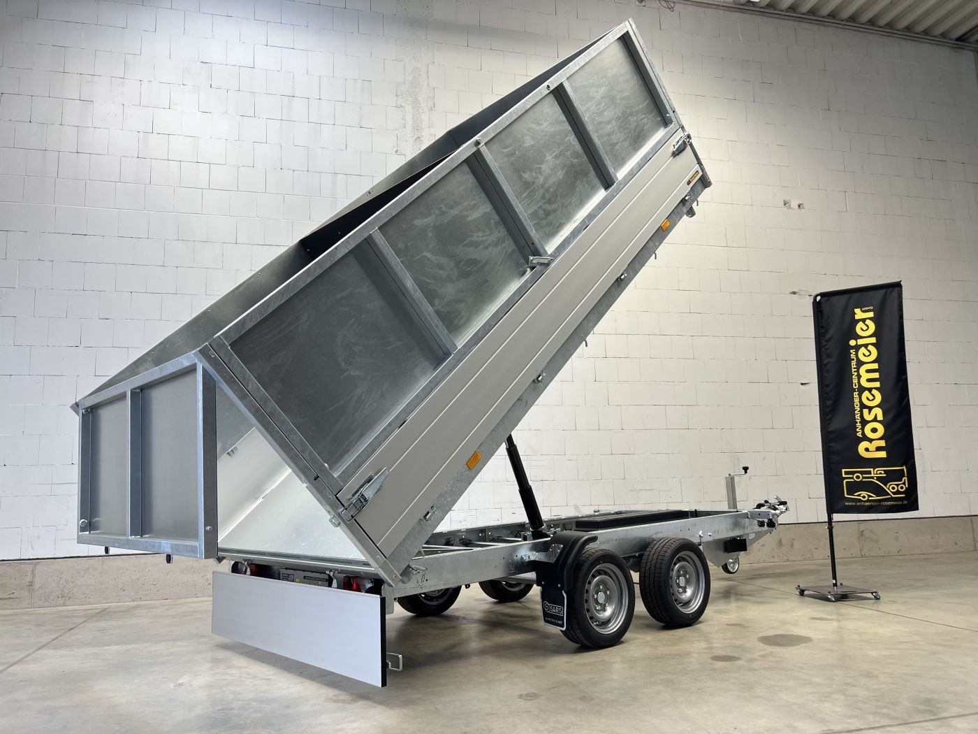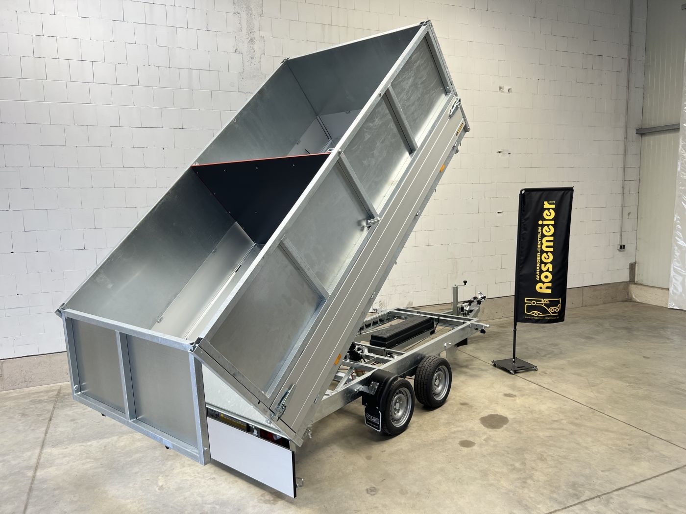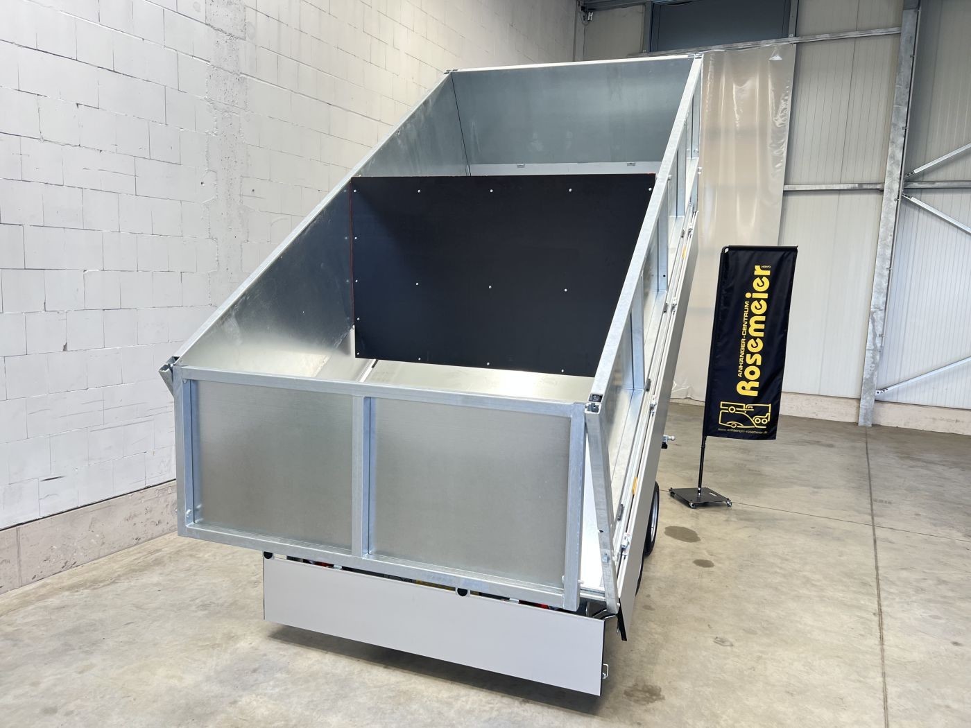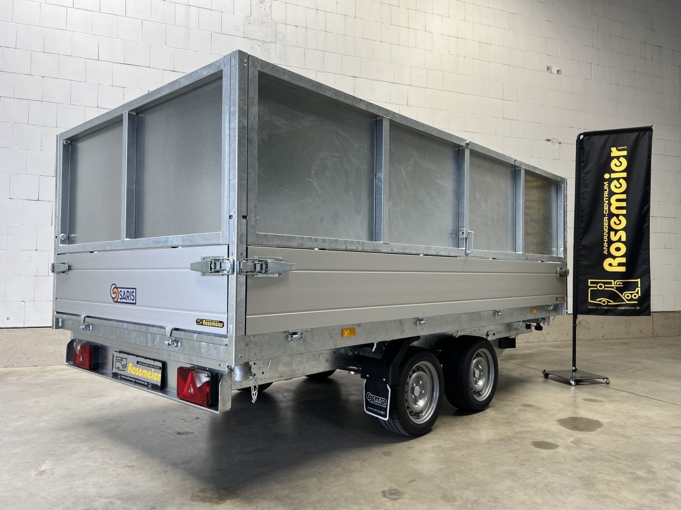 Saris Dreiseitenkipper mit E-Pumpe und Blechaufsatz inklusive integrierter Trennwand