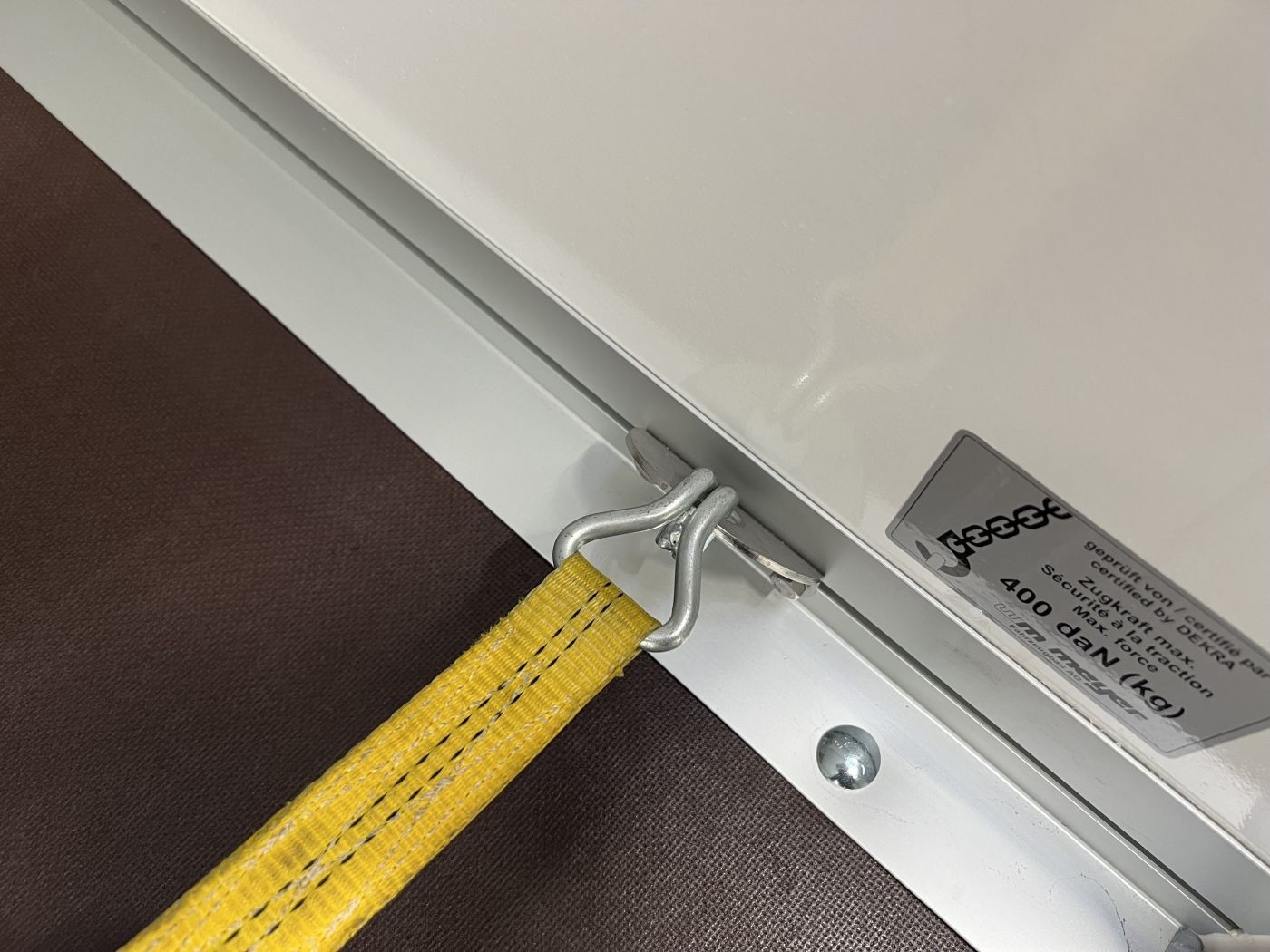 • Integrierte Zurrschiene mit 4 verstellbaren Zurrbügeln (je 2x links/rechts) und 3 Trägerplatten zusätzlich