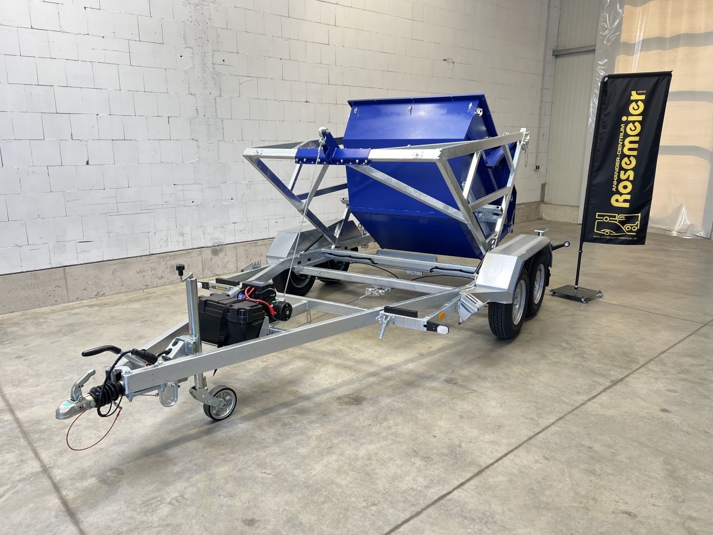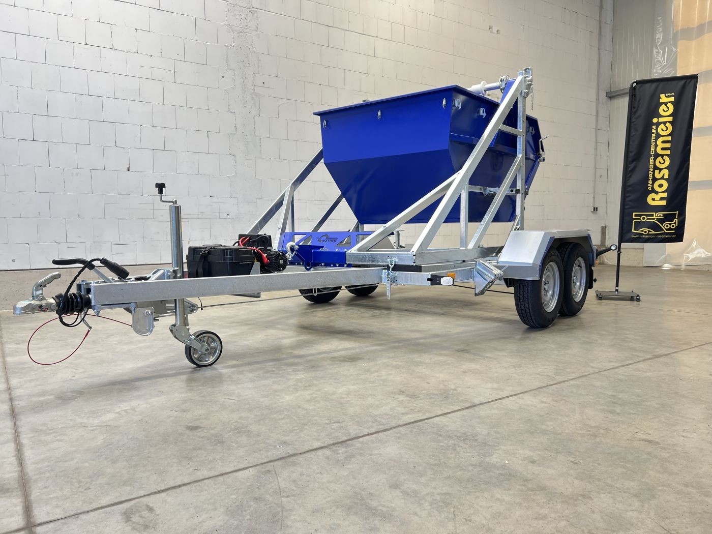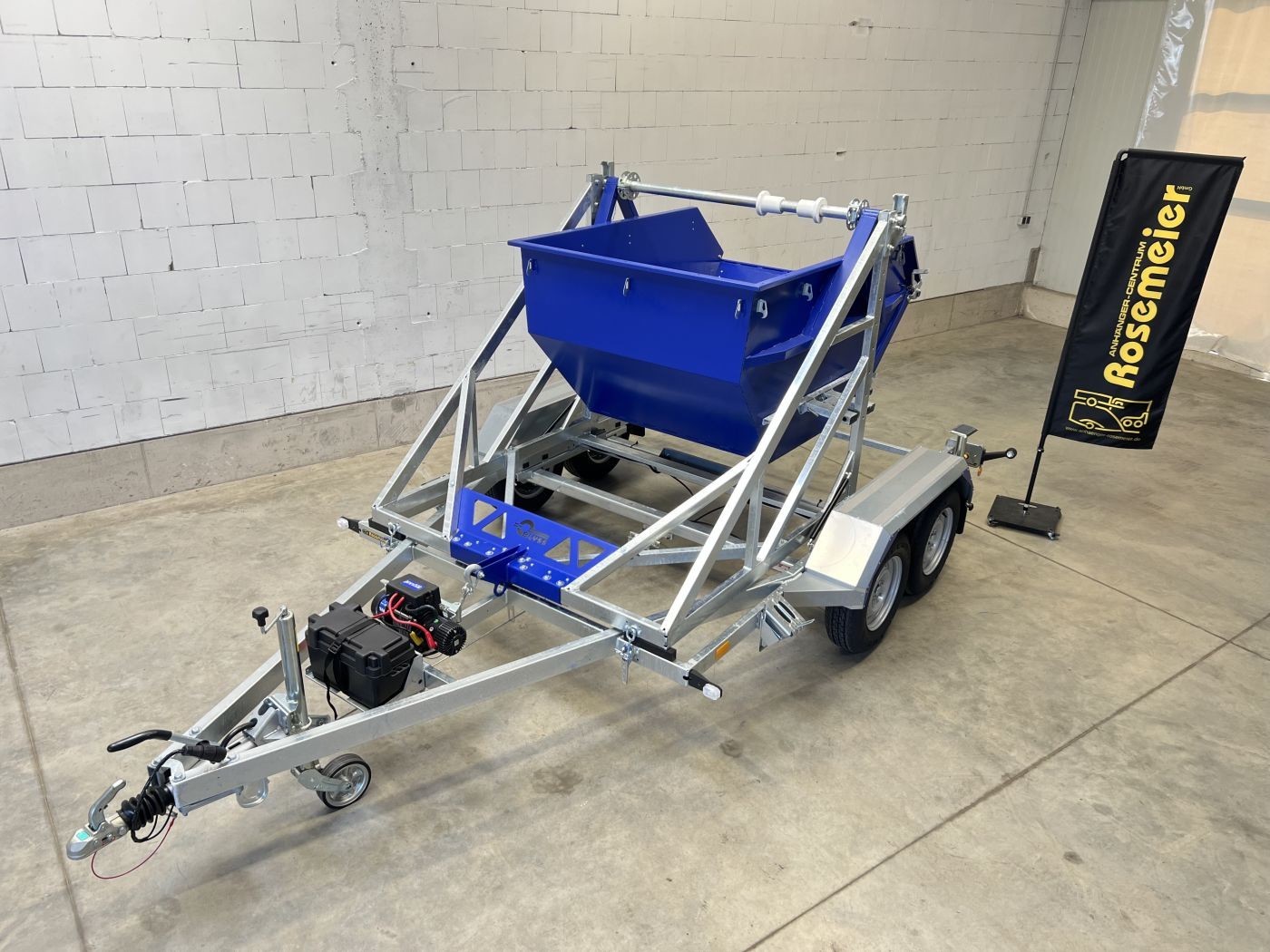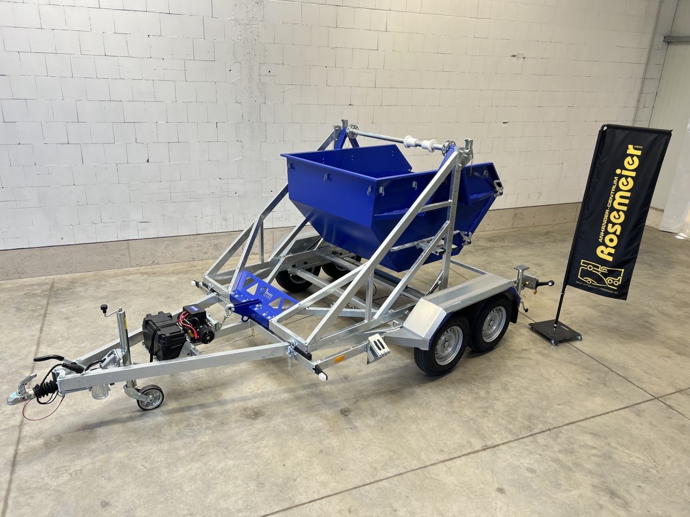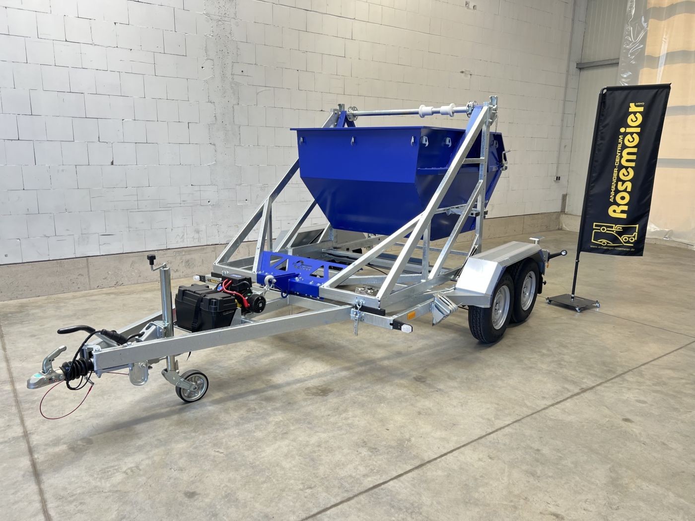 Kabeltrommelanhäger mit Container 2m³ in RAL 5002