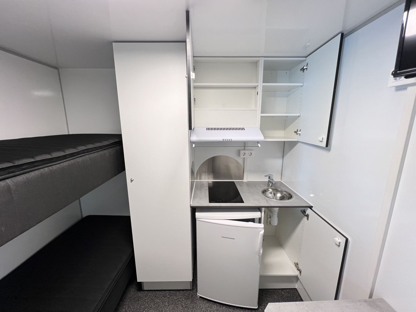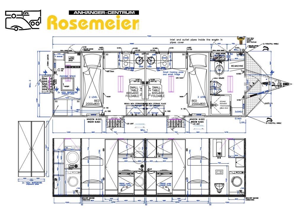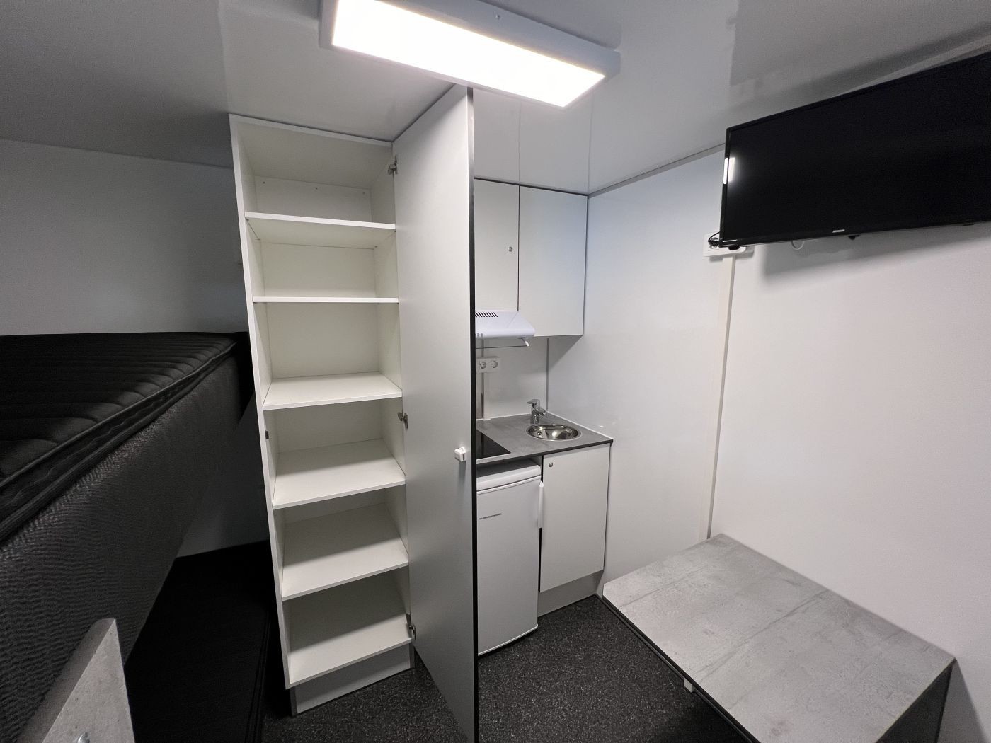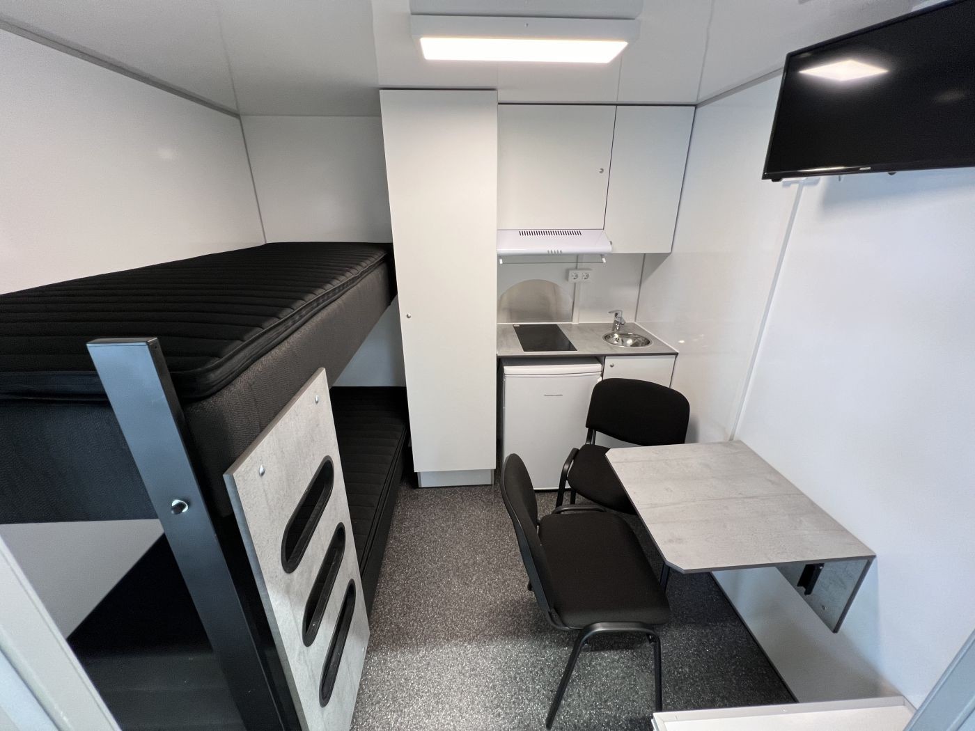 Mannschaftswagen mit 2 separaten Schlafräumen, separatem Badezimmer und kleinem Packraum
