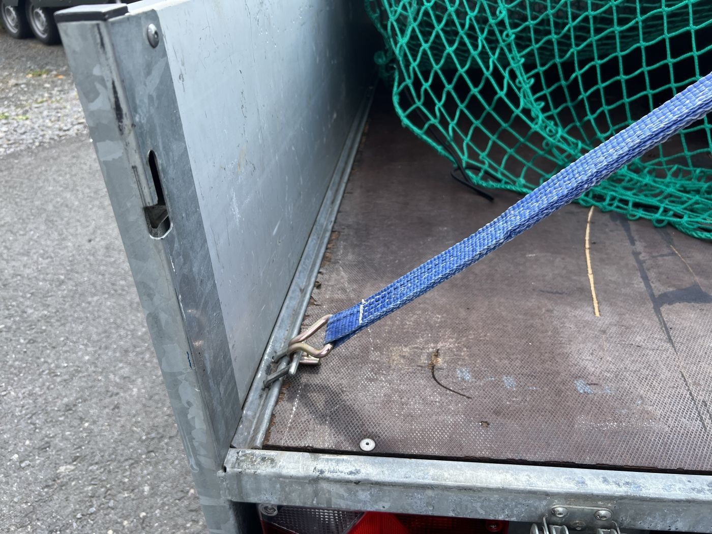 Gebrauchter Saris Kastenanhänger mit Falchplane, Ladungssicherungsnetz und klappbarer Stirnwand. Guter Zustand!