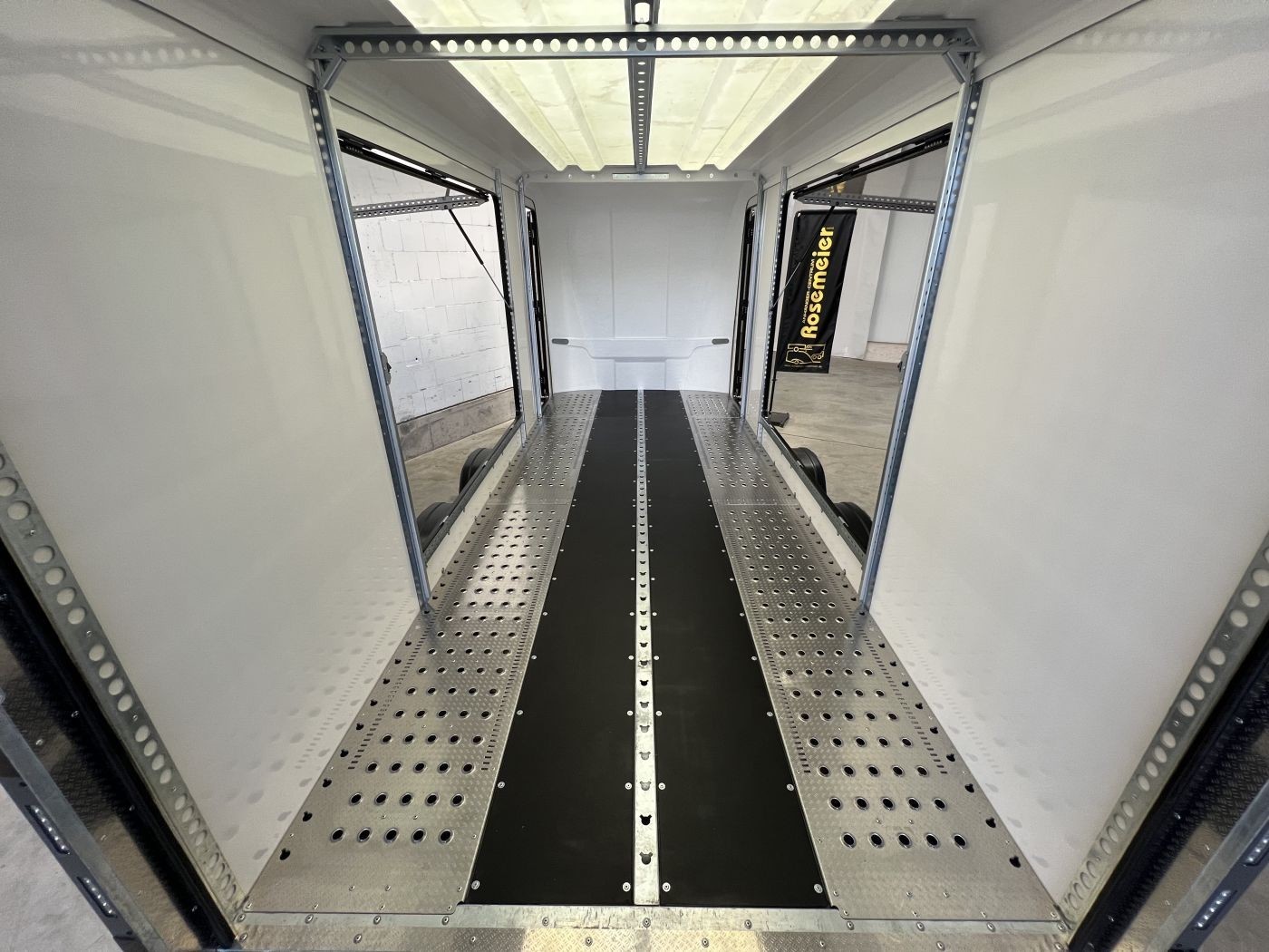 • Zentrale Ladungssicherugsschiene mittig im Boden und unter dem Dach für zusätzliche Verzurrpunkte oder Sperrstangen