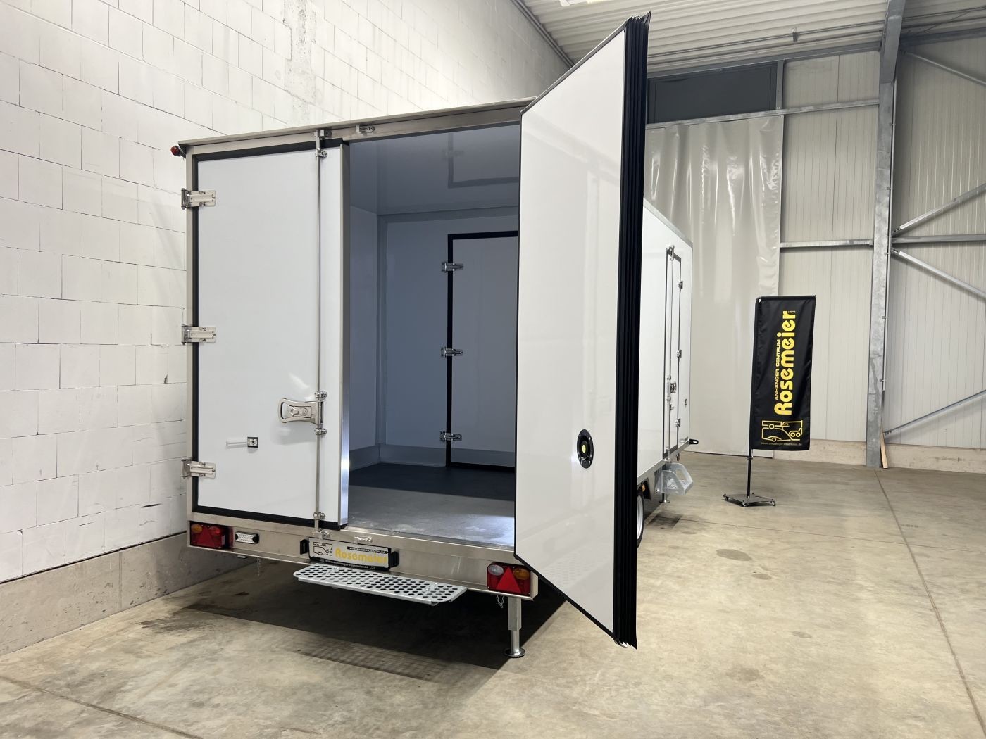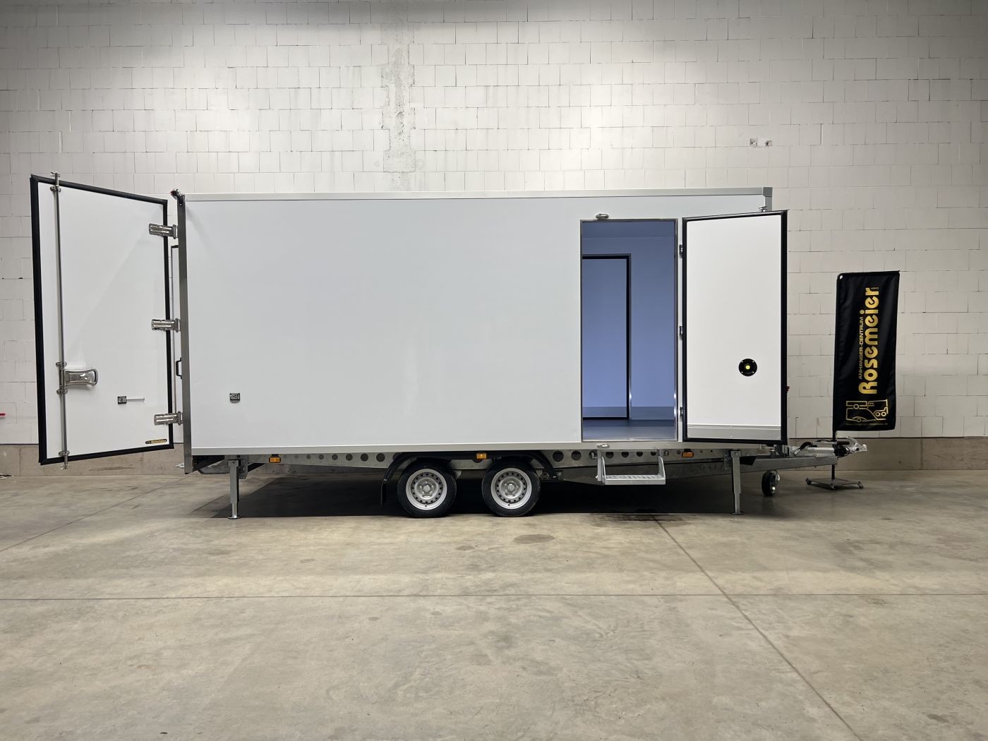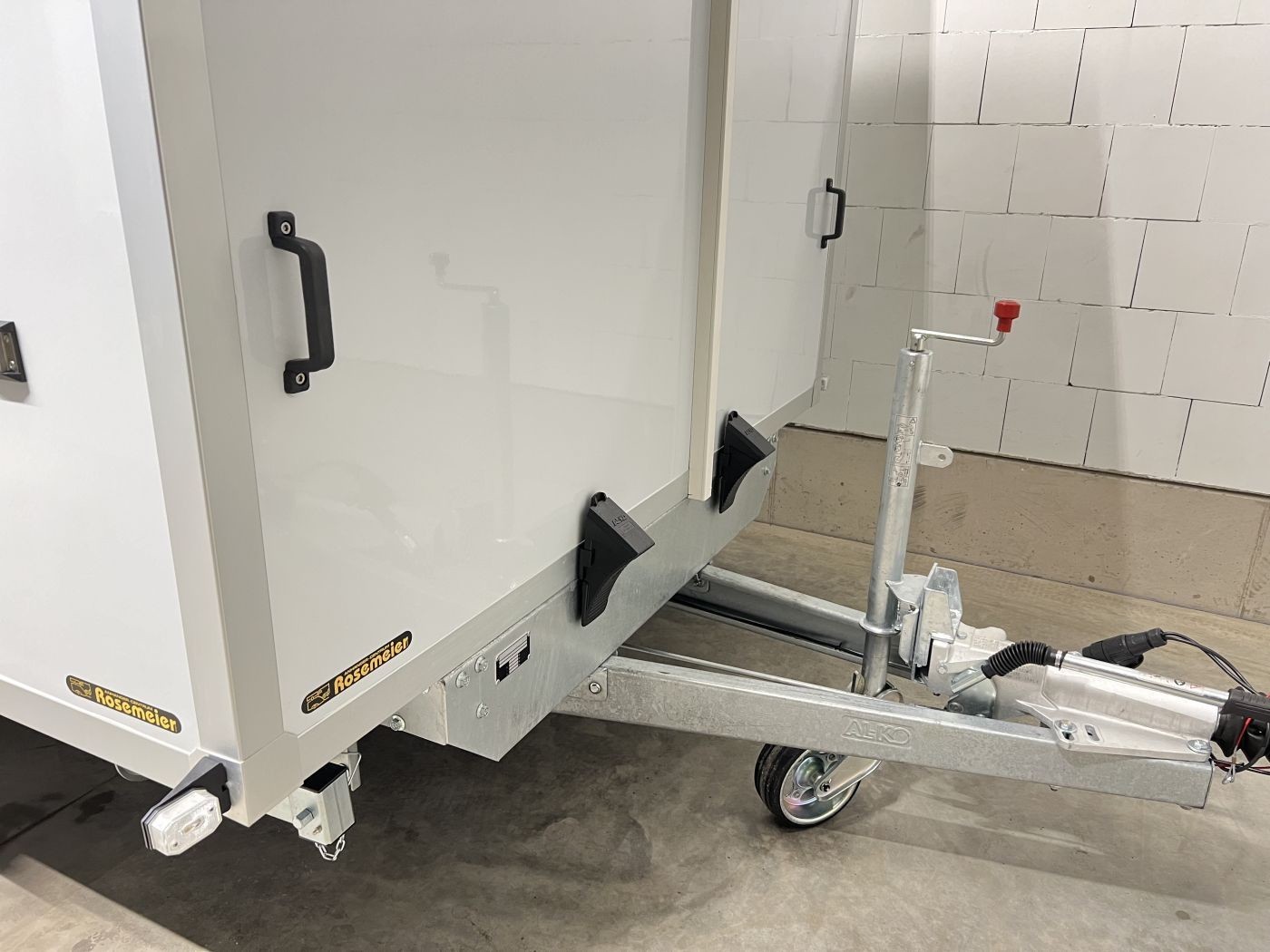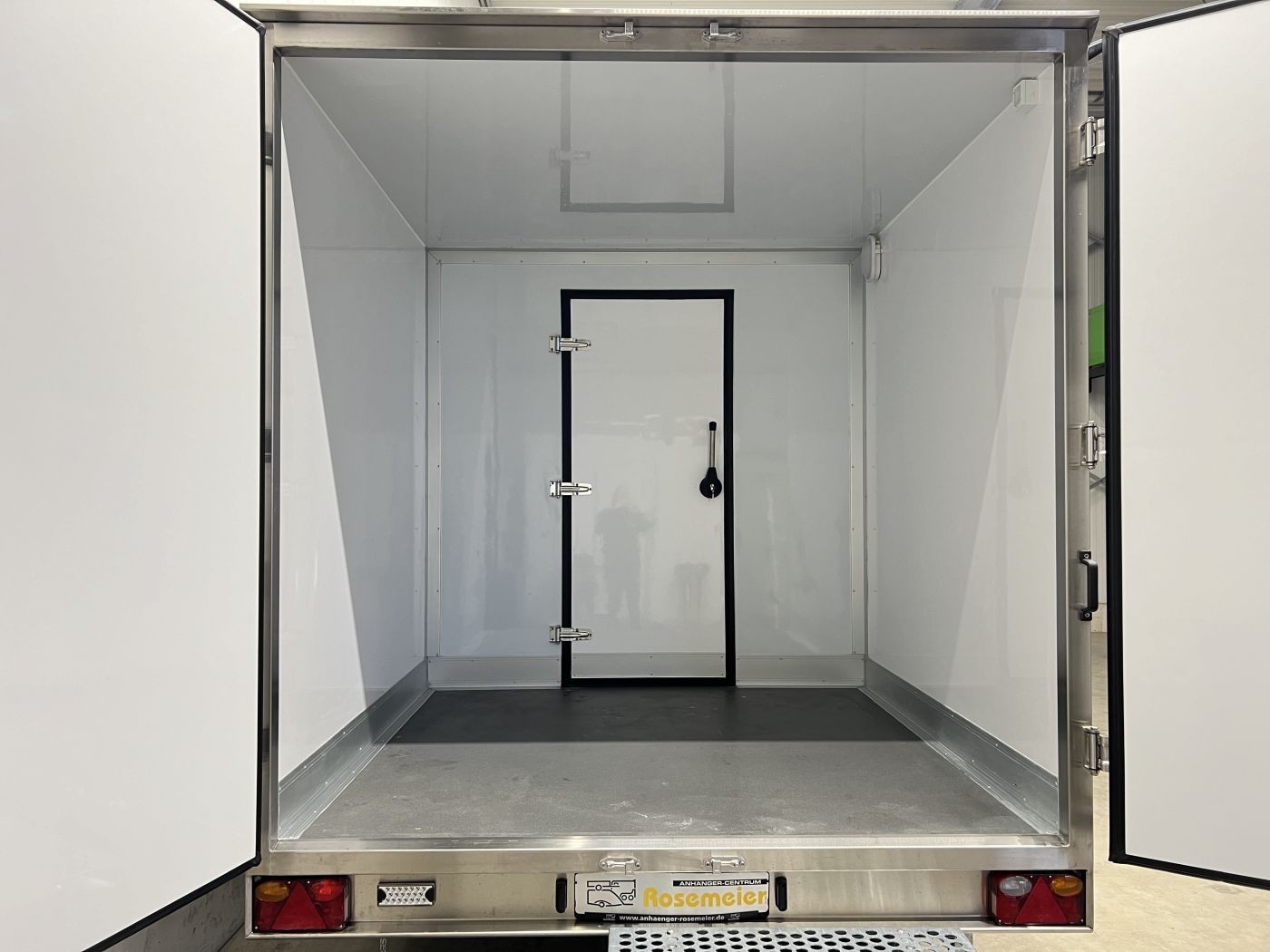 Die beiden Räume sind durch eine feste Trennwand geteilt mit mittiger Durchgangstür (ca. 80 cm Türbreite) Mögliche Optionen und Zubehör für diesen Anhänger: