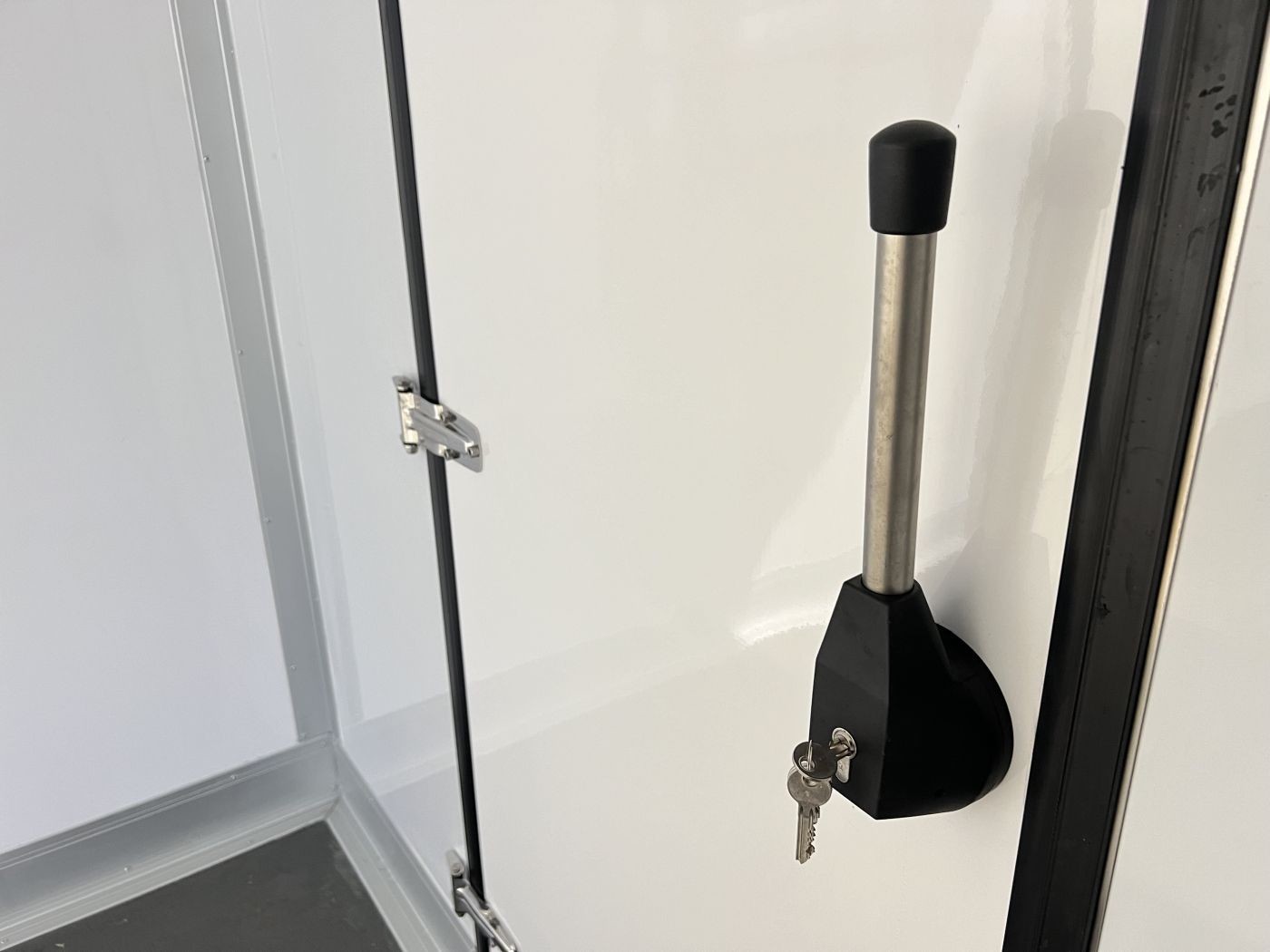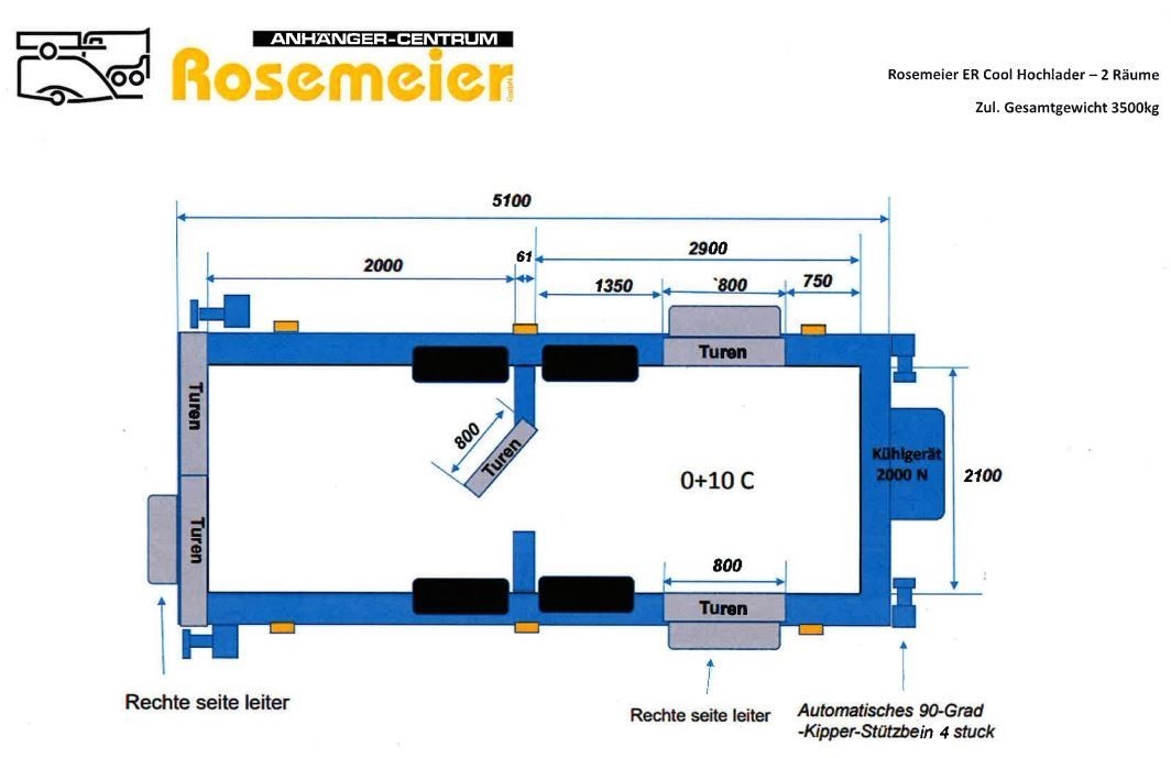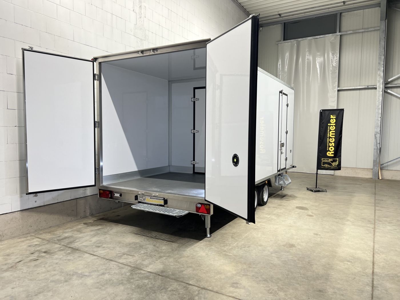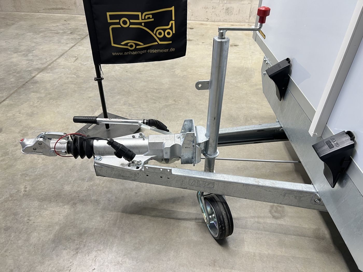 Die beiden Räume sind durch eine feste Trennwand geteilt mit mittiger Durchgangstür (ca. 80 cm Türbreite) Mögliche Optionen und Zubehör für diesen Anhänger:
