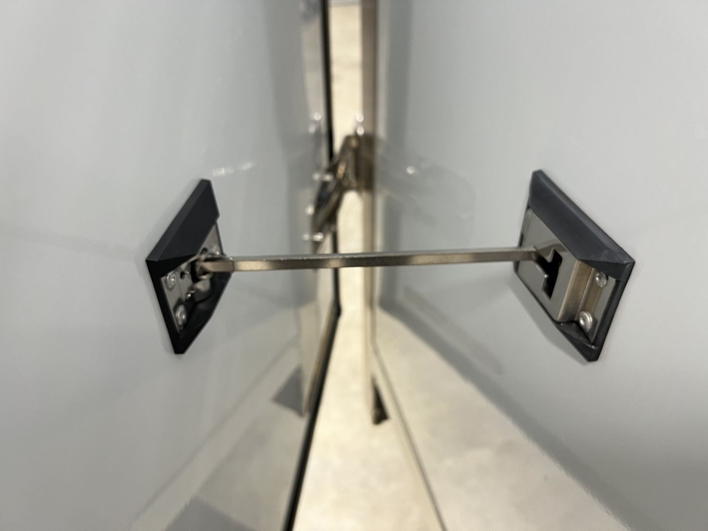 2 Eingangstüren mit robusten Edelstahltürrahmen, seitlich in Fahrtrichtung rechts und links