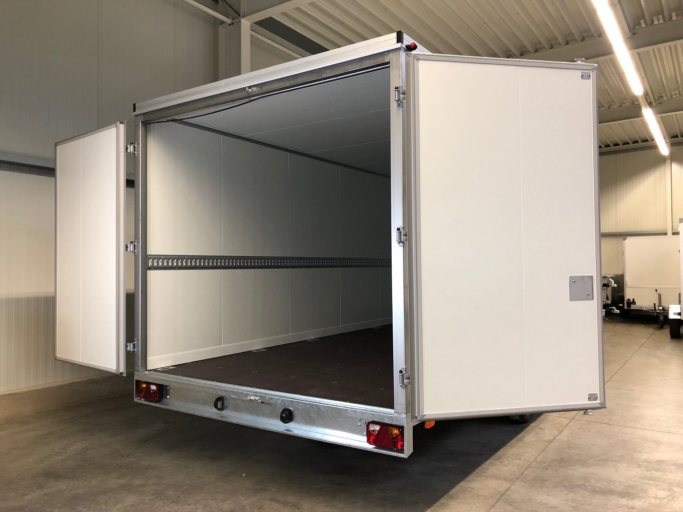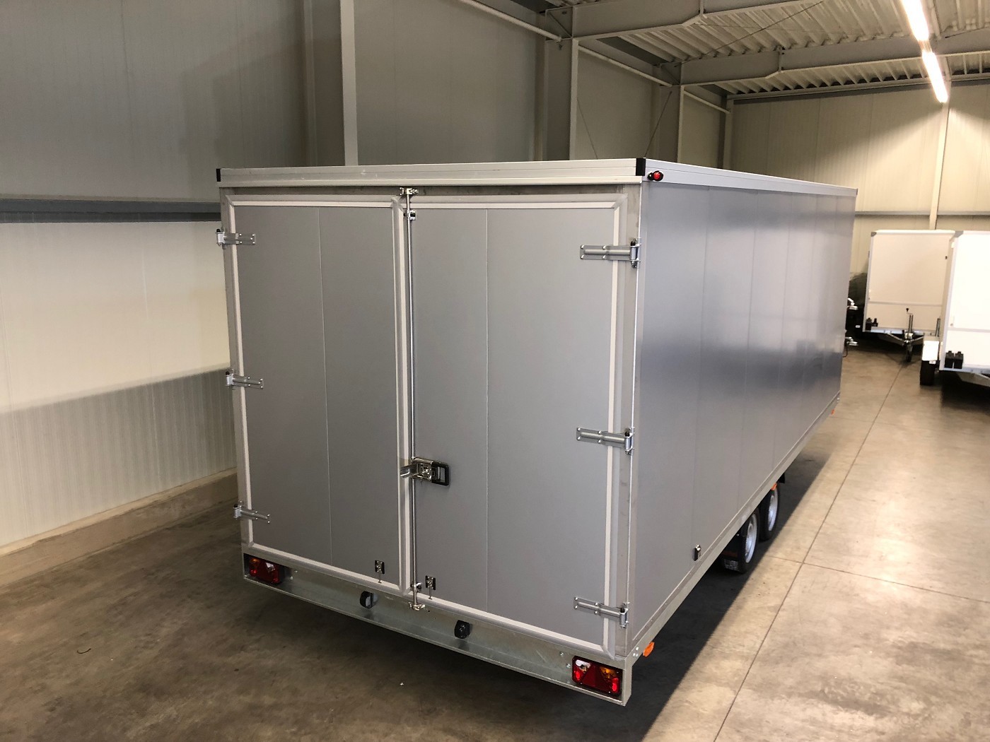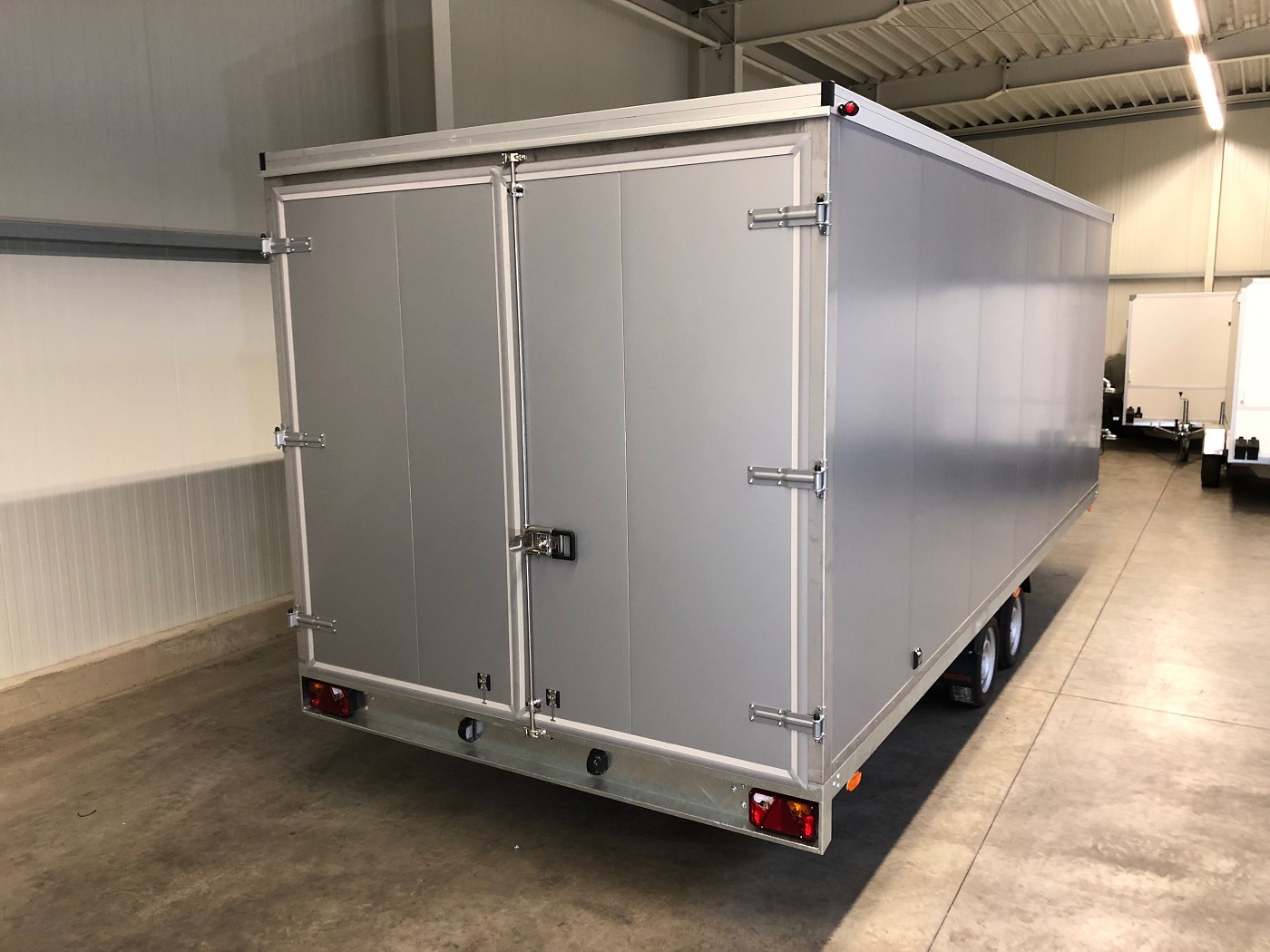 Kofferanhänger in silber als Hochlader mit Doppelflügeltür